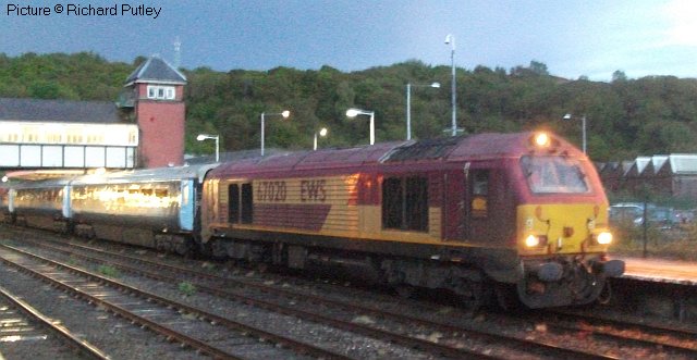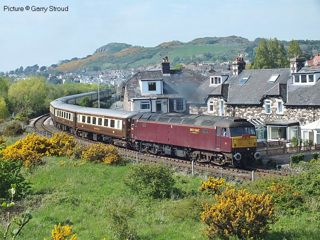 ![]() 67 008, still in pure EWS livery with no sign of DB branding, propels the 13:07 Holyhead - Manchester past Penmaenmawr, 12 May. Picture by Peter Laithwaite. Llandudno Belle![]() The 'Northen Belle' luxury train, now managed and operated by West Coast Railways, ran from London Euston (dep. 06:48) to Llandudno and back on 10 May. Roly High captured the train passing Rhyl with 57 313 leading. ![]() Previous traction provider DRS generally top-and-tailed the train with two locos, but on this occasion West Coast loco 57 worked alone. At the rear of the train, the two Mk3 sleeping cars which form the staff accommodation. ![]() Approaching Llandudno Junction (Garry Stroud). The Conwy Valley line branches off in the background. ![]() The locomotive had to run round its train before the 18:01 return departure, and the Cae Mawr sidings, re-instated in 2014 but only used occasionally since, were brought into action. Peter Lloyd recorded the moves in a series of images. Above, the locomotive has backed the empty train into the sidings. When the layout here was simplified in the 1970s, a short length of single line was created, removing the need for much pointwork while still allowing trains to be routed into any platform at the terminus. The siding on the right is still connected and signalled, but when was it last used? ![]() 57 313 is uncoupled and draws forward past the points into the 'neck'. The signal is Llandudno Inner Home with its calling-on arm to allow a train into a partly-occupied platform, and the 'theatre' indicator which tells drivers which platform their train will enter. ![]() Running round the train... ![]() ... and setting back after the points have been changed by an operative using a hand-lever ... ![]() ... coupled-up and ready to set back into the station. Was this the first full-length train to use the sidings since they were re-opened? No, apparently an 'Icons of Steam' excursion was the first. Did anyone photograph it? Loco photos![]() Freightliner 66 533 Hanjin Express/Senator Express powers through Gobowen Station on Saturday 12 May at 10:20, with the Dee Marsh to Margam steel wagons (Martin Evans). ![]() Looking back to 8 April 1998: 56 134 Blyth Power - a loco which gave its name to a band - near Hope on a short train of steel coils for Dee Marsh. Picture by Dave Sallery. ![]() 47 826 rounds the curve into Llandudno Junction with the return excursion to Stevenage, 7 May (Garry Stroud). Bank Holiday fun in the Sun - with Gary ThomasI went "home" to Conwy over the bank holiday. I decided to stop off at the Cambrian Railway, Llynclys for my first ever visit on Saturday morning 5 May. Above, Class 101 DMU, nos 51187 and 51512 wait to leave for Penygarreg Lane Halt at Llynclys South The 101 seen at Penygarreg Lane Halt with a service from Llynclys South. I was lucky to have a cab-ride in the DMU between Llynclys South to Penyrgarreg Lane Halt and return. Very friendly volunteers! The yard at Llynclys South. The blue loco is Kimberley, English Electric 0-6-0DH no.D1230 of 1969. ]]This was one of the remarkable collection of locos owned by Andrew Briddon, but according to his website he has since sold it.] I then took the train to Llandudno to avoid traffic on the Saturday afternoon, to enjoy the Victorian Extravaganza. Above, 175 102 waits to leave Llandudno Junction with a shuttle for Llandudno. The 3-car train was a good choice given the large number of people going to Llandudno for the event. 175 102 waits to leave Llandudno with a Manchester Piccadilly service. The restored body of Llandudno and Colwyn Bay Tramway tram no. 7 is seen on its trailer at the Llandudno Victorian Extravaganza. It was surrounded by a variety of traction engines. On my way back to England on Sunday 6 May I went via Tywyn for my first visit as an adult to the Tal-y-Lyn Railway. What a lovely little line. On route we tried to visit Barmouth but it was absolutely packed (good) despite the chilling sea mist. Sadly the "winter" timetable on the Cambrian Line couldn't accommodate the vast numbers of people visiting. Above, 0-4-0WT no. 6 Douglas is seen taking on water at Tywyn Wharf. The sky was dull due to sea mist, while further inland it was sunny and warm. 4wDH no.12 St Cadfan is seen at Tywyn Wharf. The sky was dull due to sea mist, while further inland it was sunny and warm. No.6 is painted RAF blue to celebrate 100 years of the RAF, for which it served early in its career. Waiting to leave Tywyn Wharf with the 14.25 to Nant Gwernol. The classic view at Dolgoch as the water supply is replenished. Douglas is seen on arrival at Nant Gwernol. Great Malvern to Bangor - with Richard Putley![]() I had hoped to get a ticket for this year’s Railway Preservation Society of Ireland three-day steam tour. To that end I purchased a 'Rail and Sail ticket' on-line from Gt. Malvern to Dublin. So you can imagine my disappointment when my cheque was returned as the tour had sold out very quickly. My first thought was to find somewhere to stay in Dublin and photograph the tour. But when I struggled to find anywhere suitable in Dublin, I decided that rather than waste the Rail and Sail ticket I’d see if I could find anywhere in Bangor, Gwynedd. I found a £45 per night for 4 nights offer at the Waverley Hotel near the station so I duly booked it. ![]() On the day I noticed that what I thought was the Network Rail New Measurement Train was due to pass through Malvern at 09:15. But it turned out to be a 9 coach IET, 800 302, on a test run from Lydney Junction to Abergavenny. I photographed it at Malvern Wells, while it waited for the 08:45 Hereford to Birmingham New Street, formed of 170 512 and a 153 'Bubblecar' to come off the single-line section from Ledbury. ![]() To be on the safe side I took the 10:45 from Great Malvern to Hereford as had I waited for the 11:45 I’d only have a ten-minute connection into the 12:27 to Holyhead. There’s also Great Western service at 11:09 from Great Malvern but given