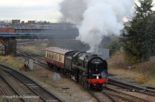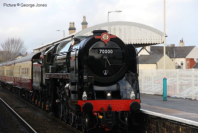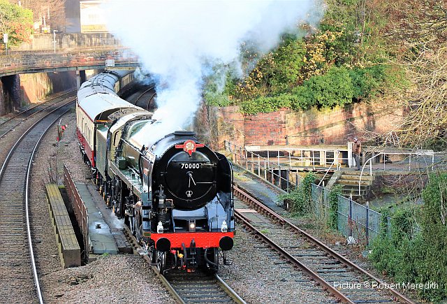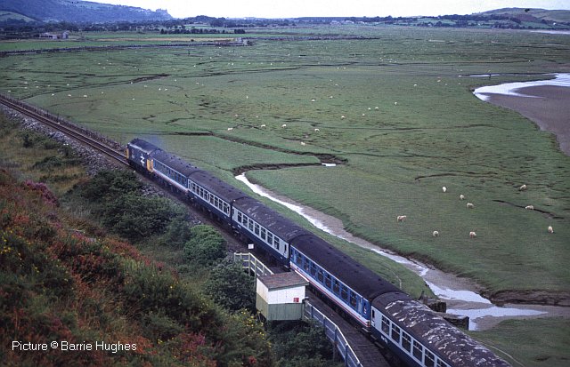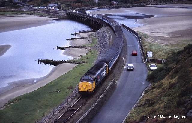 ![]() 70000 Britannia attracts attention at Ruabon, 2 December; more pictures below. Picture by Martin Evans. The next update will be on the evening of Tuesday 11 December due to a holiday. - Charlie Mr Skates explainsOn 29 November saw Welsh Cabinet member for Transport Ken Skates why trains services have been in chaos recently, reported on the Wrexham.com website. Here are couple of extracts: 'Normally, we operate at about 80 per cent of the entire fleet. There are 127 trains in the fleet, so normally we’d be operating at around about 105, with the remaining trains in for servicing and maintenance. I can tell the Member that, as of this morning, the number was up to 96. We’re therefore operating at around about 76 per cent. It will return to normal—back to the 80 per cent—within a few weeks.'Fair enough, but then: 'We inherited a fleet of trains that have been very poorly maintained, which we did not have full and proper access to ahead of inheriting them, and that, along with Storm Callum, and taking over the franchise in the autumn period, presented huge challenges for Transport for Wales and the operator and the delivery partner.'What evidence does he have to claim that Arriva's maintenance was poor? One interesting point he makes is that none of the fleet are fitted with wheel-slide protection equipment that helps to avoid 'wheel-flats' developing in Autumn. He also speaks of ... a decision taken in 2016—and this is across the UK—to stop applying sand to rails...Can some reader explain why this decision was taken? One thing we have noticed on our travels is that there seems to have been a understandable 'crack-down' by Network Rail on trains operating in service with wheel flats which tend to damage the rails. Is our impression correct? Steam on the Welsh Borders![]() 'The Welsh Borders Explorer' Saphos Trains excursion from Crewe to Crewe via Chester, Shrewsbury, and Wolverhampton featured newly-overhauled 70000 Britannia. Above, the train west of Beeston Castle between Crewe and Chester. Picture above by Ian Pilkington. ![]() Northgate Locks, Chester (Robert Meredith). ![]() Climbing Gresford bank. Picture by Peter Neve who notes: 'The ascent did not disappoint; With a good, clean fire the spirited attack of the Bank could be heard quite some distance away. Mechanically and visually, the locomotive appeared to be in very good condition.' ![]() Gobowen ... ![]() ... with D1924 on the rear (George Jones). ![]() Approaching Walcot, east of Shrewsbury (Ian Pilkington). Halton Curve news![]() On Sunday 2 December an empty Class 175 unit made two return trips from Chester depot to Liverpool Lime Street, said to be for crew training purposes. How often have 175s been seen at Lime Street in the past? We can't recall any booked workings. Picture by Ray Barber. Chester variety - report by Bob Greenhalgh![]() A visit to Chester on 29 November to photograph 70000's test run in advance of its passenger run on 2 December produces not only Britannia ... ![]() ... but also the Rail Head Treatment Train ... ![]() ... and the Network Rail New Measurement Train. Miscellany![]() On 28 November at Barmouth, 97 303 prepares to return to Coleham depot after piloting a track machine, as 158 822 departs with the 08:10 Birmingham International - Pwllheli (Kate Jones). ![]() 56 094 and 56 087 with the Rail Head Treatment Train approaching Nantwich en route back to the depot at Coleham Shrewsbury on 26 November (Robert Meredith). ![]() In the goods loop at Stockport on 21 November, 37 610 (formerly T.S. (Ted) Cassidy) in tandem with 37 612 for reversal en route from Barrow Hill to take up a Colas duty for Network Rail. This loco wears an odd 'small-logo blue' hybrid livery recently applied by Locomotive Services at Crewe after being bought from DRS, but we understand it has since been transferred to the Harry Needle company in exchange for a 47. Blue and Grey Days with Barrie Hughes - Cambrian Coast![]() A series of images taken on slide film on 1 September 1990. Staying at Harlech for the weekend allowed a trip to Newtown on the 'Butlitz Express', a summer dated service that ran in both directions to and from Butlins Pwllheli (see earlier story). The morning 37 hauled duty took campers home from Butlins and a second working brought new campers in during the afternoon passing at Newtown. Above is 37 429 Eisteddfod Genedlaethol in 'Large Logo' livery approaching Bont Briwet as seen from Y Garth, the hill overlooking the Afon Dwyryd viaduct. The train was open to ordinary passengers and ran from Pwllheli. ICI's Cooke’s Explosive works can be seen on the hillside above. this generated much traffic for the Cambrian Coast line from Penrhyndeudraeth yard - or Maentwrog Road on the Trawsfynydd/Conwy valley branch when Barmouth bridge was closed for a while. Following closure of the site, it was cleared in 1997 and is now a nature reserve. ![]() 37 429 runs on to Pont Briwet, a wooden viaduct as seen from the hillside, Y Garth, which had a World War 2 machine-gun post on the summit protecting the estuary against the potential threat of a German invasion from the Irish Republic. The wooden viaduct was similar in construction to Barmouth viaduct but carried a traffic-light controlled single track toll road on the east side. The driver is throttling up to keep the train moving a a steady speed across the heavily speed restricted curved viaduct. External check rails were provided to mitigate any derailment. The train itself consists of a mixture of Blue and Grey, Network South East and even Provincial-liveried early Mk2 stock. 37 429 exists the bridge and is about to pass Llandecwyn Halt. The Grade 2 listed bridge was replaced taking 15 months from March 2014 to September 2015. The original bridge was demolished though it had been intended to keep it for pedestrian and cycle use, as it was damaged by the currents generated after piling for the new concrete structure. ![]() The train rolls past Llandecwyn 