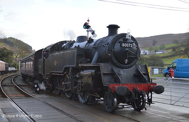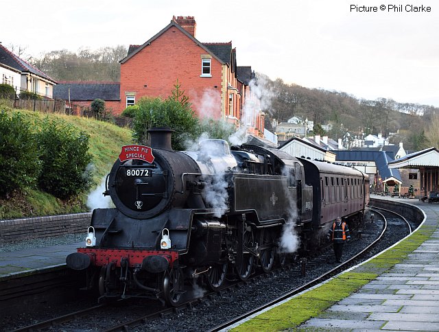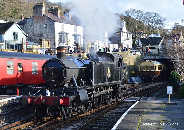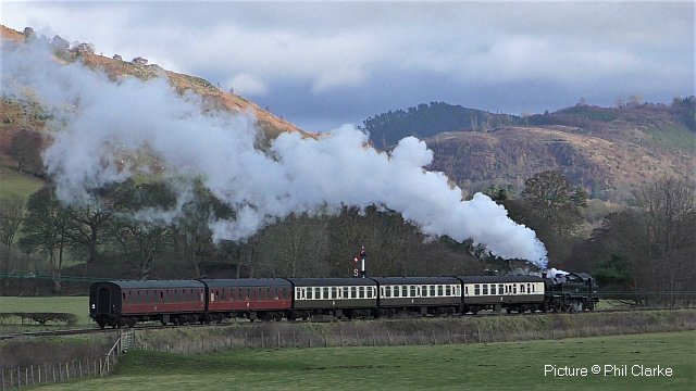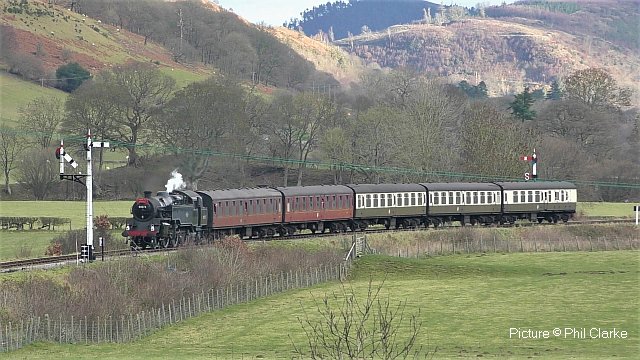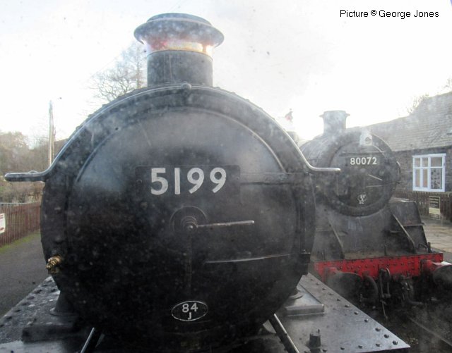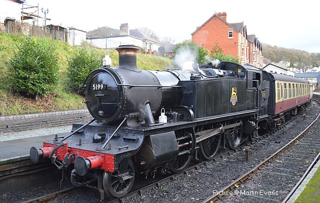 ![]() 67 020 heads west past Hawarden Airport with the 09:50 Manchester - Holyhead, 27 December. Picture by Bob Greenhalgh. Looking back: the Trawsfynydd Trekker![]() On 10 September 1994, 20 187 Sir Charles Wheatstone and 20 075 Sir William Cooke are seen working the second 'Trawsfynydd Trekker' railtour from Bristol; at the other end of the six coach train were 31 238 and 31 207. The unusual livery of the 20s was that of British Rail Telecommunications Limited, who at the time were working with the Racal company to lay cables along BR's infrastructure. Picture by Dave Sallery. It would be pleasant to travel alongside the lake again by train, but the prospects do not look rosy at present following the revocation of the preservation group's licence to refurbish the track and the death of long-time promoter Colin Dale. New book on the Bala line - review by George Jones![]() In 208 pages the route of this railway is featured in a comprehensive collection of photographs, maps and text illustrating the trains, the stations, personalities and infrastructure, as well as the isolated scenery through which the line once travelled. Although there have been previous titles reviewing this lost line, the two compilers, Martin F Williams and Derek J Lowe, have brought together a set of mainly previously unpublished black and white views, supplemented by section of colour views from the later days to offer what must be the definitive work. Published by Lightmoor Press, the new title complements the earlier work on the Ruabon to Barmouth Line. A quality product as is to be expected from this publisher. Price £25 - hardback. New Year's Eve oddities - pictures by Geraint Williams![]() In the sidings at Chester on 31 December, West Coast Railways second class open carriage 4940. This was the coach which suffered a minor derailment ar Dee Marsh Sidings back in November, which we understand awaits collection by West Coast following repairs. (Thanks to the readers who wrote with information.) ![]() 67 003, one of the three painted in Arriva blue for use on the Cardiff - Holyhead service, is rarely seen in our area, but Geraint noted it at Crewe on 31 December. The side-window panels seems to have come from another, EWS-liveried, loco. Llangollen steam![]() The Llangollen Railway's 'Winter Warmer' event featured Former GWR 'large Prairie' 2-6-2T 5199 and BR standard 2-6-4T 80072. Phil Clarke visited on 28 December; above, 80072 prepared to depart Llangollen with the first train of the day. ![]() 5199 climbs Berwyn bank ... ![]() ... and re-starts from Berwyn station (Phil Clarke). ![]() 80072 arrives at Carrog from Llangollen ... ![]() ... and departs on the return journey (Phil Clarke). ![]() The classic class 104 DMU was also in action (Phil Clarke). ![]() 80072 runs round at Llangollen after working the last steam train of the day (Phil Clarke). ![]() Above, 5199 awaits departure from Llangollen station with the 10:15 service to Carrog on 29 December (Martin Evans). ![]() 5199 runs around at Llangollen station before departing with the 12:30 service to Carrog on 29 December. In the background is inspection saloon DW 80975, one of a batch ordered by the Great Western Railway and finished on the cusp of Nationalisation in 1948. Often used by Railway Managers, often propelled by a loco from behind; the LMS had some very similar vehicles (Martin Evans). ![]() 80072 approaches Glyndyfrdwy station with the 11:00 service from Llangollen to Carrog (Martin Evans). ![]() Returning from Carrog with 5199, George Jones captured the moment the down train came through Glyndyfrdwy with 80072 was caught from the end coach window offering a contrast in tank engines. Now the 'Driver 2' position is no longer required for propelling moves, as when the new Corwen Central terminus opens, locos will be able to run round their trains. The view from the corridor connection is again available to the discerning passenger. ![]() Later, when returning on the 104 the wait in Goods Junction loop allowed for sight of the single-line token on the pick up arm as we waited for the Down train to leave Llangollen. ![]() The 13:15 from Llangollen, with 80072, seen approaching bridge 14 for a non-stop pass as the token was picked up from the arm. With a boiler life extension allowed into 2019, we can expect to see this popular engine remain in action in the first half of the new year, pending withdrawal for its ten year overhaul. Time has flown since it returned to steam after its 'ex-Barry scrapyard' epic restoration - and set the owning group a challenge to finance the next overhaul (George Jones). ![]() The need to shunt the 'Neptune' track recording vehicle in the yard at Carrog involved the class 104 railcar in an unusual excursion into the Carrog Sidings after it arrived at 12:20 on the 11:45 service from Llangollen on Saturday 29 December ... ![]() ... The 104 moved off (without passengers) from platform 1 to be allowed in to the sidings to hook up with the Neptune and draw in out, then run it back into the adjacent line to its former position behind the signal box. Here it will continue to be worked on with a view to its return to service (George Jones). Thirteen of these vehicles were delivered by Matisa of Switzerland between 1957 and 1967, according to the owners of another survivor, the Exeter and Teign Valley railway, who have a detailed description of its workings on their website. The Llangollen example, formerly no . 90005, has been on the railway for many years: in 1989 it was the first rail vehicle to traverse the newly-laid extension on the line beyond Berwyn. ![]() The scene at Corwen Central on 18 December. George Jones writes: 'The picture shows the challenge for 2019 - completion of the platform 1 wall, the laying of the loop line connection, infilling the Gap and connecting the two railheads with necessary ballasting and tamping. Then there's the detail of the station facilities for passengers and a formal inspection to 