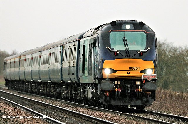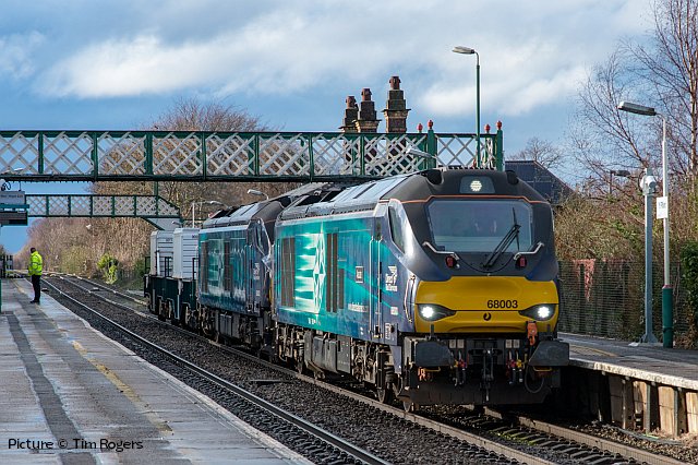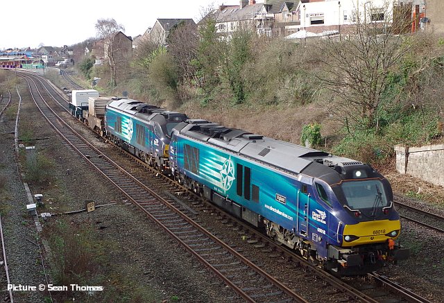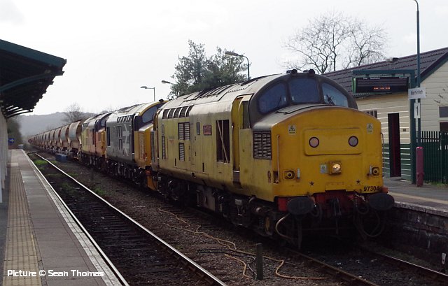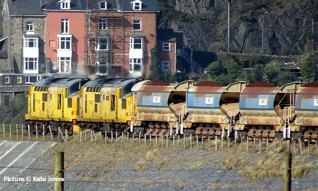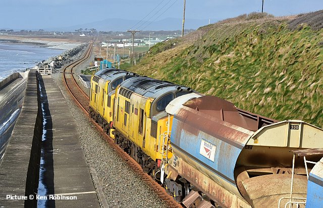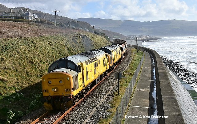 ![]() Pathfinder Tours organised a Wales rugby supporters excursion for the 2019 Scotland v Wales Six Nations International match on 9 March. Starting from Carmarthen and picking up at South Wales stations, Shrewsbury, and Crewe (pickup for North Wales passengers), then travelling to Edinburgh and Motherwell (for the Glasgow area), on Friday 8 March and returning on Monday 11 March. Robert Meredith photographed the 8 March train near Nantwich with 68 001 Evolution. Cambrian ballast trains![]() Following publication of our piece on the Barmouth and Aberystwyth ballast trains, we now have more information about what happened over the weekend of 1-3 March, and has been repeated on 8-9 March (any corrections welcome!). The work sites are between Barmouth and Harlech, and near the former Bow Street station (which is planned to re-open) on the Aberystwyth line. With just two Class 97/3 ERTMS fitted locos available to serve the two sites, two 'normal' locos - 37 099 and newly-overhauled 37 418, were hired from Colas, and on Friday 1 March, 'topped-and-tailed' the Crewe - Aberystwyth train, with one 97/3 piloting. The two 37s and the train were stabled out of the way in the run-round loop at Aberystwyth station, while the 97/3 returned to Coleham depot, to be ready to go to Crewe and double-head with the other 97/3 the ballast train for Barmouth on Sunday 10 March. When the engineering work commenced on Saturday night, the Machynlleth - Aberystwyth section was put 'under possession' meaning that only trains involved in the engineering work were allowed, so the 37s were able to take the train to the work site and move it around as necessary. In the early hours of Monday, the two 97/3s returned the wagons from Barmouth to Crewe, and later one of them headed for Aberystwyth to collect the other train which will have been again stabled to the run-round loop to allow passenger traffic to return. ![]() The two pictures above, by Ken Robinson, show the 10 April train from Crewe at Llanaber, north of Barmouth and within the possession. The wagons are known as 'autoballasters' because the opening of the side chutes is powered and can be controlled remotely. The end wagon of the set (behind the locos) has a diesel generator to provide the power. ![]() These views by Kate Jones (taken during gale force winds) show the train near Morfa Mawddach. ![]() 97 303 is leading 97 304 (recognisable as the only named one). ![]() Here's 97 304 John Tiley (looking in rather run-down condition) at Machynlleth on Monday 11 March, arrived from Coleham and ready to proceed to Aberystwyth to collect the train from there ... ![]() ... and the final cavalcade returning through Machynlleth with 97 304, 37 418 and 37 099. Both pictures by Sean Thomas. For more pictures of the operations over the two weekends, we recommend a visit to Richard Jones's Flickr page which has a set of 29 superb views of the trains. There were three distinguished Cambrian experts on that Llanaber footbridge! Richard has also uploaded to YouTube a spectacular video of Monday's triple-header. An especially interesting (to us, anyway)) feature of this operation is the appearance of 37 418, which back in the 1990s was one of the stalwarts of the North Wales passenger fleet. It has been a Scottish Highland loco from its creation as a 37/4 in 1985, but in 1990 it was transferred to the Railfreight Petroleum sector and named Pectinidae. At that time, freight 37s were loaned to the passenger sector for weekend Cambrian trains, and in 1991 418 made several forays to Pwllheli and Aberystwyth, until (as we mentioned in an earlier piece) Class 37s were banned from the line. In 1993 it was chosen for the North Wales Coast team, painted in Regional Railways colours and renamed East Lancashire Railway. A spell in preservation on that railway followed, then return to the main line under Colas, now wearing 1985-style large-logo livery, complete with Highland stag. Here is a picture on Flickr ; as so often which this livery is attempted, the 'wrong' style of figures has been used for the number, which should be in 'Rail Alphabet' with a straight stroke to the '7.' Wrexham line freights - report by Bob Greenhalgh![]() Wednesday 6 March saw the Carlisle - Chirk log train running in an early path, and with the evenings drawing out I was able to photograph the train for the first time this year, at Balderton Crossing.. ![]() From Monday 4 to Thursday 7 March there was a Bidston to Crewe via Wrexham ballast train running. I managed to photograph it on Thursday morning at 07:50. Interestingly the ballast wagons each had the slogan "renewing the tube". Laser gauging![]() Thanks to everyone who has written about the device attached to 150 237 on 25 February, as in Sean Thomas's picture reprised above. It is a Laser Gauging Unit, which uses a laser record the structure gauge - the distance between a passing train and any fixed structures on the lineside. Two technicians travel with it, monitoring the results on a device inside the train which receives and stores them from the Unit in real time, using GPS to correlate the readings with the location of the train. Two return runs to Blaenau Ffestiniog were made on the day. Made partly of lightweight carbon-fibre materials, it attaches to the coupler and be lifted on and off by the technicians, necessary at teminal and reversal points. The plan is to survey every Transport for Wales route in preparation for the introduction of the many new trains currently on order. One problem that needs overcoming is that at Bidston, the platform line where trains reverse is used by Merseyrail trains has a live third rail, with a risk to the staff who have to mve the unit. ![]() Readers may recall the optical gauging wagon, DC 460000, seen in this picture taken at Crewe by Andrew Vinten for our 8 November 2010 issue, which needed its own train, with the end of the two adjoining coaches painted black. Tecnology marches on. On Borderlands stations 
