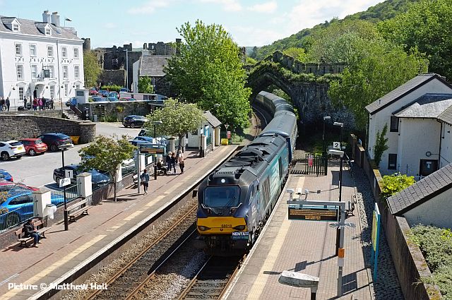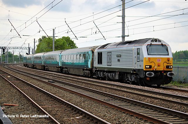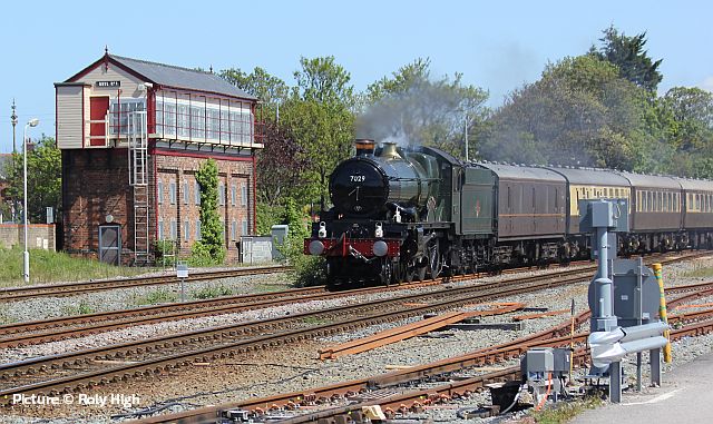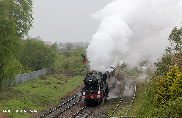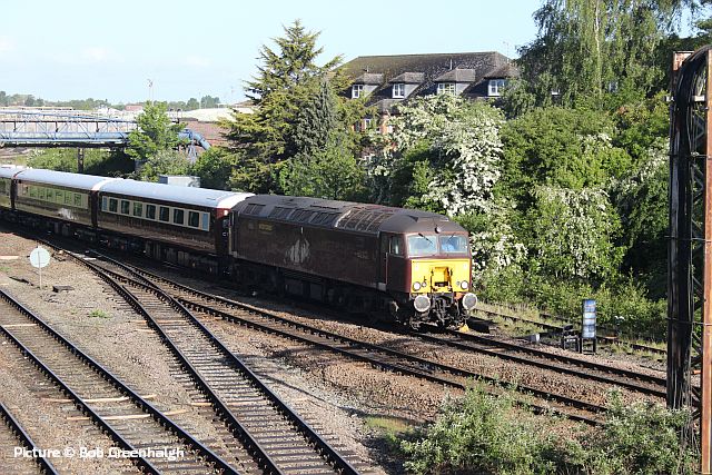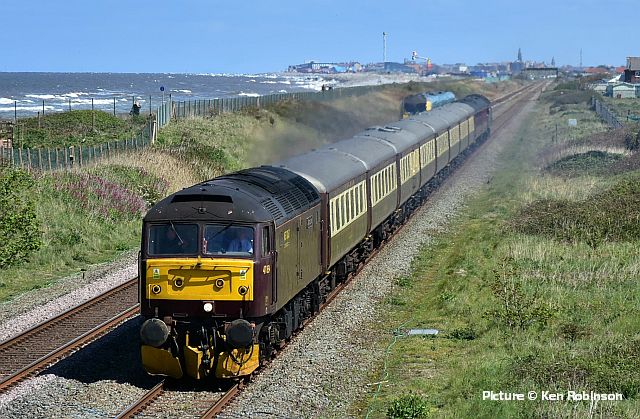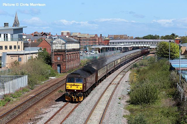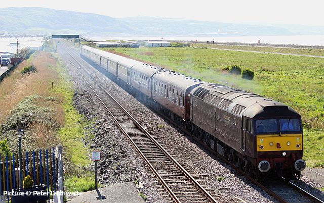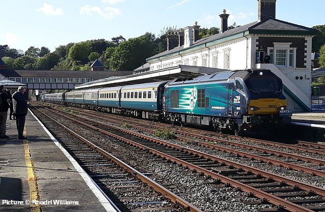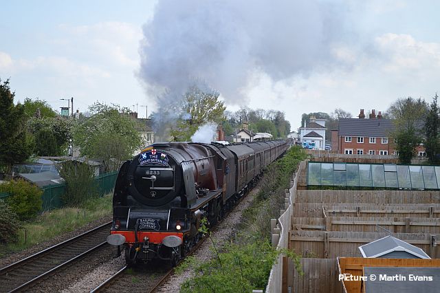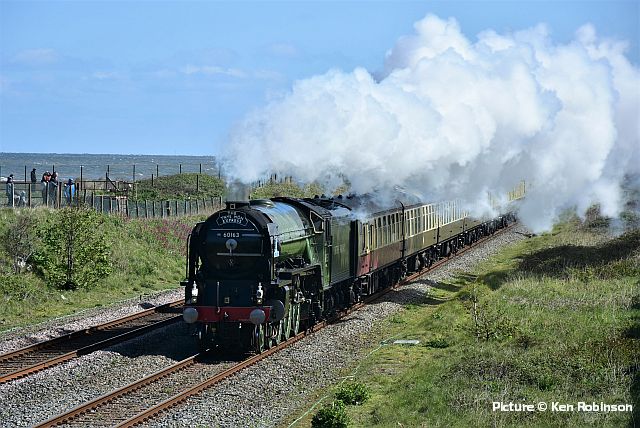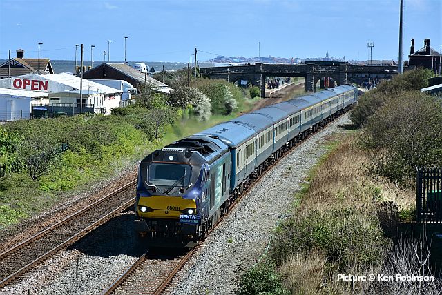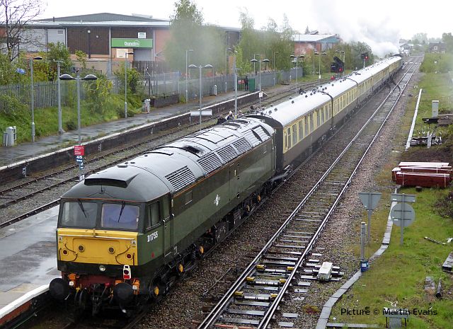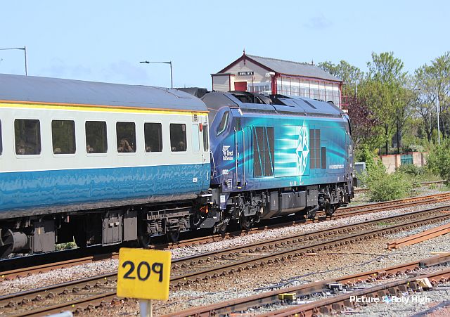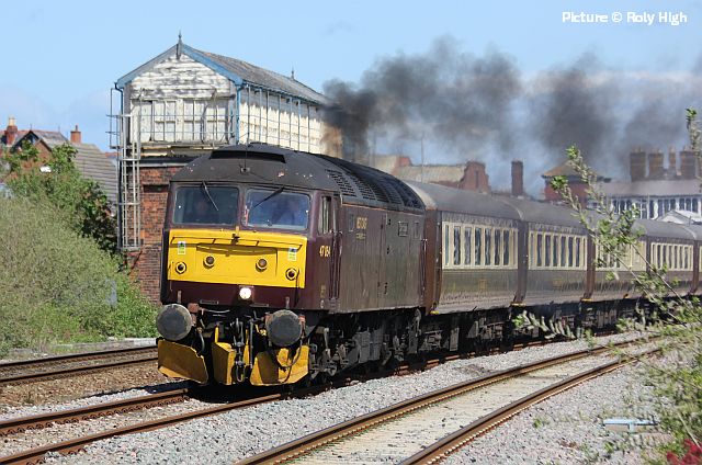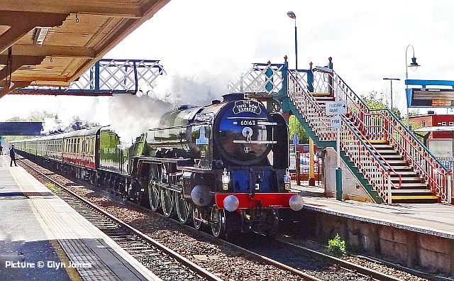 ![]() The 'Ynys Mon Express' passes Rhyl on 4 May. Picture by Roly High Quite a lot of pictures today, thanks to all contributors - this link goes down to the items not related to the 4 May Charters. - Charlie All about TfWThe current issue of Modern Railways magazine includes an 18-page 'Wales and Borders Special' which details the plans for the new TfW franchise in some detail. The rolling stock section tells of the forthcoming replacement of the Premier Express stock 'by the end of the year' with three rakes of four Mk4 coaches (to be released by LNER) plus Driving Van Trailers, which will provide three return trips on weekdays on the Holyhead - Cardiff axis, all with restaurant service, and timings to enable the service of breakfast, lunch and dinner. There will be two diagrams, and power will continue to be Class 67. The Manchester loco-hauled diagram will be taken over by the 175s released by this. Manchester - South Wales trains are to have First Class accommodation when the new stock arrives. The five Class 230 rebuilt London Underground trains will be 3-car sets, based at Wrexham General, and will initially work the Wrexham - Bidston route, and then be phased in to the Crewe - Chester service and then the Conwy Valley line. Apparently it had been suggested that there might be issues regarding emergency evacuation in the single-track Ffestiniog tunnel, as they do not have cab end doors, but TfW are satisfied that there is room to walk alongside the train if necessary. (That's reassuring, as many types of stock without such end doors have worked there over the years.) The authors make no comment about the replacement of the 158s and 175s with new units with 'suburban style' one-third /two-thirds door layout. Nor is there anything about the termporary appearance of shortened HSTs on TfW services, reported on the Social Media grapevine. Other chapters in the piece cover stations, electrification in the south, etc. Worth a read. Busy Day on the CoastMost unusually for recent times, on Saturday 4 May the Coast line saw four excursion trains, two steam- and two diesel-hauled:07:01 Leicester - Holyhead 'Ynys Mon Express' with 60163 Tornado (Abergele pass 11:08)The following four items record the working of the four trains. Apologies for not including every image received, but we have tried to include at least one from every correspondent. There'll be a second helping next week, as we have received further selections while compiling this one. Ynys Mon Express![]() We pick up the new-build Tornado passing the Hawarden aircraft facilities by Beeches Farm west of Chester. (Bob Greenhalgh). ![]() Flint (Glyn Jones). ![]() Ken Robinson writes: I spent a great couple of hours at Abergele (Pensarn to be precise) and it reminded me of summer days spent there in the 90's when there was a remarkable variety of motive power on show e.g. Railfreight Coal Day on 11 August 1991, and the 37's of course. Above, Tornado passes. ![]() On the return working, at Bangor (Rhodri Williams). ![]() Beeches Farm (Bob Greenhalgh). Welsh & Victorian Highlander![]() Rhyl (Roly High). ![]() 68 033 on the rear at Rhyl (Roly High). ![]() Abergele (Ken Robinson). NENTA originally stood (we think) for North East Norfolk Travel Association, but the name of the firm is now Nenta Traintours. ![]() Conwy (Matthew Hall). The passengers on the platform don't seem very interested in the passing 'cats'. ![]() On the return at Bangor with 68 033 leading (Rhodri Williams). ![]() Towyn (Peter Laithwaite). 68 033 is one on the two DRS locos (034 is the other) which have been equipped with the features needed for the TransPennine passenger services - not the destination display in the front window - but only for use when one of the dedicated locos is not available. DRS livery has been retained, but they remain un-named. ![]() 68 018 on the rear amid the caravan landscape at Towyn (Peter Laithwaite). Llandudno Victorian Extravaganza![]() 7029 Clun Castle hurries through Flint on its mission to visit the Llandudno Victorian Extravaganza (Glyn Jones). ![]() Rhyl (Roly High). This loco was built by British Railways at Swindon in 1950; for a while after Nationalisation, locos continued to be turned out to the designs of the old companies. ![]() Abergele (Ken Robinson). Withdrawn in 1965, 7029 was bought from BR in 1966 for £2400 by Patrick Whitehouse, whom older readers will remember from the 'Railway Roundabout' TV shows in the 1950s. It has returned to the main line this year for the first time since the 1980s. ![]() 47 773 (or D1755) on the rear at Abergele (David Hennessey). The fashion for painting both old and new numbers on diesels is almost as irritating to poor reporters like us as the craze for re-numbering steam locos. What is the official number? Or is that something else altogether like 89455? ![]() The steam loco remained on the Holyhead end of the train for the return journey as far as Chester where the train was to reverse. 7029 is seen above on the rear passing Flint (Glyn Jones). ![]() Back in charge after the reversal, 7029 passes Green Lane crossing on the Wrexham line (Bob Greenhalgh). ![]() Wrexham General, 20 minutes late (George Jones). The Llandudno Day Pullman![]() Repair work under way on the waste terminal sidings at Northenden as 47 854 passes en route for Chester and North Wales (Greg Mape). ![]() Rhyl (Roly High). ![]() Rhyl (Chris Morrison). This train was formed mainly of Pullman coaches built in the 1960s for the West Coast mainline and now owned by West Coast Railways. Based on the BR Mk2 design, they can be recognised by their inward-opening doors, a Pullman company tradition not found on the many standard Mk2 vehicles repainted in Pullman livery by present-day operators. ![]() Abergele (Ken Robinson). ![]() 47 832 brings the return train through Towyn, with the two second class coaches behind the loco (Peter Laithwaite). The destination on the return was beyond Peterborough at Gainsborough Lea Road, c