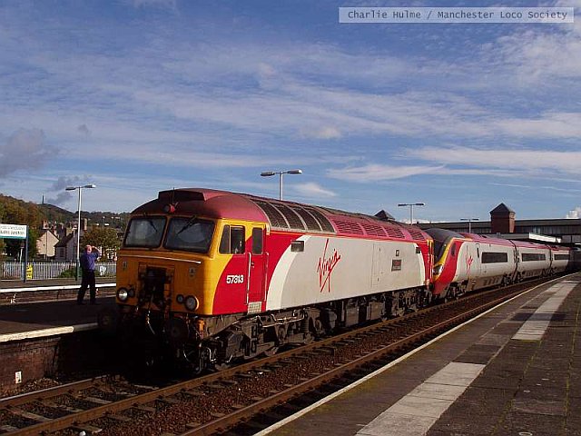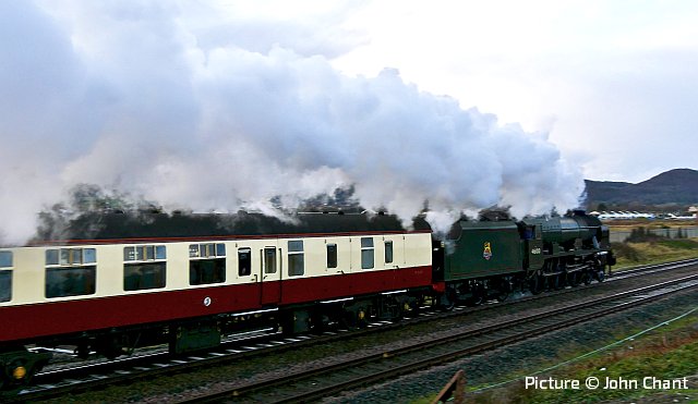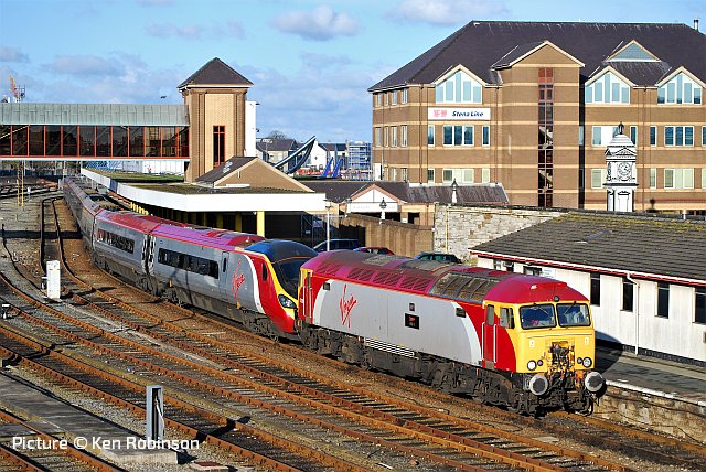 ![]() 7822 brings the first 'Santa Special' of the season into Berwyn, Llangollen Railway, 14 December. Picture by Bob Greenhalgh. Looking Back - Virgin on the Coast![]() Virgin Trains took over the London - North Wales services, along with the rest of the InterCity sector's West Coast services, in 1997. Initially there was little change to the train service except the Virgin livery being applied to the stock. The North Wales trains were a mixture of Class 47-hauled stock and HSTs, in variable amounts. Above, HST at Holyhead, 19 April 2003. HSTs first appeared under British Rail auspices in 1991; a small fleet, based at Manchester Longsight, was allocated to the InterCity sector. ![]() Under Virgin Trains in 1998, 43 101 was treated to a naming ceremony at Holyhead, celebrating 150 years of the 'Irish Mail' named train and featuring a new style of locomotive naming using 'artistically-designed' vinyls. It was said that Chris Green, when he took over the reins at Virgin Trains, ordered the removal of these and replacement by traditional nameplates. ![]() 13 April 2002 at Crewe. 90 014 attached to rear of North Wales - London train. ![]() Problems on 23 February 2002 at Crewe, Platform 11. 47 789 arrived from North Wales towing a 'dead' 47 and train. At the end of HST workings in May 2004, there were three weekday HST diagrams, which included two return trips on the Manchester - London service as well as the Coast workings. In Summer 2004 all Virgin's coast trains were loco-worked using Mark 3 coaches in push-pull format with a driving trailer which was normally at the Holyhead end of the train. The train would be pushed from Euston to Crewe by a Class 87 or 90 electric loco, which would be detached (except on one occasion someone forgot) and a diesel attached to the front of the DVT for the run to Holyhead. Class 47s from the 47 8xx series were normally used. In From July 2004, the Virgin locos were replaced by hired Freightliner Class 47s until the end of locomotive working at the September timetable change. ![]() 30 October 2004 at Crewe. Voyager 221 105 William Baffin. ![]() Mochdre, November 2008 (Ken Robinson). Virgin's plan was to run the London - Holyhead services with the 'Voyager' Class 221 units, four of which were earmarked for West Coast use, the remainder being allocated to the Virgin Cross Country franchise. One was shown off at Llandudno in 2001, but it was Autumn 2004 before a regular service began, including a daily London - Llandudno and return working which lasted a couple of years. ![]() September 2006: Llandudno Junction. 57 313 Tracy Island on Pendolino from London. However, there was disquiet among some important regular passengers about the limited food service available from the 'galley' of the 221s, and it was decided to run the services at 'business' times with a 'Pendolino' unit which would be hauled between Crewe and Holyhead by a Class 57/3 'Thunderbird' loco. ![]() 57 316 FAB 1 at Holyhead, November 2008 (Ken Robinson). The 57/3s were originally intended for occasional use in diversions or to rescue failed trains. In regular daily service it was necessary to have a driver in the Pendolino to work its on-board systems as well as the loco driver, and there were some problems with the coupling and uncoupling process at Crewe, but this procedure continued for several years - latterly Saturdays only - until December 2012. Since then, all London services have been worked by Class 221 units, which apparently have been equipped with better food service; has anyone had experience of the Voyager breakfast? Loco-hauled disappointment![]() From the 16 December, Transport for Wales should have brought in to use their new (well, second-hand) Mk4 coaches, and in addition to the daily 'WAG express' another loco-hauled diagram, including an 07:02 Cardiff - Holyhead via Chester, controversially omitting stops at a number of stations (Gobowen Chirk, Ruabon, all stations west of Chester except Llandudno Junction, Bangor and Holyhead) apparently for 'pathing' reasons. Understandably, users are unhappy with this situation, especially since if it stopped at Gobowen, Chirk and Ruabon it would be the first off-peak service. As it stands, there is a two-hour gap in northbound service . TfW have, according to a press report, promised to introduce some replacement buses, 'one from Shrewsbury to Ruabon leaving at 9.25am and another from Gobowen to Chester leaving at 9.15am'. Readers of our last update would have read that the introduction of the new stock has been delayed to 'early 2020' but the actual timetable went ahead as planned, with substitute stock. George Jones was at Wrexham General to photograph 158 839 (above) working the train on its first day... ![]() ... and John Cowlishaw was at Broad Oak Crossing, Rossett. In the background 175 002, with the 08:30 Llandudno to Cardiff Central, can be seen starting as Rossett Junction signal had just cleared to green so it could occupy the single track section to Wrexham North just released by the 158. Cambrian cornerDafydd Roberts writes: 'The photo of Afon Wen station in the 9 December Noticeboard prompts me to get in touch with a personal reminiscence. When the National Eisteddfod was held in Criccieth in 1975, during the first week in August, one of the evening gigs was held in a large marquee on land near Afon Wen. Someone, somehow, had been able to arrange for all trains running between Porthmadog and Pwllheli that evening to stop at the former Afon Wen station. Although the station had by then been closed for several years, one platform remained usable, and the track formation had not been altered. My memory is that the weed infested platform was busy throughout that one evening. Can anyone else corroborate my recollection - and might there even be some photographs of this unexpected resurrection of the station?' ![]() Mishaps at Criccieth level crossing occur from time to time, and it's not the motorist's fault every time: this p