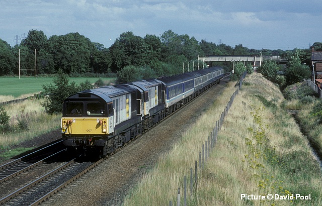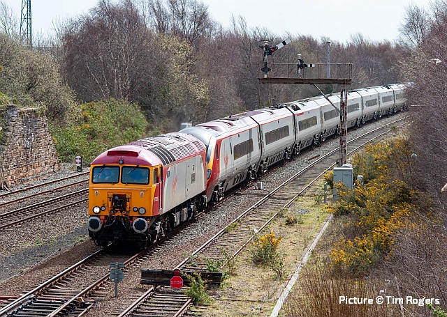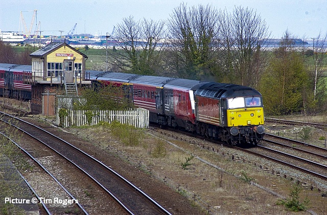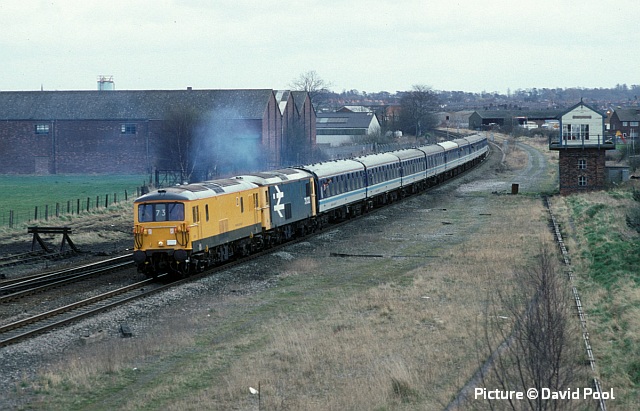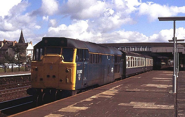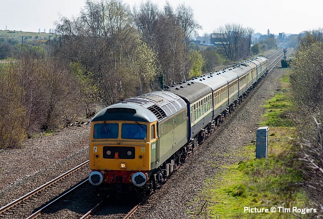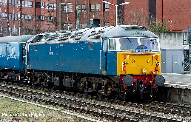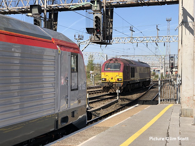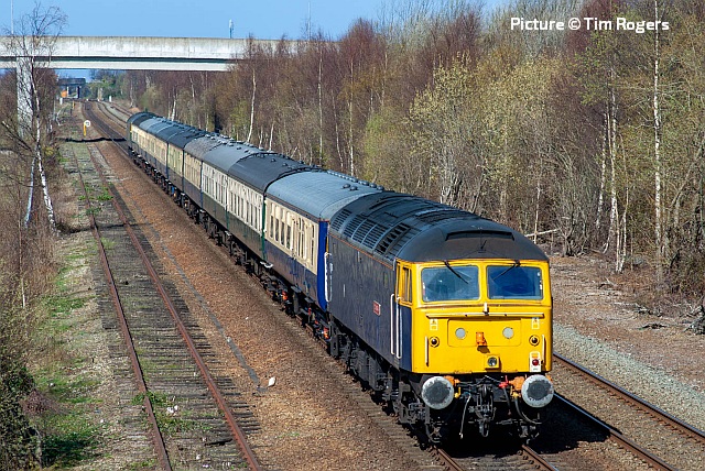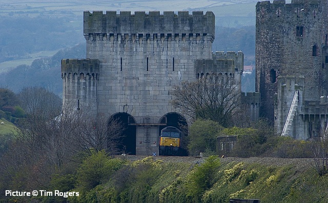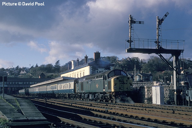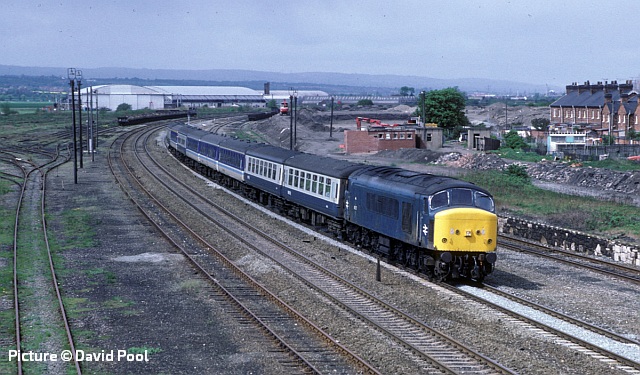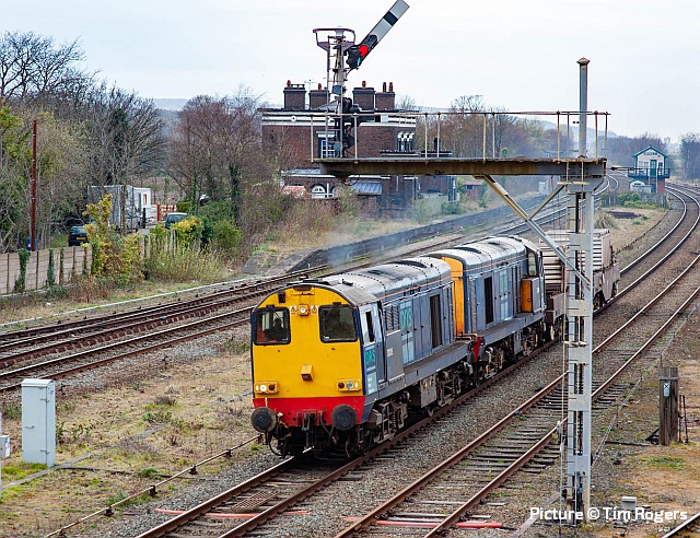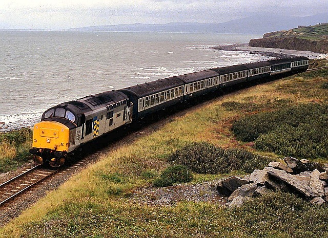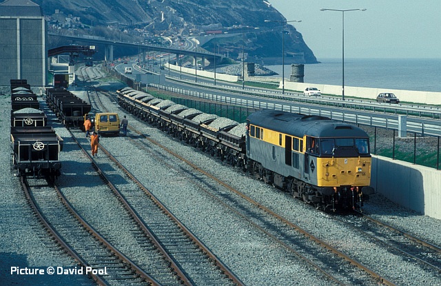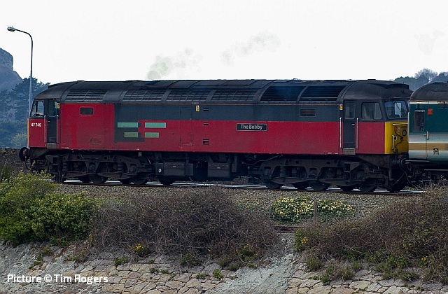 ![]() 20 315 and 20 306 pass Holywell Junction with the 15:14 Valley to Crewe flasks, 2 April 2008. In 2020 Flask trains no longer run, the signal no longer stands, and DRS Class 20s are on the brink of extinction. Picture by Tim Rogers. Look for another extra page on Friday morning, and keep those historic scenes coming. Does anyone have some from the 1970s? - Charlie Seen at Crewe![]() Train driver Jim Scott was at Crewe station while on duty on 7 April and took these images for us. Rarely can Platform 6 be so deserted at lunchtime. ![]() Present was 67 025 with one of the Transport for Wales, ex-East Coast carriage sets, working empty from Crewe Carriage Sidings to Holyhead. 67 020, still in full EWS livery, is in the background. ![]() Driving Van Trailer 82229. 47s in 2003 - pictures by Tim Rogers![]() 2003 was a bumper year for Class 47 enthusiasts, the locos appearing on some Virgin and First North Western services. 10 April 2003 saw 47 843 Vulcan passing Holywell Junction on Virgin's 1A49 09:21 Holyhead to Euston. ![]() HSTs also appeared on Virgin services, as seen on 11 April 2003, approaching Llandudno Junction. 43 101 County of Derbyshire and 43 084, working 1A77 13:43 Holyhead to Euston. ![]() 47 769 Royal Mail Tyneside on the 1G11 14:00 Holyhead to Birmingham New Street First North Western service, formed of carriages borrowed from sister company First Great Western. ![]() 47 746 The Bobby: 1D71 12:21 Birmingham New Street to Holyhead. From Dave Sallery's archive![]() Class 58s were always rare in North Wales. However in 1985 a new coal flow started from Toton to Garston Docks on Merseyside. As the Speke Junction men were not trained on the Class 58 a number of crew training turns ran to Llandudno Junction from Speke Junction. 58 016 is seen here heading back to Merseyside on one such turn passing Mostyn on 21 August. Note the large number of hopper wagons, used for carrying sulphur to Amlwch, in the background. ![]() 31 August 1989 at Rhyl, 31 292 with a three-coachwestbound train complete with window-hanging'bashers.' Only the 31/4 variety were equipped for electric heating of trains, but the passengers on thissummer day would not have missed it. ![]() In 1986 the rebuilding of Class 37 locos for further service to 37/4 passenger engines, and 37/5 and 37/7 for freight was under way at Crewe works. Locos after overhaul would often be sent 'down the coast' and back, normally with another loco for insurance and a rake of withdrawn coaches. However 37 698 (the penultimate 37/5 conversion) seen near Prestatyn on 12 February 1986 was undergoing a trial by double-heading, with 33 037, the 11:15 Crewe - Bangor passenger train and the 14:17 Bangor - Cardiff, the 37 being detached at Crewe. 37 698 was withdwan in 2009 and scrapped. ![]() On the Cambrian Coast on 17 August 1991, 37 418 Conidae, near Llwyngwril with the 09:36 Pwllheli - Birmingham New Street, taking home happy campers from Butlin's Pwllheli. These summer saturday turns were worked, to the delight of many enthusiasts, by 37/4s hired from the freight sector. (The petroleum sub-sector had a small fleet of 37s for lines on whch the 47s were considered too heavy, such as the weekly Stanlow - Aberystwyth service.) In 1993, 37418 became one of the regulars on the Regional Railway North Wales passenger services, gaining the name East Lancashire Railway. It was later bought from preservation, and survives today in the Colas fleet, having recently served on the Cardiff - Rhymney route. Chester's steam rail crane - recalled by Peter Neve![]() Stanier Class 4 2-6-4 42647 draws the Chester (shed 6A) breakdown train on to the main line for its next turn of duty in July 1966. 42647 was also a regular performer on passenger trains between Chester and Birkenhead at this time. ![]() Standard Class 5 4-6-0 73144 (fitted with Caprotti valve gear) stands ready to take the breakdown crane to its next assignment, having been moved from its storage siding to the north side of the shed. The locomotive’s home shed (9H, Patricroft) can be seen painted on the buffer beam in black lettering. Meanwhile, a fitter is applying gentle persuasion to the running gear of Chester-based Stanier Black 5 4-6-0 44875. The date was 31 May 1967 and the shed would be closed five weeks later. ![]() When not in use, the breakdown crane was usually parked on the siding adjacent to the north side of the shed. In April 1966 it can just be seen behind Standard Class 4 2-6-0 76095, which seems to be having some work done on the inside of the smokebox, with the chimney skirt resting on the front of the engine. Standard Class 5 4-6-0 75010 (with hand painted wooden number plate on the smokebox door) has just reached the eastern extremity of the shed having been coaled and watered, and is now preparing to move forward on to the ash disposal area. A week over time: pictures by Tim Rogers![]() In 2005 Penmaenmawr quarry was dispatching granite by Rail to other Hanson sites, as when Tim photographed 66 122 passing Connah's Quay with 6Z50 10:47 Penmaenmawr to Acton on 9 April. ![]() On the same day, steam traction in the impressive shape of 6233 Duchess of Sutherland on an excutsion from Ashford to Holyhead. ![]() For a short time, Virgin's 'Thunderbird' Class 57s saw service on the log trains to the Kronisman works in Chirk. On 1 April 2005, 57 310 Kyrano hrads out of Chester with 6J37 12:51 (FX) Carlisle Yard to Chirk. ![]() 2006: On 8 April, 47 712 Artemis, in 'nanking blue' inspired by the Blue Pullman' diesel sets of the 1960s, and recently mentioned here on account of its current livery, arrives at Chester with the ill-fated 'Blue Pullman' set (formed of ex-BR Mk2 coaches) on an excursion from London... ![]() ... on the rear, 47 832 Driver Tom Clark OBE in the livery of 'FM Rail' which was formed in 2005 by a merger of Fragonset (which apparently had a fleet of 75 old diesel locos) and Merlin Rail. Unfortunately for its shareholders it went into adminstration at the e