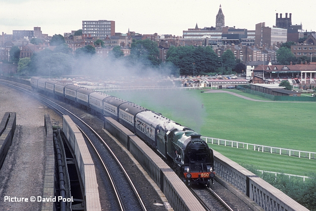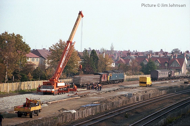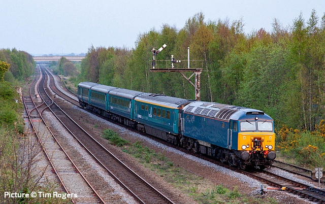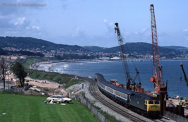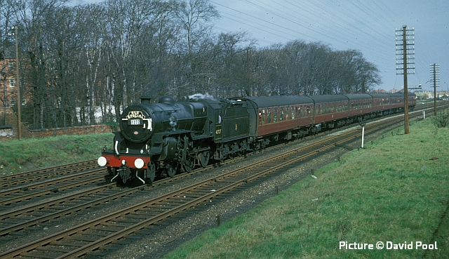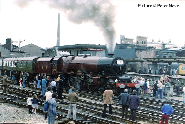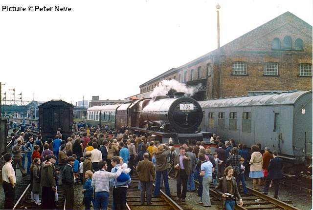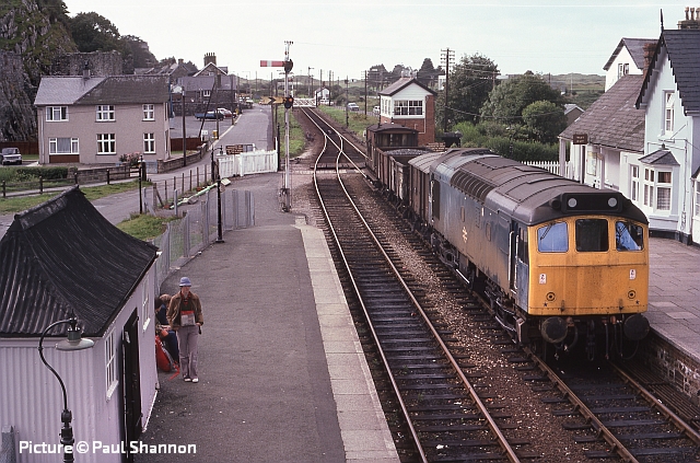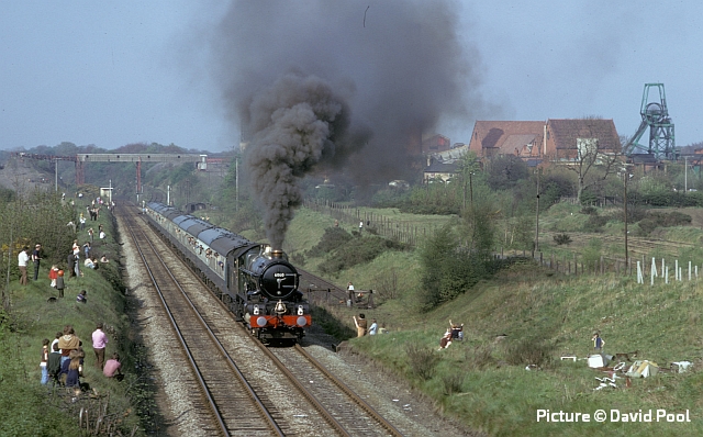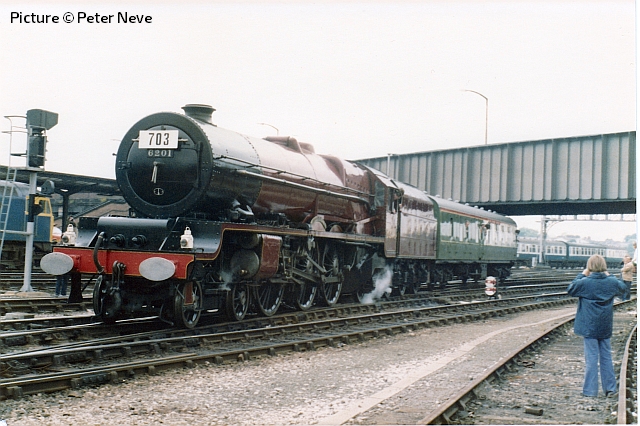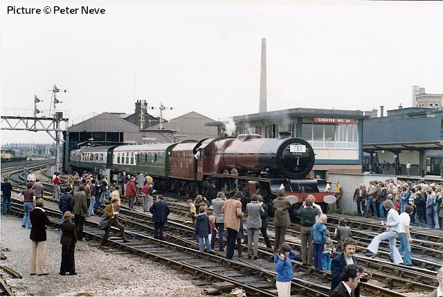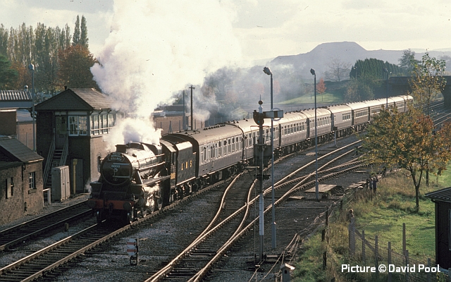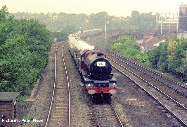 ![]() Prior to this, construction started on a new goods yard at Llandudno Junction, to replace the doomed Colwyn Bay facility, which would be swept away by the new A55. The new alignment of the Blaenau branch is also visible. 7 October 1980. During construction of the new road, a siding and discharge point was installed at Llandudno Junction for fly-ash from Fiddlers Ferry power station. ![]() The start of the new fly-ash siding, under construction. at the side of the depot. Marker signals can be seen along the new alignment. 31 July 1982. ![]() 56 042 arriving at the Junction, with flyash from Fiddlers Ferry. 8 October 1982. ![]() The same train on the fly-ash discharge point ... ![]() ...having propelled the train along the new siding. 8 October 1982. ![]() 25 323 with an Engineer's train, approaching Tan-y-Bryn bridge, on the old formation. Digging out of the hillside to the right has started, where the new formation will be laid. 29 May 1982. ![]() 47 242 approaching Penmaenrhos Tunnel with the 12:30 (SO) Llandudno - Nottingham, normally a Class 25 working. 3 July 1982. ![]() Old and new alignments at Colwyn Bay. 6 November 1983. ![]() 25 209 with up Freightliner flats near Mochdre, taken from the new alignment. 8 November 1983 ![]() New alignment near Mochdre. The late Edmund Williams is in the yellow coat. Thanks to his kindness, I was given privileged access to many of the locations. 8 November 1983. ![]() New alignment near Mochdre. 8 November 1983. ![]() 47 298 with track panels at Colwyn Bay. Notethe LMS brake van and coach. 8 November 1983. ![]() Colwyn Bay goods yard site. 16 November 1983. ![]() 25 224 near Mochdre ... ![]() ... with Inspection Saloon DM45029. 16 November 1983. ![]() 47 363 with ballast from Penmaenmawr, destined for the new alignment. 16 November 83. ![]() 47 363 after accessing the new alignment. 16 November 83. ![]() 47 331 passing Colwyn Bay signalbox with ballast from Penmaenmawr. This load was not for the new alignment. 16 November 1983. 703 Centenary Special to Chester 1976 - by Peter Neve![]() Sir William A. Stanier FRS (Chief Mechanical Engineer to the L.M.S.) was born on the 27 May 1876. To commemorate the centenary of his birth, a special excursion was arranged using one of his locomotives. The special started at Hereford, where 6201 Princess Elizabeth was based at the time. The headboard of 703 was chosen because this was the headboard code of the record breaking run in November 1936 when one of the class travelled non-stop from London Euston to Glasgow. There is a report that Robert Riddles was on the footplate at the time of the special in 1976. Above, Princess Elizabeth approaches Northgate locks as it hauls the 703 Centenary Special train over the viaduct between Chester Racecourse and the gas holders. In the background can be seen a mixture of colour light signals and semaphore signals with white background sighting screens. ![]() 6201 has been fuelled and watered and is propelling its support coach on to the triangle on the far side of Hoole Road bridge to be turned. ![]() 6201 has been parked adjacent to the old goods warehouse (later destroyed in a fire) and awaits the attention of its support crew. I believe this was only 6201’s second mainline outing since the end of steam in 1968 and attracted considerable public interest, as the photographs show. There appears to be scant regard for Health and Safety, with children and even a policeman standing on the running lines. This behaviour would not be tolerated in the present day (notwithstanding the rails are electrified!). ![]() 6201 is backing on to its train standing in platform 7 as it passes Chester’s no. 3A signal box. These photographs are a selection from about a dozen or so I took on the day. I think there is also a fashion statement to be found within some of the photographs! ![]() 6201 threads the Centenary Special between the throng of spectators on the return leg back to Hereford. A Feast of 31s - pictures by Dave Sallery![]() 31 410 passes Mostyn on 8 July 1992. The early to mid 90s saw a variety of Class 31 locos making their way down the Coast, on passenger, ballast and nuclear flask workings. ![]() Chester on 16 August 1995, with 31 468 The Enginemens' Fund in 'engineer's Dutch' livery, although an electric-heat fitted loco. ![]() 31 421 departing from Llandudno, 5 June 1993. ![]() A gathering of 31s at Llandudno Junction on 10 July 1995. 31 439 , 31 119, 31 275, and 37 199. ![]() 31 422 calls at Bangor, 16 August 1995. A steam special selection (part 1) - pictures by David Pool![]() On 27 March 1966 the Stephenson Locomotive Society ran a Railtour from Birmingham Snow Hill to Llandudno Junction. “Crab” 42727 is approaching Rhyl with a reporting code 1Z27, suitably cleaned for the occasion. ![]() 4079 Pendennis Castle was used for a few railtours before it was shipped to Australia – although now repatriated to the UK. On 4 March 1967 there were two separate trains (The Zulu and The Birkenhead Flyer) to mark the end of through services from Birkenhead Woodside to London Paddington. 4079 is working 1X82, the 08:25 Flyer from Paddington, at Johnstown near Wrexham. ![]() The second locomotive used on 4 March 1967 was 7029 Clun Castle, working 1Z83, the 15:37 from Birkenhead (The Zulu). The sight and sound of 7029 tackling Gresford Bank was memorable. ![]() Another red letter day for Gresford was on 26 April 1975, when 6000 King George V was permitted to run north of Wolverhampton, having been banned from the route in BR days due to a weight restriction. Again, two locomotives (6000 and 35028 Clan Line) were involved with separate Railtours to Chester, this time exchanging locomotives on the return journey. 6000 has the Merchant Navy Locomotive Preservation Society’s 16:00 Chester to Paddington, passing the site of Gresford Colliery. ![]() Southern Railway 850 Lord Nelson was frequently used on Railtours in 1981. On 13 June it was leaving Chester for Hereford on the 
