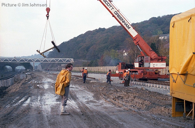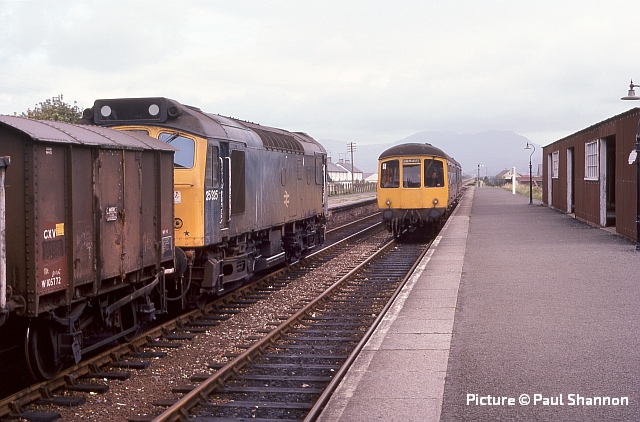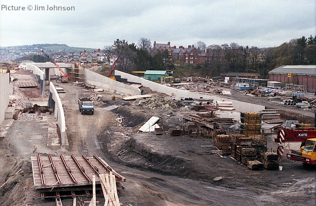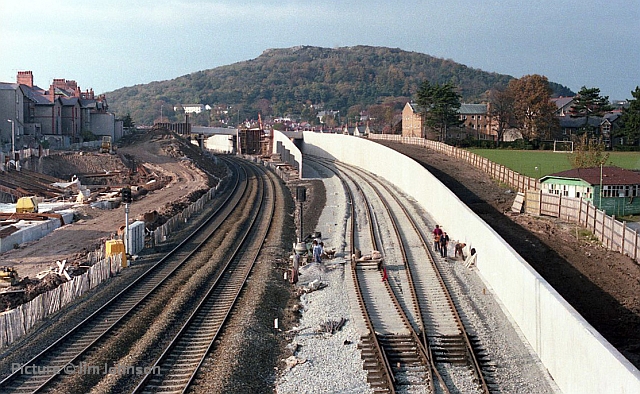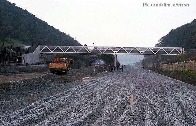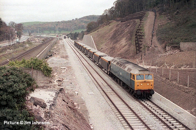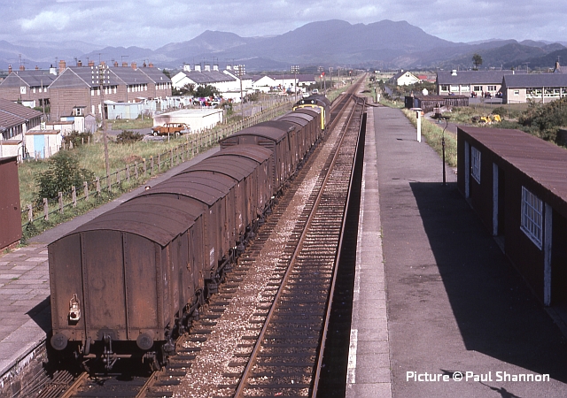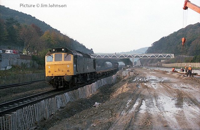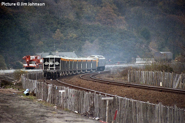 ![]() On 17 April 2009, 57 313 passes Holywell Junction with train 1W91 16:17 Cardiff Central to Holyhead. Yet another collection of historic scenes ... and look out on Friday morning 1 May for another extra issue. Thanks as always to all contributors.- Charlie The Cambrian Coast goods - by Paul Shannon![]() The Cambrian Coast line was one of the last in the UK to feature the traditional daily 'pick-up' goods. These pictures were taken in 1978. Above, on 25 September 25 252 passes Harlech with empty gunpowder vans for Penrhyndeudraeth, and a couple of normal vans which probably carried fertiliser... ![]() ... at least one of the gunpowder vans had originated at Llantrisant. No > brake van was necessary by this date because the wagons were all vacuum-brake fitted. ![]() The next day, 26 September, 25 325 is hauling one empty gunpowder van for Penrhyndeudraeth, one no-vacuum-fitted 16-ton mineral wagon with coal from Gwaun-cae-Gurwen to Porthmadog and one vacuum-fitted coal wagon from Gwaun-cae-Gurwen to Pwllheli ... ![]() ... Class 103 'Park Royal' unit M56164 + M50398 enters the passing loop with a train from Pwllheli. The gunpoweder vans were given the TOPS code CXV, the C (covered bulk wagons) distinguished them for ordinary vans with codes beginning with 'V'. Looking back: building the A55 road - with Jim JohnsonHere is a response to the a request from Gary Connor for pictures taken during the construction of the A55 North Wales Expressway in the 1980s, which imapcted on the railway route in a number of places.