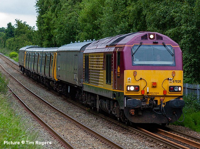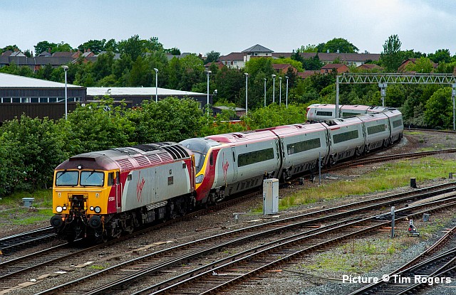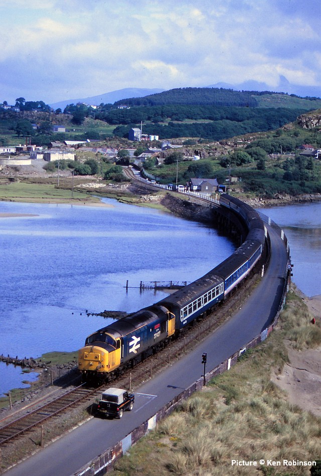 ![]() 66 127 manoeuvres its train of steel carriers at Mostyn, 16 June 2005. The steel was exported to Ireland. Picture by Tim Rogers. Timetable ChangesThere are some timetables on a number of railway companies from Monday - Friday from 6 July. Transport for Wales will run in North Wales as follows (thanks to Mike Stone for information): Services revert to being weekday-based rather than Sunday. Daytime off-peak services do not run between Shrewsbury and Birmingham International. North Wales services are basically Holyhead - Shrewsbury (with some variation), Shuttles operated between Crewe - Chester and on the Llandudno branch. The Conwy Valley service continues to be a bus service. The Central Wales remains two daily trains each way. Bala Lake Virtual GalaThe Bala Lake Railway held a 'Virtual Gala' recently on Facebook to help raise money for the Covid-19 appeal. It was a great success with lots of people watching and donating, along with many positive comments throughout the day. The Gala can still be watched on YouTube at bit.ly/BalaGala and all of the 'Virtual items' in the online shop that were created for the event are still available for purchase. 100% of the money raised from these items goes directly to the railway's appeal. There are also plenty of non-virtual products to take a look at in the shop, from DVDs to books to magazines and other BLR branded merchandise, another great way to support the railway in these tough times. June 2005 - images by Tim Rogers13 Jun 2005, Flint ![]() A Class 221 calls at Flint with 1D00 05:20 Birmingham New St to Holyhead. ![]() 57 314 Firefly hauls a Pendolino forming 1R18 05:38 Holyhead to Euston 13 Jun 2005 Shotton High Level ![]() 60 065 Jaguar on 6V75 09:29 Dee Marsh to Margam empty steel carriers. 13 Jun 2005 Hawarden ![]() 60 071 Ribblehead Viaduct, 6M86 13:24 Llanwern to Dee Marsh. Loaded steel. ![]() 67 020 with Mk1, Translator vehicle ADB 975978, 507 014, and Mk1, Translator vehicle ADB 975974, form 5X47 FO Q 08:42 Eastleigh Works to Birkenhead, returning a refurbished unit. 13 Jun 2005 Shotton![]() 57 304 Gordon Tracy dragging 390 039 Virgin Quest, 17:21 London Euston to Holyhead 14 Jun 2005 Hoole Road, Chester ![]() 57 304 returns with the 1R18 05:32 Holyhead to Euston. 14 Jun 2005 Shotton ![]() 66 118 6V75 09:29 Dee Marsh to Margam. Empty steel carriers. Liverpool Road, Chester - pictures by Peter Neve![]() Having just passed through Liverpool Road station on 1 June 1967, Stanier 8F 2-8-0 48648 is stopped at Chester East Junction with a train from the steelworks at Shotton. The driver is anticipating a long delay as he is seated with his back to the cab window and chatting to his fireman. The reason for the signal check is an evening departure from Chester Northgate station to Manchester, which will take some time to clear the section between Chester East and Mickle Trafford signal boxes. (Apologies for the image quality, the colour negatives have begun to degrade.) ![]() With the signalman looking out from the porch of Chester East signal box, the driver of 48648 makes an exemplary start on a steep gradient with a heavy train loaded with steel coils. 48648 was withdrawn from Speke MPD a few weeks later and cut up in November 1967 at Cashmores in Newport. It had previously been based at Birkenhead (Mollington Road) and Llandudno Junction. ![]() The following evening at the same location Stanier 8F 2-8-0 48271 lifts a mixed freight train up the steep gradient from Liverpool Road station with the driver again exhibiting superb engine control. 48271 was based at Northwich steam depot at the time and was withdrawn from traffic in August 1967 and cut up in May 1968. Cambrian Summer 1990 - by Ken Robinson![]() In these troubled times, of no trains on the Conwy Valley line and just a basic timetable on the Cambrian, I have searched out some photos from 30 years ago when we had 'real' traction on the Cambrian every summer Saturday. Above: 37 429 Eisteddfod Genedlaethol near Afonwen on 14 July 1990 with the 09:32 Pwllheli-Euston, which it would haul as far as Wolverhampton. ![]() 37 427 Bont Y Bermo crossing Bont Briwet on 9 June 1990 with the aforementioned train. ![]() 37 428 David Lloyd George passing Llandanwg on 2 June 1990 with the 09:03 Euston-Pwllheli. 1990s DMUs - pictures by Greg Mape![]() A Class 101 departs from Harlech, still fully signalled in the traditional way. ![]() A Class 108 108 on the Conwy Valley at Betws-y-Coed with its railway museum. Looking back with David Pool - Warrington area![]() Water troughs are now just a memory, but on 2 July 1966 Britannia 70025 Western Star was picking up water at Moore on the 08:20 from Barrow to Birmingham New Street. The footbridge I used is today still a good vantage point for Northbound trains, although the overhead wires and trees make Southbound views difficult. ![]() The line between Skelton Junction and Arpley was being used for passenger train diversions on 12 April 1985, in addition to the freight paths. On that day 47 275 was heading for ICI’s Castner Kellner Works at Runcorn with empty Caustic Soda tanks, crossing the Manchester Ship Canal at Latchford. In the distance under the bridge are the Latchford Locks and the Thelwall (motorway) Viaduct. ![]() Later in the day I went to Winwick Junction, and was fortunate to see the Advanced Passenger Train 370 003 demonstrating its tilt capability. Earlier that month I had sampled the APT on a scheduled service between Preston and Euston, and I had not been convinced by the effectiveness of the tilting to give a pleasant riding experience. ![]() The line from Arpley to Skelton Junction via Lymm was closed in 1985, so this view of the sidings at Latchford taken on 6 January 1991 is rather misleading. 20 010 and 20 082 are in the low level sidings, having run round an Merry-Go-Round train from Fiddlers Ferry. The higher level twin tracks on the left would previously have continued across the Manchester Ship Canal towards Lymm, but ar