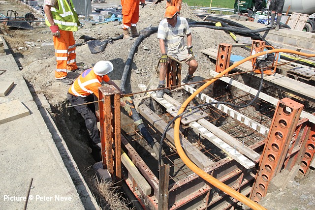 ![]() A train of long-welded rail carriers, top-and-tailed by 97 304 and 97 302, makes its way across Barmouth viaduct on 24 August. Picture by Kate Jones. Borderlands scenes, 17 August - by Tim Rogers![]() 150 267 calls at Caergwrle with train 2F70 16:32 Wrexham General to Bidston. ![]() 66 768 passes Caergwrle with 6M42 09:06 Avonmouth Hanson Sdg GBrF to Penyffordd Cement empties. ![]() At Gwersyllt, 150 227 is 2J69 16:35 Bidston to Wrexham General. ![]() 66 169 with 6M86 10:27 Margam T.C. to Dee Marsh Reception sidiings. Loaded steel for coating. Looking back: Runcorn - with David Pool![]() Not quite in Runcorn yet, but 46211 Queen Maud is about to cross the Runcorn Bridge on 9 July 1960, having climbed the viaduct from Ditton. The footpath alongside was still open, as was the Transporter Bridge, and provided some stunning shots, although at the time I was less keen on head-on views which did not show the train. 46211 was working the 09:50 LIverpool Lime Street to Euston (Saturdays only), and would be stopping at Runcorn. I have seen it stated that this was a Crewe North locomotive in 1960, but it clearly shows an 8A Edge Hill shedplate. It was withdrawn the following year. ![]() On 13 May 1961 a visit to the Runcorn Bridge (sometimes referred to as the Ethelfleda or Britannia Bridge) showed the new road bridge nearing completion. An astonishingly clean “Austerity” 90173 with an 8F Springs Branch shedplate is probably heading for Liverpool docks. The footpath toll was abolished in 1963 when the new road bridge opened and the Transporter was dismantled, but the footpath was eventually closed in 1965 after some antisocial behaviour problems. ![]() The exchange sidings at Weston Point were always busy, and on 22 January 1973 a train of empty caustic soda tanks is about to cross Sandy Lane on its way to ICI’s Castner Kellner Works. The “Janus” class locomotive Eskdale, Yorkshire Engine Co. 2718 built in 1958, was one of several coming from the Agricultural Division of ICI Billingham to replace the smaller Yorkshire 0-4-0 diesels CK1 to CK5. It has here been rebranded as a Mond Division locomotive. ![]() Weston Point was also the source of traffic from the ICI Salt Works, which became Salt Union and more recently Ineos. On 23 May 1992 47 317 is about to leave the Works with a rake of salt wagons. Unlike the arrangements at ICI Castner Kellner and Rocksavage Works, BR locomotives were now permitted to enter Salt Union Works to pick up wagons. ![]() The Folly Lane branch between Runcorn Station and Weston Point was not an easy branch to photograph, being mostly on an inaccessible embankment with overhead electrification. On 31 October 1993 Pathfinder Tours ran “The Merseyman” Railtour from Bristol, visiting Manchester, Runcorn and Liverpool. The Holloway car park at Runcorn Station gave the best photographic opportunities when the Railtour visited the branch. 56 096 is coming off the main line at Runcorn Station. ![]() At the other end of the Railtour train were a pair of 50s, 50 033 Glorious in Network South East livery and the green 50 007 Sir Edward Elgar . The train has climbed up the gradient from Weston Point, and the blue haze in the image is the product of 50 033 and not due to the film processing! ![]() In one of the earlier “Looking Back” pieces, I showed two DRS class 33s at Winwick with 'Minimodal' branding, travelling from Sellafield to Weston Point. I wanted to photograph one of these trains on the branch, and eventually I decided that a shot from near a slip road on the Expressway was the safest option! On 24 June 2003 33025 was again working the train, but this time partnered with the slim bodied 33 207 (Hastings gauge). A long telephoto was used, and somehow I found a gap between the lorries to get an acceptable shot. ![]() In 2016 the GBRf four day Railtour event featured 59 003 in the Liverpool area. I had not managed to see it on the Drax trains, so when it was allocated to the Lime Street to Doncaster leg of the tour it provided the best opportunity for me. 1Z16 was the 13:50 from Lime Street on 11 September 2016, and 59 003 is entering Runcorn Station. The green indication on the signal was for a unit in the station about to depart, but fortunately I was lucky, unlike several photographers who were further down the platform! A leafy diversion - images by Greg Mape![]() During an engineering blockade on the main line, diverted Avanti West Coast 221 102 negotiates Northwich West Junction having taken the 'Cheshire Lines' route from Chester ![]() Scraping round the sharp curve ... ![]() ... and reaching Northwich South Junction where it will join the route to Crewe via Sandbach. ![]() The 13:53 Holyhead - Crewe makes an unusual sight at Cuddington. Corwen Progress - report by Peter Neve![]() Some photographs of the latest Llangollen Railway development at Corwen – the erection of the last pair of ex-Blackfriars station canopy support columns. Concrete is pumped into the shuttering on 12 August to form the foundation for the pair of columns. The shuttering was constructed entirely by the volunteer workforce. ![]() One of the columns is transported to site on 20 August using the Road/Rail vehicle (RRV) as traction. ![]() The RRV is used to lower the column into position before being bolted down to the concrete foundation block. ![]() On a very wet and blustery Saturday morning 22 August the steel crossmember is bolted into position. The gap between the first and second pair of columns will be filled with an on-platform station building, suitably reinforced and engineered to support the canopy. Nights on the milling train - by driver Jim Scott![]() The nights of 18-20 August saw me on the rail milling machine working between Wexham and Buckley. The machine is pulled to site by the locos, 66 764 and maritime liveried 66 727 Maritime One this time, where it is uncoupled and gets to work milling the rail; it’s different to a grinder as it produces swarf whi