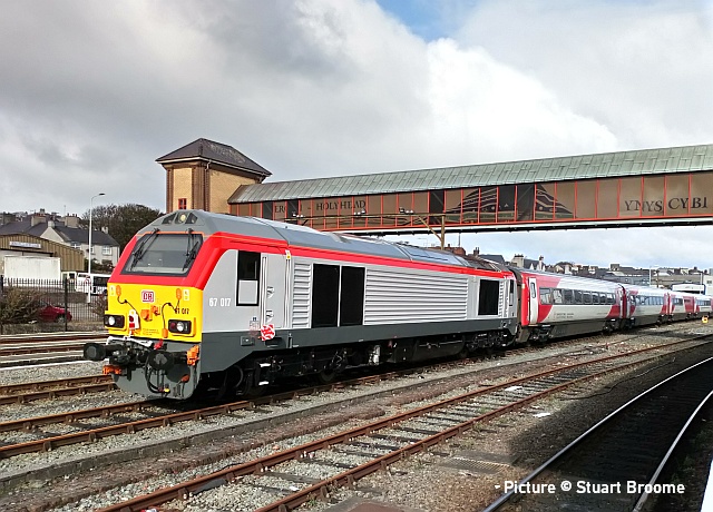 ![]() The new Measurement Train passing Dwygyfylchi, 8 October (Gary Thomas). Bangor is now a 'no-go' area, and there are discussions in progress regarding the best of Gwynedd and Anglesey, but here are some more pictures (new and old) for you - again, time and various technical issues have prevented us from including everything on-hand, but keep safe and keep sending! - Charlie Sun and Shade at Holyhead - pictures by Stuart Broome![]() Holyhead on 10 October, with 67 017 and its coaches patiently waiting for staff training. (We have recently updated our Class 67 page to cover recent developments. Comments welcome.) ![]() Driving Van Trailer 82226. ![]() This set is 'HD01'. This coach has lost its numbers, we believe it is 14254. ![]() Buffet/kitchen car 10325. Even when the coaches are numbered, the yellow on red is very hard to see. ![]() The paintwork on 67 017 has been done to a high standard. ![]() 158 839. ![]() The view from Platform 2. ![]() 11:30, and the 08:51 from Shrewsbury arrived in Platform 2 in the form of 158 822. This forms the 11:40 back to Shrewsbury. ![]() The water tower at Holyhead is an imposing structure, which doesn't seem to have seen much interest from historians. Climbing that ladder must have been a fearsome project! The small structure which stood on a frame at this end of the building has disappeared since Goodle's last visit in 2009. What did that hold? ![]() It would be interesting know what's inside - the windows seem to be bricked-up behind, were they always just decorative? A similar, but smaller, version at Settle has been converted to a house. RHTT scenes![]() Regular locos 56 029 and 56 113 caught at Dwygyfylchi in sunshine, Tuesday 13 October 2020... ![]() ... passing Gary Thomas's favourite viewpoint. ![]() Approaching Llandudno Junction, 13 October (Ryan Lloyd). ![]() How the locos get dirty! (Ryan Lloyd) From Dave Sallery's Archive![]() When in Chester-le-Street make sure you shop at Tesco! Notice that the stock transferred to Transport for Wales has retained the same livery layout, which was originated by the short-lived Virgin East Coast company. ![]() Pairs of Class 20 could be seen working the Llandudno - Derby train back in 1991. 20 104 and 20 190 passing Mostyn on 11 July of that year. ![]() Sunday morning in Holyhead before the introduction of the 'Very High Frequency' timetable on the West Coast Main Line 57 310, 57 315 and 57 316 outnumber the 158s. 2 July 2006. ![]() The Warrington Arpley freight, with 47 348, about to drop off some wagons for C. C. Crump's wagon repair works at Dentith's siding between Flint and Shotton, 19 August 1987. The Sleeper era - by 'Skimpler'![]() Remember when we had a sleeper service from Holyhead to London? It was a one-way service too. This Euston to Holyhead train in the evenings used to convey the empty sleeping car to Holyhead ready for the overnight run south. Here it is passing Llanfairfechan on a nice Summer evening, 3 July 1983. I seem to think it was through Bangor about 20:30 so shots of it down the "west-end" were only possible in the high Summer. Also, under the re-branding that came with sectoristation in 1986, Inter-City took on the horrendous black, white and Red stripe livery (personal opinion). The new livery had black ['executive dark grey' officially, around the windows so a sleeping coach did not stand out any more from any other whereas in the Blue and Grey, the smaller and fewer in numbers windows, made a sleeping coach stand out form the others. This house was in a cracking spot for a view but had been derelict for several years and was knocked down soon afterwards. Looking back: Welshpool and Llanfair, Part 3 - by David Pool![]() W&L No.14 (Sierra Leone Railway No.85) was at Llanfair Caereinion on 1 September 1996. This locomotive has appeared in a variety of liveries since its arrival in 1978. I think the lined livery suits this locomotive better than the rather drab single colours it first carried, even though it may be more difficult to apply and to keep clean. Note the 'Calling On' signal permitting the locomotive to pick up the coaches in the platform. ![]() No7 Chattenden is another locomotive acquired from a Royal Naval Armament Depot. It was built by Baguley in 1949 (to a Drewry design) for the Upnor and Lodge Hill Railway (previously called the Chattenden and Upnor Railway). When the railway closed, the Welshpool and Llanfair would have liked to purchase the Drewry (Yard No. 85), but it was retained by the RNAD to work at Plymouth and then at Broughton Moor in Cumbria, so Yard No.44 (the Planet diesel Upnor Castle) was obtained instead. Eventually No 85 became available, and arrived at the W&L in 1968, at which time Upnor Castle was sold to the Ffestiniog Railway and regauged. Chattenden was photographed on 28 August 2011 at Llanfair. ![]() A visitor to the W&L Gala on 5 September 2015 was this 0-4-4-0T Mallet locomotive from the Statfold Barn collection. Built by Orenstein & Koppel in 1905 for a sugar mill in Java, it became Pakis Baru No.5. The steam locomotives in the sugar industry were eventually retired, and several were purchased and brought back to the UK. Some were 2 foot gauge, but No.5 was 2 foot 6 inch gauge. Mark Hambly adds: No.5 is one of two ex-Pakis Baru locomotives in the Statfold collection, the other being No. 1, an O&K 0-4-0WT which generally ran with a small tender. These two locos were among the earlier restorations at Statfold and were the principal operational 2'6" gauge locos for the time the railway was dual gauge 2'0" and 2'6". Subsequent additions to the collection were predominently 2'0" and so about five years ago the main running line was made 2'0" only and the two ex-Pakis Baru locos were relegated to static exhibits. No.5 is now displayed conventionally at ground level in the main hall of Statfold's Roundhouse events venue while No.1 is elevated over the stage on the frames of a South African Railways 2'0" gauge bogie flat wagon! ![]() W&L