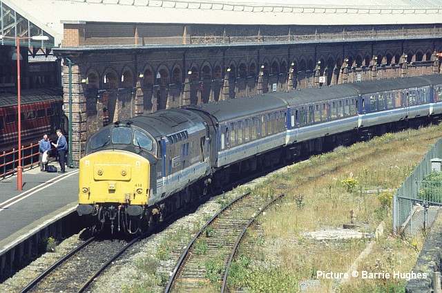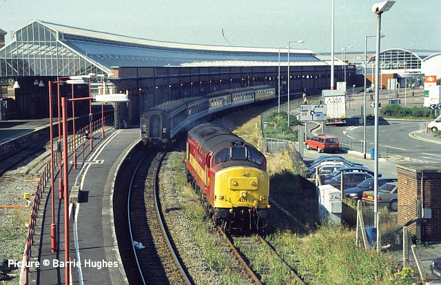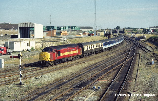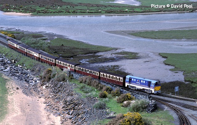 ![]() On 20 December 2005, 57 313 Tracy island passes Mostyn with the 10:03 Manchester - Holyhead. Contrary to appearance, this was an Arriva service, which continued until August 2006. Picture by Tim Rogers. From Dave Sallery's archive![]() HST leaving Chester for Euston, 20 May 1995 ![]() 60 095 Crib Gogh on the Hope St - Penmaenmawr empty RMC hoppers passing Prestatyn, 15 May 1992. Crib Goch (red ridge) is a frightening ridge in the Snowdon range. ![]() On 12 June 1987, 37 673 was captured passing Kinmel Bay on a test run from Crewe works to Llandudno and back, having been re-furbished and re-numbered from 37 132. The rake of withdrawn Mk1 carriages were kept at Crewe for the purpose. It worked for another two decades in this guise, being scrapped in May 2008. ![]() Brought back from South Wales service to cover for the problematic new Class 175 units, 37 401 Mary Queen of Scots is seen by the unusual signalbox/waiting room at Ty Croes working the 15:40 Holyhead - Crewe on 1 August 2000. Unfortunately, the loco was declared a failure at Llandudno Junction. Some hours later 37 426 was sent to take the train empty to Chester, while 37 884 worked the 17:19 Crewe to Holyhead starting from Chester. 27 July 1999 - by Barrie Hughes![]() On Tuesday 27 July 1999 I travelled behind 37 414 from Birmingham New Street (above) on the 10:07 to Holyhead. The loco was named Cathays C&W Works 1846-1993. It was one of the first 37s to receive the Regional Railways livery; the name was added when the livery was applied on 18 March 1993, to mark the formal closure of Cathays as a Class 5 Depot. ![]() After arrival at Holyhead (scheduled for 13:11) the long-established run-round procedure was followed; the shunter can be seen in the background at the levels of the 'ground frame; which controls the points. The disconnected track in the foreground reminds us that the lines here once continued to a goods warehouse on the quayside. 37 401 was passed at Prestatyn at 11:59 heading east on the 10:48 Holyhead - Birmingham, while 37 610/12 were at Valley coupling up to the Wylfa nuclear Flasks. ![]() In plaform 2, the 08:40 Virgin Trains train from London (due 12:56) led by 43 184 has arrived. 43 098 was on the other end, and would lead the 13:38 departure for London. Virgin at that period has two daily diagrams for HSTs and two for Class 47 locos. ![]() Back in Platform 3, 37 414 is coupled up and ready to depart at 13:54 for Birmingham; the train would take the route from Wolverhampton via Bescot to avoid a run-round move at Birmingham. After a period hauling the Rhymney locals early the next year, 37 414 was stored on 22 March 2000 and spent a period at the Weardale Railway from 27 October 2005. Going into preservation is no guarantee of an extended life as the loco was removed by road on 10 March 2009 and cut up three days later at Thomson’s scrapyard in Stockton. ![]() By this date the number of 37-hauled trains has been reduced from the heyday of the mid-90s, but three locos were still needed each weekday. 37 401 Mary Queen of Scots arrived at 17:30 with the 14:23 from Birmingham. ![]() Running round to form the 18:22 to Birmingham which I caught back to Birmingham passing 37 414 at Talacre westbound at 19:06. ![]() To regain the platform line, locos have to travel some distance to a point near the signalbox. ![]() Ready for departure: 37 401 can be seen with non standard large front numbers on one end, for some reasin. The loco later joined the DRS fleet; in recent years (2015-18) it saw passenger duties on the Cumbrian Coast. ![]() Judging my the shadows, the loco had suffered a mishap at some time. [On this day, 27 July 1999, your complier was celebrating his 50th birthday.] Looking back: Ffestiniog in the 1990s - by David Pool![]() When the Ffestiniog Railway preservation activities started in 1954, the Motor Rail Simplex Mary Ann was the only locomotive available. It had been built for use in the First World War in 1917, and acquired by Kent Construction of Ashford (see the NWCR News 30 November 2020), who sold it on to the Ffestiniog Railway, where it remained at closure. Although it was very useful in the early days of preservation, it was not suitable for the heavier trains, and saw little use in the 70s and 80s. In 1985 the Ffestiniog celebrated 30 years of preservation, and Mary Ann was overhauled for the occasion, recreating the first train to leave Porthmadog for Boston Lodge in 1955. The recently fitted cab roof had been removed for this event. ![]() On NewYear’s Day 1996 Sgt Murphy, a Kerr Stuart locomotive built in 1918, was soon to leave Boston Lodge for the Teifi Railway. Originally an 0-6-0T, it worked for the Admiralty at Beachley Dock, near Chepstow, then moved to Penrhyn Quarry in 1921. After a fatal accident in the Quarry in 1932, it was rebuilt and eventually withdrawn in 1955. It was rescued and later moved to the Cadeby Rectory railway in 1976, then to the Conwy Valley Museum at Betws y Coed in 1977. In 1992 it was again rebuilt, this time becoming an 0-6-2T, and arrived at the Ffestiniog Railway in 1993. ![]() The FR’s celebration of Hunslet locomotives in 1996 illustrated the considerable variation in the designs. On display at Porthmadog on 27 October were George Sholto, Lillian and Lilla, all of which operated at Penrhyn Quarry at some period in their careers. George Sholto was built in 1909 for the Penrhyn Quarry (although some sources quote 1904) and acquired by Alan Bloom in 1965, where it was restored and used on the Nursery Railway at Bressingham. At one stage it was renamed Bill Harvey after the Shedmaster at Norwich. The centre locomotive Lillian worked mostly at Port Penrhyn until 1955, and after restoration eventually arrived at the Launceston Steam Railway in 1983. The story of the third locomotive Lilla will be told later. ![]() Linda was one of the Penrhyn Quarry’s “Main Line” Hunslet locomotives before arriving at the Ffestiniog Railway. During the Hunslet