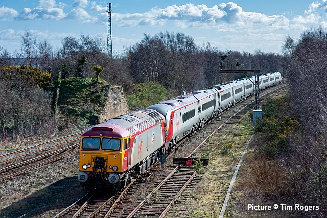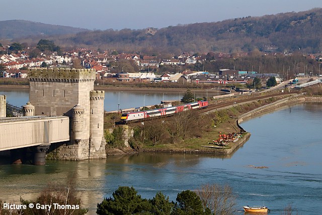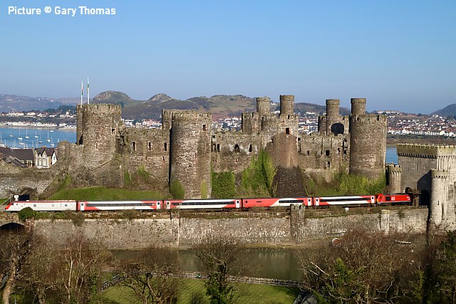 67 015 passing Conwy Castle on a training run, 2 March ...