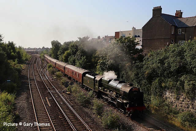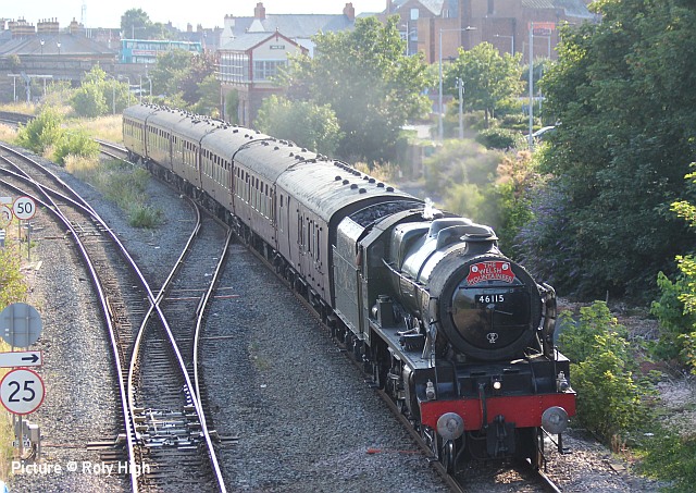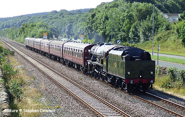 ![]() In 29-degree heat, Welsh Highland Railway 130 leaves Porthmadog, 20 July (PIcture by Jim Ikin). Welsh Mountaineer![]() Another steam special on the Coast line, on Tuesday 20 July, was the 'Welsh Mountaineer' from Preston to Blaenau Ffestiniog and back, which in normal times is run at least once per summer by the Railway Touring Company using West Coast Railways equipment. The traction this time was 46115 Scots Guardsman, owned by David Smith who owns West Coast Railways and its depot at Carnforth. Above, it is seen on the approach to Chester station at Chester East Junction (Bob Greenhalgh). After calling at the station it would see West Junction, North Junction and South Junction, in the course of turning the train so the loco would be tender-first to Llandudno Junction. The climb to Blaenau Ffestiniog is best acheved with the loco facing forward. ![]() Beeches Farm (Bob Greenhalgh). ![]() Ffynnongroew (Stephen Dennett). ![]() Arrived at Llandudno Junction and 46115 is about to run round to the other end of the train (Ryan Lloyd). ![]() Naplate detail: incuding the Prince of Wales's Feathers - three white ostrich feathers emerging from a gold coronet, with the motton 'Ich Dien' (Ryan Lloyd). This name is not a revival of a historic train name. ![]() Running round (Garry Stroud) ... ![]() ... via Platform 3 (Jim Ikin). ![]() Ready to depart for the Conwy Valley (Ryan Lloyd) ![]() Approaching Dolgarrog (Jim Ikin). ![]() North Llanrwst, where the special passed the Blaenau - Llandudno local (Jim Ikin). ![]() Crossing the Conwy river between Llanrwst and Betws-y-Coed (Garry Stroud). ![]() Roman Bridge (Jim Ikin). ![]() Arrival at Blaenau Ffestiniog (Ken Robinson). ![]() After running round, about to re-attach to the train. It seems that loco crews are chosen for their different heights allowing both to see the line ahead (!) ![]() Return train departs Llandudno Junction (Gary Thomas). ![]() Abergele (Jim Ikin). Built in 1927, the loco was taken out of service by British Railways in 1964, and became one of the leaders of the preservation movement. Unlike many steam locos running today, it was never in a scrapyard. ![]() Rhyl (Roly High). This special differs from most in its short length, just five passenger coaches plus a service vehicle. This is the result of experience: in the past, over-ambitious steam specials have been known to fail to master the gradient and curves, especially in the Pont-y-Pant area. As a result, the fares have to be relatively high. ![]() Beeches Farm (Stephen Dennett). Borderlands line half-hourly serviceTransport for Wales have been saying for some time that the 'new' Class 230 trains will be used to double the service frequency on the Wrexham - Bidston service. Their application to Network Rail for track access is now available online, to operate 2 trains per hour with the additional service each hour to have a 'skip-stop calling pattern' which should improve punctuality. The Sunday service would remain hourly. It's clear that the change will not be 'plain sailing'. Work will be needed at nine level crossings, and there are questions about paths for freight trains, including more planned cement trains to more destinations, and also there are 'concerns that Hanson Cement wish to run more but shorter trains, in order to cope with the climb out of the sidings onto the mainline.' TfW say that their timetable will be designed to be operated by 150 and 153 units if required, although the acceleration and braking performance is better than the older stock. 'While not a prerequisite for operating a 2tph service (because TfWRL proposes that the service be timed using Class 150 Sectional Running Times, so other trains can be used in the event of unavailability of a Class 230), the purchase represents a significant investment by Welsh Government, and these trains are ideally suited to a route with a lower linespeed and frequent station stops. TfWRL do not propose to deploy, and would have little use for these units, on other routes.'The last statement is rather odd, since when they ordered the trains it was stated that they would also be used on the Conwy Valley line and the Chester - Crewe service. Class 150 contrasts - pictures by Garry Stroud![]() 150 241 at Betws Y Coed with the 10:08 Llandudno to Blaenau Ffestiniog service. Monday 19 July 2021. ![]() 150 231 at Llanrwst with the 13:09 Llandudno to Blaenau service. Tuesday 20 July. Looking back: Bersham Colliery - by Trefor Thompson![]() An Up Motor Pacels Van passes Bersham Colliery, 12 February 1979. ![]() National Coal Board loco Hornet at Bersham Colliery, 3 April 1978. ![]() NCB Shakespeare at Bersham Colliery 10 May 1978. ![]() A Class 47 shunting empties into the colliery sidings 10 May 1978. ![]() Class 47 and Shakespeare at Bersham colliery 10 May 1978. ![]() Shakespeare at Bersham Colliery, 10 May 1978. 37 431 - pictures by Graham Breakwell![]() It was nice to see Ken Robinson’s shot of 37 431 in the last issue, taking me back to its large BR logo days, here are two images from that era. Above, 37 431 leading 37 430 onto Barmouth Bridge with the 15:30 Pwllheli to Euston on 6 Seprember 1986. The pair had worked the 11-coach 07:30 ex Euston from Shrewsbury that morning. ![]() 37 431 about to depart from Aberystwyth on 27 September 1986 with the 11:10 to Euston, having worked the Birmingham - Aberystwyth train from Shrewsbury that morning, a train of 10 Regional Railways coaches. Looking Back: Steam and Diesel 1989-90 - with David Pool![]() The Freightliner terminal at Holyhead was very busy in the early 1980s, but the trains had become less frequent by 1989. In the early afternoon of 22 August a “red stripe” Railfreight 47 227 was passing Ffynnongroyw, heading towards Holyhead with Mostyn Dock in the background. It possibly originated at Lawley Street, Birmingham. ![]() In 1989 there were regular North Wales Coast Expresses, steam hauled between Crewe and Holyhead. 35028 Clan Line was a frequent perf