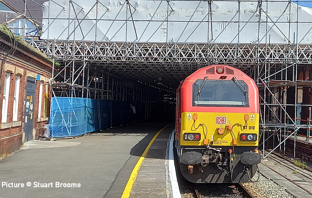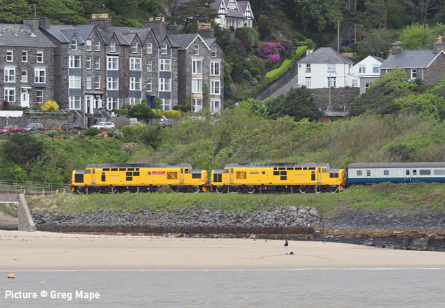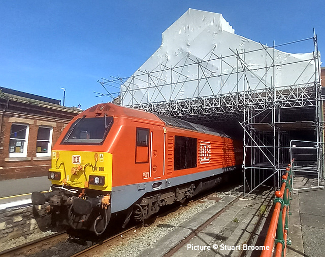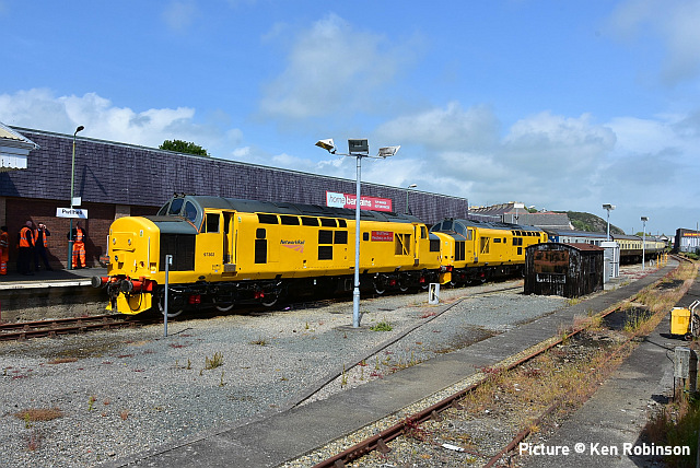![]() 67 010 awaiting departure at Holyhead, 13 May. Picture by Stuart Broome. Cambrian Coast Express![]() The Cambrian Coast line saw the first of several loco-hauled specials due to run this year (but don't hold your breath - the next one on Friday 20 May may be the last!) on Friday 13 May. This was Pathfinder's 'Cambrian Coast Express' from Oxford to Pwllheli and return, with the Shrewsbury-Pwllheli legs hauled by class 97s. 66 050 brought the service from Oxford, passengers alighting at Shrewsbury before the train proceeded to Coton Hill sidings where the 97s took over, the 66 spending the day in Abbey Foregate sidings. Graham Breakwell captured the train passing Meole Brace, south of Shrewsbury. 97 302 and 97 303 with the 10 coach train, the nine Mark 1s in chocolate and cream livery matching that of the original 'Cambrian Coast Express ' . ![]() Passing Morfa Mawddach station (Kate Jones). A relic of the former line to Dolgellau and Ruabon, now the Mawddach Trail, is visible; the station was originally known as Barmouth Junction. ![]() Passing the works compound for the refurbishment of the bridge. (Kate Jones). Kate notes: 'I have noticed that the engineers are looking closely at the metal part of the bridge these days, no doubt trying to sort out the logistics for its replacement this autumn; it will be very interesting!' ![]() Crossing Barmouth bridge (Greg Mape). ![]() Approaching Barmouth station (Greg Mape). ![]() Arriving at Minffordd, the second 'drop-off' stop on the journey - Barmouth and Porthmadog being the others (Ken Robinson). ![]() Soon after arrival at Pwllheli (Ken Robinson). ![]() Crossing Barmouth bridge on the return run (Kate Jones). Some thoughts on this operation, with help from Graham Breakwell. Readers might wonder why it was necessary for the 'Cambrian Coast Express' train to be shunted into the sidings at Shrewsbury, as Network Rail's regulations do not allow passengers to remain aboard in the in such circumstances. An hour was allowed for passengers to explore the delights of Shrewsbury, although this was not obvious in Pathfinder Tours' publicity. After all, until a few years ago through trains would simply have their loco uncoupled and a suitable one attached at the rear, since a reversal is always required for trains from the Birmingham direction. In steam days, the train from Paddington would perhaps arrive behind a 'Castle' 4-6-0 and depart behind a 'Manor', the heaviest class allowed on the Cambrian's infrastructure. The reason for this seems to be the increased frequency of service trains, with Aberystwyth now having an hourly service, complicated by problems of platform availability. Passengers wishing to travel on the 20 May train from Bristol Temple Meads to Pwllheli, joining at Bristol, will find they must present themselves at the station for 04:24, in order to arrive at Shrewsbury at 08:31 and finally depart for Pwllheli at 10:17. One might think it better to advertise the train as starting at Shrewsbury, passengers making their own way there. But perhaps that would not suit the 'Premier Dining' sector. Are we missing something here? The 'Auto-buffet'It was on the Cambrian Coast Express in 1962 that the BR Western Region, having defied the bosses in London by painting some coaches in Great Western chocolate and cream, experimented with refreshments by self-service vending machine. One coach (W25189) was fitted with such a machine, called it the 'Auto-buffet' and let loose on the Cambrian. It's not hard to see that such an idea would be problematic, and the coach was returned to a normal format. As far as we know the idea has not been tried again in the UK. Interestingly, the coach still exists, on the North Norfolk Railway, and there's a blog post with pictures. You could even buy cigarettes! News - and no newsAnother Aberystwth log train trial will take place this week, with the empties at 02:05 and arriving at Aberystwyth run round loop at 05:06, and departing loaded at 15:55 (Real Time Trains detail). The national timetable changed on 15 May; can someone giveis an idea what major changes there are? TfW has not undated its news page since January. To nobody's surprise, the good old Class 150s are still plying their trade on Wrexham - Bidston line, despite promises that the Class 230s would finally enter service. CorrectionsTwo points from the last issue: (a) the unit we called 230 004 was 230 006. 230 004 is a London Midland unit. (b) The K1 Garratt does not have overall gauging issues at Caernarfon, but we are told that it cannot arrive at the head of a train because of the shape of the platform at the station building end . It worked a number of trains out of there during the 2021 "Superpower" weekend. An image of it on a freight approaching Dinas is reproduced in our 11 October issue. Working the 'Bubble Car' - remembered by Andrew Royle![]() I was interested to see David Pool's picture of 960 011 (last issue). I worked on this 'bubble car' for two years (from 2000 to 2002) and spent much of my time sat in the front seat beside the driver, making sure we went where we were supposed to go and keeping the windows spotlessly clean. It was a joint venture between Railtrack, Balfour Beatty and Omnicom Engineering with the aim of creating a complete video record of the national network; we got close but never quite managed to record each running line of every route! Sidings and platform lines were just a bonus. Cameras were positioned inside the cabs (behind the central window) to record straight ahead and cess views, with the three outside to record the 'four foot' and both railheads. The spot lamps created consistent lighting for the track images (regardless of the weather) whereas the cameras inside needed some manual adjustment by the crew when ambient light was poor. A further camera recorded a sideways view from behind the driver's position. A bank of VCRs recorded the video onto high definition cassette tapes. We got through hundreds 