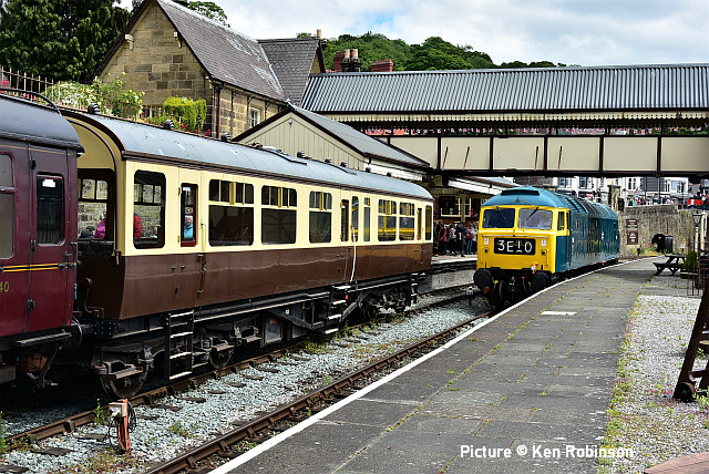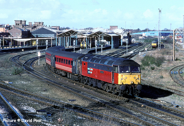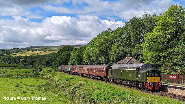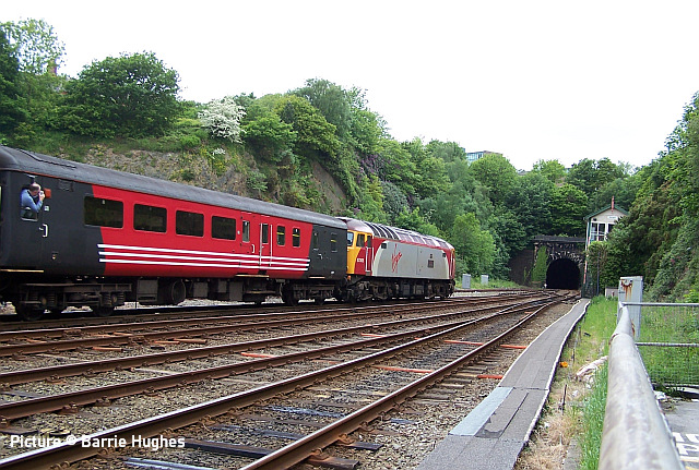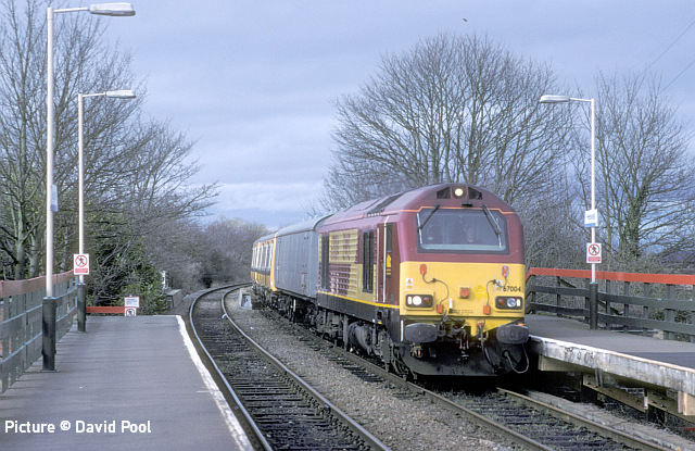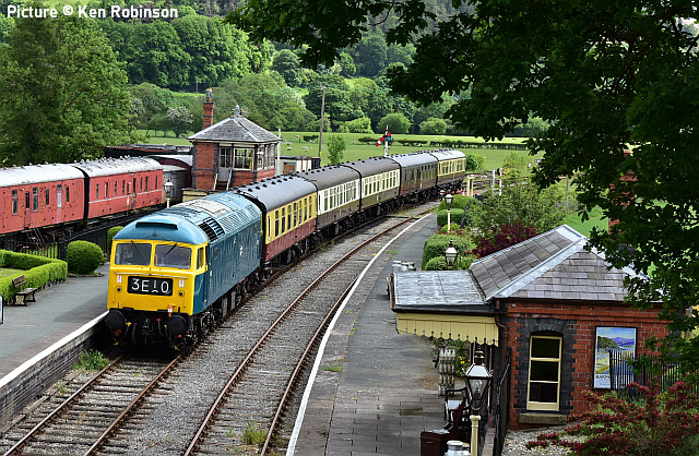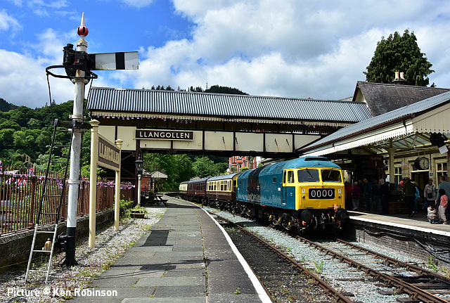 ![]() D345 (40 145) passes Irwell Vale on the East Lancashire Railway, showing a North Wales destination headcode. Picture by Gary Thomas. Don't miss our 27 May extra issue From the hills, 28 May - pictures by Greg Mape![]() A picture from the hills above Llanddulas with 158 833 on a Holyhead - Birmingham International service crossing Llanddulas Viaduct. ![]() 175 107 heading for Manchester Airport from Llandudno, approaching Abergele. ![]() Approaching Abergele station. Pictures taken from Lady Emily's Tower, a high point on the Gwrych estate, built for Lloyd Hesketh Bamford-Hesketh, for his wife Lady Emily. ![]() Pictures taken with a 100-400mm Camera lens with 1.4 times adaptor giving up to 560mm. View a larger version of this scene. Llangollen Brush - by Ken Robinson![]() I went to the Llangollen Railway on 28 May as the class 47, 1566, was in action. Volunteers had spent days preparing the engine and it looked very smart and clean. Above, 1566 entering Carrog with the first train of the day - the 11:00 from Llangollen. ![]() After arrival at Llangollen. ![]() 1566 running round its train at Llangollen. On the left, Inspection Saloon 80975 can be seen. This was built at the Great Western Railway workshop at Swindon in 1948. Withdrawn from main line service in 1993, 80975 passed into preservation, and was based at several sites before being privately purchased in 2009. 80975 came to be based at The Llangollen Railway, and is yet to be fully restored, but is being used to complement the existing coaching stock, and, for a small extra charge, passengers may travel in the saloon - a wonderful experience indeed! Freight notes Jim Scott writes, regarding the first of the Aberystwyth log train trials, trains from the Shrewsbury direction cannot reverse at Wrexham as we suggested in the last issue, as the loop line is on the opposite side of the main line, and there is no crossover to allow a run-round movement. It's likely that like the trains from Baglan Bay, it continued to Chester to reverse. Also, Jim confirms that the Margam to Dee Marsh steel flow has definitely transferred from DB cargo to GBRf. Two Memories of 2006 - by Barrie Hughes![]() 57 305 John Tracy Departs from Bangor with the on the 10:03 Manchester - Holyhead departing Bangor at 12:18 on 30 May 2006, seen from Bangor station car park. The loco had previously been named Alan Tracy for a few years until the name was changed on 28 February 2003 (why?). The loco works today for Rail Operations Group and carries the name Northern Princess since 13 October 2014. ![]() On the same day Welsh Highland Railway Garratt No.138 waits to depart Caernarfon with the short lived apple green livery sponsored by Edison and the Millennium nameplate. (The Garratts no longer carry nameplates). Also in this view the short lived ex-SAR B wagon converted to bicycle wagon which could also carry suitcases, pushchairs etc. They were little used and have now been converted to coal/pw wagons. The train is the 13:50 to Rhyd Ddu, the limit of operations at the time. So many things have changed on the WHR since this view with short trains with heritage coaches like the original No. 23 WHR coach and the experiment with ex SAR B wagons . The WHR today All trains are named for the convenience of booking. The 'Gelert Explorer' runs once a day (except Saturdays) from Caernarfon/Waunfawr and meets the 'Glaslyn Venturer' which runs once a day (or twice a day according to demand) at Beddgelert. Both trains allow over 90 minutes to explore Beddgelert before returning. On Saturdays both trains run through, with the 'Snowdonia Star' running from Caernarfon / Waunfawr to Porthmadog and The Harbourmaster running from Porthmadog / Beddgelert / Meillionen to Caernarfon giving at least 2 hours at the destinations. The through trains also run some Fridays in the peak periods. Society members can use the intermediate halts subject to room being available. Assortment![]() 66 594 at Kemps Eye, Shrewsbury on 23 May with the 12:30 from Port Talbot Grange Sidings, a lengthy train of aggregate heading for Crewe Basford Hall via Shrewsbury’s Abbey Foregate triangle and Stafford (Graham Breakwell). ![]() A full house at Coleham depot on 24 May. All three active 97/3s stabled, while 175 112 approaches with 1V44 the 13:31 from Manchester Piccadilly to Tenby ... ![]() ... plus 57 313 and 37 706. ![]() John Oates writes: 'At Hereford, 67 008 arrived light engine as 0T08 from Cardiff Canton heading to Crewe CS. The relief train crew, all four of them were waiting on the platform as it entered the middle road. It appears to have had a repaint (except for its roof). 'Great Western 800 019 left first at 13:18 from platform 3 on 1P04 to Paddington; I’d arrived on this from Worcestershire Parkway. Those “ironing board” seats are awful – I take a cushion with me. Internally the seat reservation system wasn’t working and an engineer was travelling with us using his laptop to diagnose the problem.' ![]() Amid the Greenery, 67 014 departs Llandudno Junction with the 16:36 Holyhead - Cardiff on 30 May. From Dave Sallery's archive![]() 37 238 in Llandudno Junction yard, 13 February 1992. The loco was on test from Crewe Works. ![]() 47 199 on a down Freightliner passing Prestatyn on 7 August 1984. ![]() 37 885, in the then-new Railfreight returning to Crewe and passing Abergele on 14 October 1988. The loco is on test and the train is formed mainly of the under-used Mark 2C vehicles. Looking back: Electrics and Diesels 2004 part 2 - by David Pool![]() In the late morning of 23 February 2004, 66 115 was leaving Chester on the Warrington line with a loaded log train. There used to be an empty log train from Chirk to Arpley in the afternoons, but I can’t work out why there should be loaded logs going to Arpley, unless of course there had been a problem at Chirk. Does anyone have an explanation? ![]() On 26 February 2004 Merseyrail 507 021 is approaching Chester at Chester North Junction