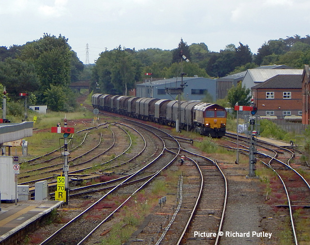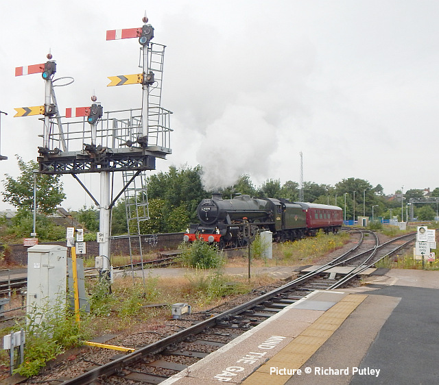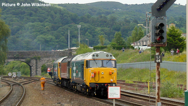 ![]() Locked gates and two strike bound 158s at Pwllheli on Thursday, 23 June (Eryl Crump). All quiet on the Coast![]() Gary Thomas writes: 'The strike by Network Rail had a massive impact on the coast line on the week beginning 20 June. On the days between the strike days services were also disrupted, with late starts and cancellations. On the evening before the first strike a signaller in Anglesey area called in sick resulting in premature cancellations. We really have had it bad. 'Above is the only photo I took in the week, an unusual combination of 150 256 and a Class 175 at rest at Llandudno Junction (not coupled together) on the first strike day on Tuesday 28 June 2022.' ![]() With most services running late on Wednesday 22 June after the day's strike on Tuesday, the Blaenau branch was no exception. 150 231 is seen entering Betws-y-Coed at 11:34 ( 34 minutes late) with the 10:34 Llandudno Junction to Blaenau Ffestiniog service as it makes its way down the branch. Picture by Garry Stroud - a sort of Little and Large image with the Conwy Valley Railway Museum diesel in view also. ![]() All quiet at Pwllheli: 158 833 and another (possibly 158 819) wait on 23 June to work early services on the 24th. Seen on 24 June - by Tim Rogers![]() 67 015 near with Abergele with 1V96 11:33 Holyhead to Cardiff Central ... ![]() ... Driving Trailer 82229 on the rear. ![]() Also near Abergele, 175 106 on 1D35 10:35 Manchester Airport to Llandudno. ![]() 175 111 crosses Conwy Cob with 1H89 13:07 Holyhead to Manchester Airport, ![]() 158 820 and 158 827 are 1D13 11:06 Birmingham International to Holyhead. Steam DreamsDavid Buck’s LNER B1 loco 61306 Mayflower and the 'Steam Dreams' charter operation, mainly operating in the South of England, have been added to the folio of Jeremy Hosking's Locomotive Services Group, to sit alongside its other brands – Saphos Trains, Midland Pullman, Statesman Rail and Intercity. 61306 will join the Locomotive Services Group fleet. The 2022 Steam Dreams programme remains the same, as do the staff operating the trains. One change is that trains will be of air-conditioned coaches. We hear that a 10% discount is being offered to passengers who had booked on the understanding that there would be opening windows. The stock previously used has been returned to store at Carnforth. Tuebrook sidings - report by Andrew EllisThe article on the new freight train from Penmaenmawr to Tuebrook sidings caught my eye as I travel daily into Liverpool city centre, to reach the construction site I run there. I have taken pictures of both the trains at the unloading area and also the unloading area itself, its been a little bit of a challenge given the time of day and the weather conditions. The fact that the sidings are also used for storing the Drax biomass trains when they are not in use does not help getting good pictures. ![]() Above, the unloading area, the bins store single sized stone used in the laying of underground drainage pipes and the wagon is on the ground used to store stone classified as Type 1 sub-base (or MOT type 1) ![]() Another angle with a train sitting in the unloading siding with the high reach excavator parked up in one of the stone bins ![]() 60 026 marshalled at the front of the wagons ready for the next run out to collect more aggregates. ![]() ae220517 shows the main type 1 sub-base stone pile after a recent delivery of more type 1 sub-base ![]() 60 021 sitting in the siding area awaiting its next duty. The class 60 locos are also used on the Drax trains, with one HS2-liveried class 66 also doing its share, they are very long trains. The stone trains heading for Penmaenmawr have to run via Earlestown and Warrington as they cannot access the line running through to Runcorn and the Halton curve. The stone is loaded onto the delivery wagons using a large wheeled loader, the site also has staff accommodation and a weighbridge. The sidings' previous use was for running around the coal trains from the docks to Fiddlers Ferry power station, its now closed; the coal came from Columbia (I worked on an extension to the storage area a good while ago). The two class 50s in 2004 explained![]() Deferred from the last issue is the feedback from the arrival in North Wales on 25 July 2004 of a pair of Class 50 locos. When photographed by David Pool and mentioned in the last issue were on their way to Llandudno Junction. The pair of 50s, were 'proving runs' of their their TPWS, Train Protection & Warning System, installation which used 'grids' between the rails to send an electric message to a train approaching a signal at the speed allowed, and apply the brakes should the train pass the signal. It had been decreed that privately-owned and preserved locos must be fitted with the equipment if they were to be used on the main line. ![]() When they arrived at Llandudno Junction, they were signalled down the Quay Sidings. to set back into the down siding where 50 049 was un-hooked and went into Llandudno, and then Bangor. It returned to Junction Yard to pick up EWS loco 47 750 Atlas that had been languishing in the yard since it failed on one of Virgin's loco-hauled services a few weeks earlier. The HSTs previously used had gone off-lease that Spring, replaced by some not so healthy Class 47 'Duffs' which had a tendency to unreliability. One observer of the period recalls that one week saw three failures. 47 750 never worked again and went for scrap in May 2008. ![]() Video producer John Wilkinson , who has kindly sent the three pictures here, recalls: 'By a shear fluke I was filming at Llandudno Junction that day. They arrived at 12:37 and went into the yard at 12:45 where failed 47 750 was parked. 50 049 was filmed at Deganwy heading for Llandudno at 13:05. 50 031 and 50 049 top and tailed 47 750 in the yard and left Llandudno Junction at 15:25. I then filmed them going through Helsby at 16.28, destination Warrington Arpley [probably en route to the Component Recovery operation 
