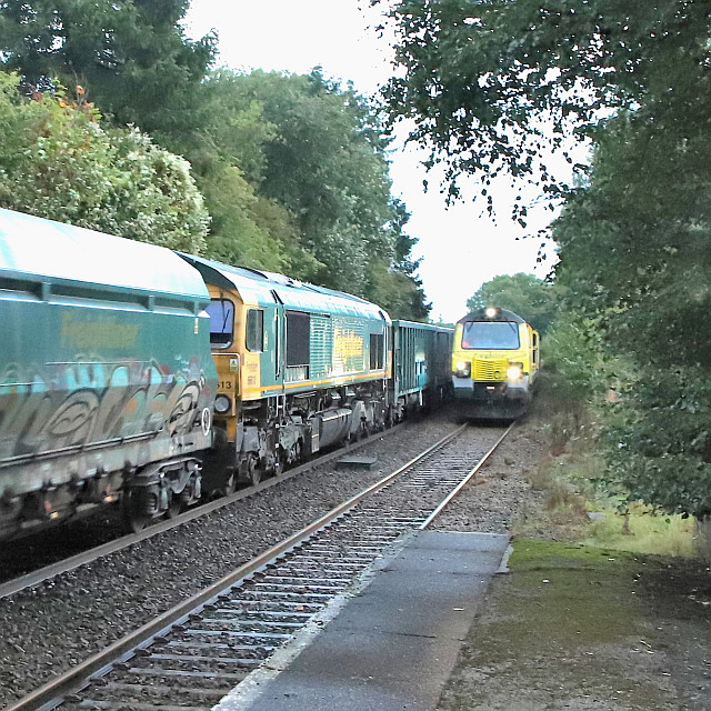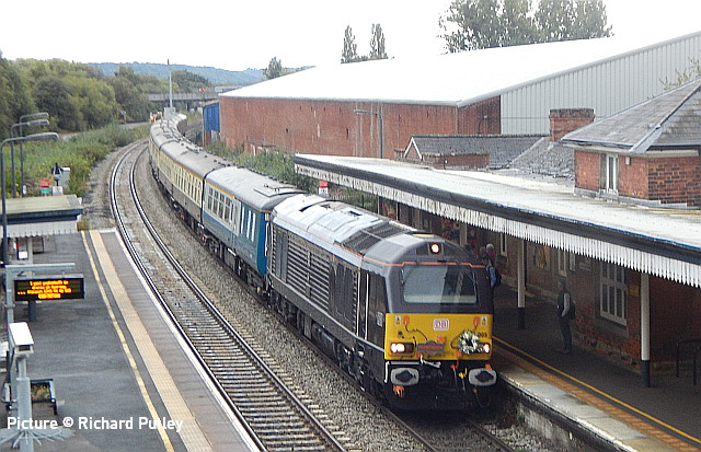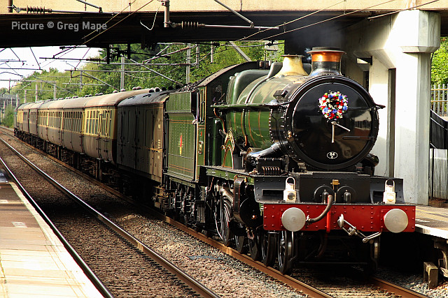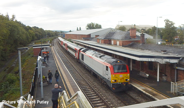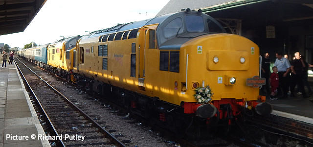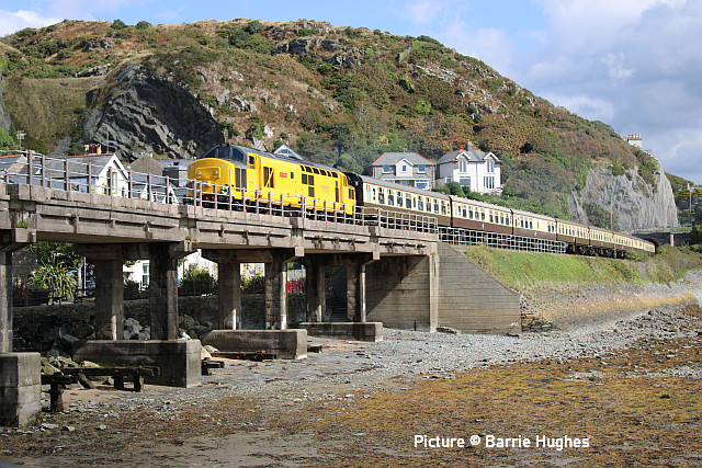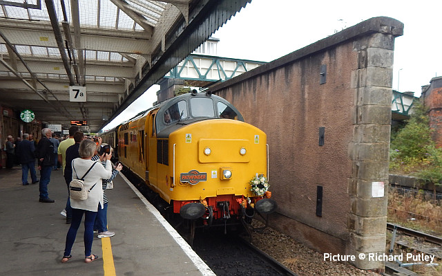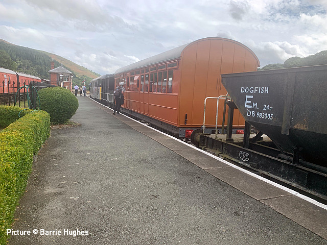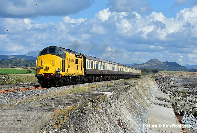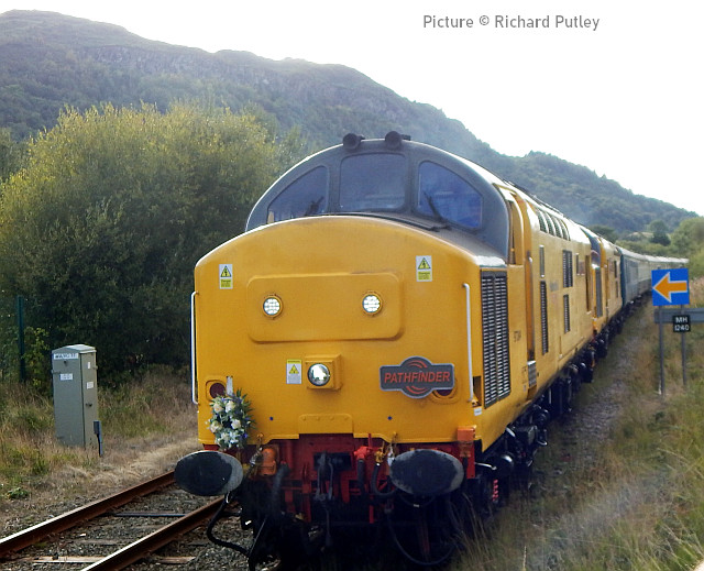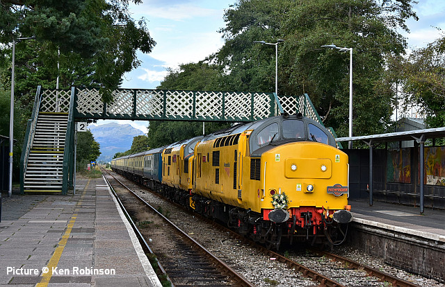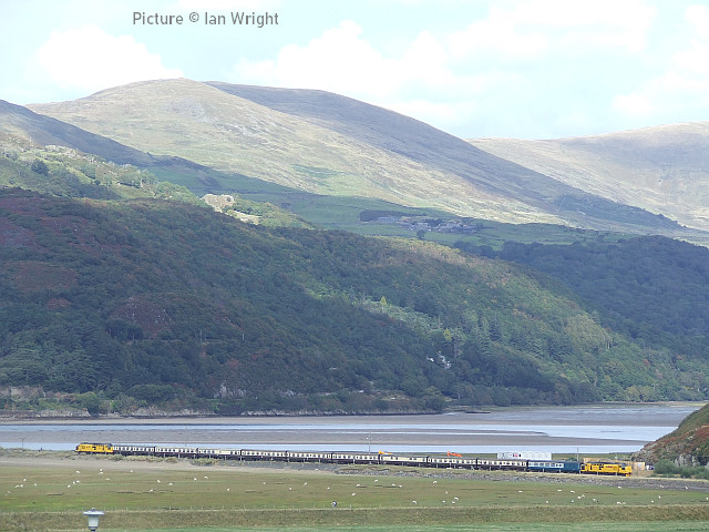 ![]() Her Majesty the Queen and the Duke of Edinburgh with the Royal Train at Llandudno, 27 April 2010. Picture by Stéphanie Durrant. Note: the next update will be on the evening of Tuesday 20 September. Pathfinder on the CambrianRichard Putley travelled on the Pathfinder Tours Cardiff - Pwllheli railtour to on 9 September. This is his report, followed by a selection of images by lineside contributors. ![]() With the sad news the previous day of the death of HM Queen Elizabeth II, like most people, I was in a sombre mood as the day dawned. Having driven to Leominster to join this tour, I got there in time to see 67 025 head North with the 06:45 Cardiff to Holyhead service. ![]() The tour arrived on time at 08:37, also hauled by a 67, in this case 67 005 Queen's Messenger, one of the two designated Royal Train locos. It was carrying a wreath in remembrance of Her Majesty. ![]() 67 005 hauled the tour as far as Shrewsbury, where I photographed it in platform 3. We had to all get off while it took the stock to Coton Hill Yard. ![]() About 45 minutes later 97 304 John Tiley brought the stock into Platform 7, with sister loco 97 302 on the back. ![]() Once I rejoined the train, I noticed Freightliner 66594 hauling brand new TfW DMU 197 007 through on the adjacent Up Main Line, as usualt sandwiched by redundant hopper wagons for braking purporses I believe this was 6Q96 Crewe Basford Hall to Donnington (Salop). Quite a day for unusual trains as we had also passed at Colas HST at Church Stretton. ![]() So we set off for Pwllheli. We were able to photograph the tour at Machynlleth (above). ![]() I chose to get off at Porthmadog and photographed 97 302 on the back there. ![]() On the return leg, the two 97/3s were both on the front, with 97 304 leading; we were able to photograph them at Barmouth. After departing from there, the train came to halt on the middle of Barmouth Bridge. We then observed a minute's silence in memory of HM Elizabeth II. I think this is the only time I've been on a train which stopped in the middle of Barmouth Bridge. Peter Watts, founder of Pathfinder Tours, also paid tribute to the Cambrian Coast Line Action Group. Back in the early 1970s they successfully campaigned against the planned closure of the Cambrian. They ran a special in November 1972 to take people to a demonstration in London against the proposed closure. (In the infamous 1968 BR Network for Development, the Cambrian Coast line was one of the 10% of the Network shown in grey, which meant its future was "under review". The bulk of the Network was shown in black, indicating its future was secure. Of the other grey lines, those north of Inverness and Mallaig to Fort William are still with us but the lines to Minehead, Ilfracombe and Swanage all closed in the 1970s. ) After a largely uneventful run back to Shrewsbury - the 97/3s made light work of the climb to Talerdigg Summit - 67 020 took over for the rest of the run back to Cardiff. So ended an enjoyable day. I gather thanks are due to Transport for Wales for cancelling the 10:29 Shrewsbury - Aberystwyth services and providing a bus for its passengers so we could run in its path in the morning. [The bus arrived at Aberystwyth a few minutes before the 11:21 train departure from Shrewsbury]. Lineside views![]() Meole Brace, approaching Shrewsbury (Graham Breakwell). ![]() Passing Meole Village after reversal and loco change at Shrewsbury (Graham Breakwell). ![]() Appraching Barmouth Bridge (Ian Wright). ![]() Barmouth bridge (Kate Jones). ![]() Barmouth Harbour, 15 minutes late (Barrie Hughes). ![]() Afon Wen, approaching journey's end (Ken Robinson). ![]() On the return at Harlech, bang on time (Ken Robinson). Departure from Pwllheli was at 16:23, arrival at Cardiff Central nine minutes late at 00:40. Seen at Beeches Farm, 9 September- by Stephen Dennett![]() 37 884 Cepheus comes past Beeches Farm with OB23, another light engine run from Holyhead to Crewe South Yard. Cepheus is a constellation in the far northern sky. ![]() 158 837 with IV98 Holyhead to Cardiff Central: 2 car 158 on a journey of almost five hours. [We hear that one of the loaned Northern Class 150s, with 3+2 seating, was used on one of these jouneys recently.] ![]() The now usual combo of shabby HSTs on the Crewe-Derby test train. 43 290 leads 1Q21, the Network Rail test train, past Beeches Farm. The “Beluga” took off into a clear blue sky just as I arrived, which was an added bonus. Snowdon Mountain difficulties![]() It has been reported in the Railway Magazine and other publications that the Battery/Diesel hybrid locomotives (with added 'passenger pods') bought for this line and numbered 14 and 15 will not now be "put into service" according to the railway's spokesperson. One report suggests they have gone back to the manufacturers, Clayton Equipment. David Pool's picture shows no. 15 at Llanberis in September 2020, yet to receive the name Moel Eilio. Considering the very enthusiastic reports given by the SMR when they arrived in July 2020 regarding their efficiency, and the £1.1 million cost involved, there must be good reason why this situation has arisen. No doubt we shall get the story eventually, but SMR seem to be reluctant to say anything more. It was claimed that the charging of the batteries on the downhill run would potentially railway's carbon emissions by up to 98% compared to the railway's existing diesel locos. One rumour suggests this is not working as expected. For more about the railway and a picture of no. 15 Glaslyn, see our 28 September 2020 issue. Does anyone know whether they ever entered passenger service? Steam Scene![]() 46115 Scots Guardsman passes the rural station of Strines on a Liverpool - Scarborough excursion on 10 September (Greg Mape) ![]() Scots Guardsman receives attention from the Loco Crew after arriving at Scarborough with the Railway Touring Company's 'Coast to Coast Express' from Liverpool Lime Street via Manchester Victoria, Sheffield and Yor