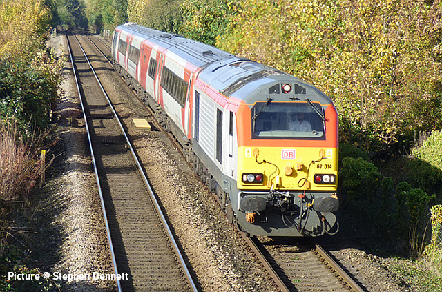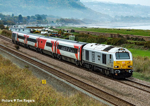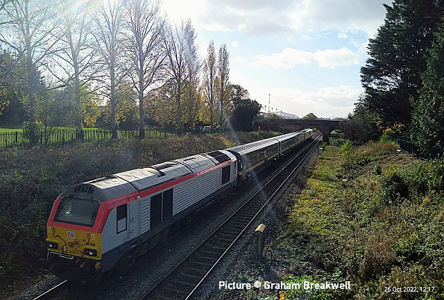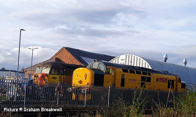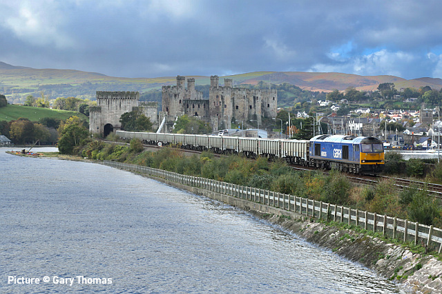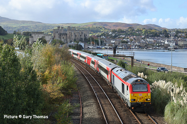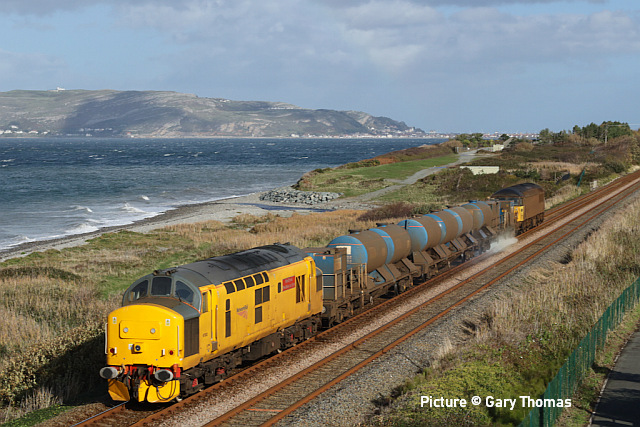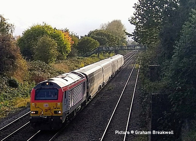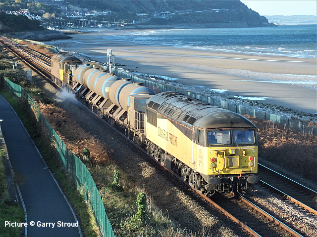 ![]() 67 029 Royal Diamond on train 1V96 11:33 Holyhead to Cardiff Central passing Abergele, 20 October. Picture by Tim Rogers. 26 October events![]() 60 026 Helvellyn crossing Conwy Cob with the Penmaenmawr to Tuebrook stone (Gary Thomas) ![]() Flint (Stephen Dennett) ![]() Passing Beeches farm in beautiful sunshine (Bob Greenhalgh). ![]() 67 014 passing the new "forest" on approach to Llandudno Junction with the mid-day Holyhead to Cardiff Central (Gary Thomas) ![]() Flint (Stephen Dennett). ![]() 97 302 making an usual appearance on the rear of the return RHTT with 56 049 leading at Dwygyfylchi (Gary Thomas). Class 230![]() 230 009 approaching Hope with a Bidston to Wrexham General proving run. Picture by Gary Thomas who notes: 'If I were a passenger I would be slightly annoyed though, as timetabled trains had been cancelled around this movement!' The subject of the 230s raises its head again in the current Modern Railways magazine. TfW are determined to run a two-trains per hour service on the Borderlands line, suggesting that the 230s were bought specially for this line, and cannot be used elsewhere. Did they not suggest that they could also work the Chester - Crewe line and the Conwy Valley? Of course this idea faded away when Birkenhead North depot was chosen as their base and the idea of increasing the Borderlands service was mooted. It does appear that they will enter service soon, with one 230 sharing the diagram with one Class 197. Network Rail continues to insist that a half-hourly service is not practical, with additional cement trains from Penyffordd on the cards. The situation is not helped by the fact that the cement trains have to travel to Dee Marsh Junction for the loco to run round. There is also concern about congestion at Bidston station, where the Borderlands trains terminate in a platform used by the four trains per hour Merseyrail service to West Kirby. The debate continues. An icon restored![]() It's good to see that the replica sign on the wall of Chester station, made many years ago by the artisans of Chester wagon repair works, and replaced some years ago by a replica, is being kept in good condition, which is more than you can say about te surrounding brickwork. Shrewsbury scenes - by Graham Breakwell![]() The TFW training run with ex-Grand Central Mk4s and a DVT from Crewe to Hereford via Chester and back. This is the 13:54 returning from Hereford on 25 October past Belle Vue, Shrewsbury with 67 025 up front ... ![]() ... and 82227 on the rear. ![]() Also on 25 October Colas Rail 56 105 is seen leading the RHTT into the Sutton Bridge head shunt neck for 56 049 Robin of Templecombe to take the rake into the Coleham depot at the end of another circuit.... ![]() ......where 56 105 gets a quick wash and brush up of the front end while 97 302 has its sandboxes refilled. ![]() The same consist on 27 October near Shrewsbury Golf Course. Black trainsFollowing on from the item in the last issue, we understand that Class 67 repaints from now on will be 'TfW black'. The decision appears to have been made at TfW HQ that the existing coaching sets will be painted black to match the Grand Central coaches they've acquired, as those have been heavily overhauled in a black livery (interiors also). A stripe will go down the side, presumably as Grand Central had theirs, but red. A return of the LNWR pre-1923 'blackberry black' perhaps? Surely the locos at least should display some colour? There's no real reason why they should be the same colour as the coaches. Francis Bourgeois: celebrity trainspotter Readers may have heard of the fellow who goes by the name Francis Bourgeois, and has somehow made a career out of his enthusiasm for trains expressed on social media such as Tik Tok, while mingling with other celebrities. He has now written a book, which has caught the attention of Guardian readers with an interview in a recent issue. Amongst this adventure into his happy world, we are pleased to see that he is a Class 37 fan, and his favourite loco is 37 418. And he was born just as the 37 era in North Wales was ending. 28 October scenes![]() By 28 October, with 56 105 was taken off the RHTT service and a second appearance by 97 302, 56 094 was the replacement. Here it is seen approaching Penmaenmawr, on its outward run to Holyhead. 56 094 is at the rear of the service looking rather clean compared to 56 049 at the front which has worked the service since it started (Garry Stroud). ![]() Approaching Abergele (Greg Mape). ![]() 60 096 Impetus (formerly named Ben Macdui) worked the Penmaenmawr stone service, seen in the yard during loading and forming ... ![]() ... the 6D90 11:56 return departure to Hunslet Tilcon (Garry Stroud). ![]() A test run of three 2-car Class 197s (197 018, 197 015, 197 009) in the late afternoon seen at Llandudno Junction working from Chester to Llandudno Junction and back to Crewe. In the distance, a Holyhead - Birmingham service with 158 820 (Greg Mape). ![]() The threesome passes Beeches Farm (Stephen Dennett). ![]() 150 278 was in charge of normally loco-hauled 1V96 as far as Chester, where 67 013 and set HD01 took over, much to the relief of any long distance travellers I’m sure! (Stephen Dennett). ![]() 175 114 comes past Beeches Farm with 1H87, the Llandudno to Manchester Airport service (Stephen Dennett). Birkenhead Dock lines - report by Oliver Hambly![]() The end of an era for the Dock lines in Birkenhead, as with track clearance prior to lifting was in progress on 28 October. ![]() Here are a few pictures of the initial track clearance speaking to the contractors on site they indicated that the track and rail lifting will talk place the first week of November. ![]() This phase one will see a tree lined walkway and cycle path on the Beaufort Road; phase two will then see the clearance of the trackback up Corporation Road to Duke Street. From Dave Sallery's archive![]() 37 710 stabled in Rhyl on 8 March 2001 ![]() 37 066 approaches Prestatyn 