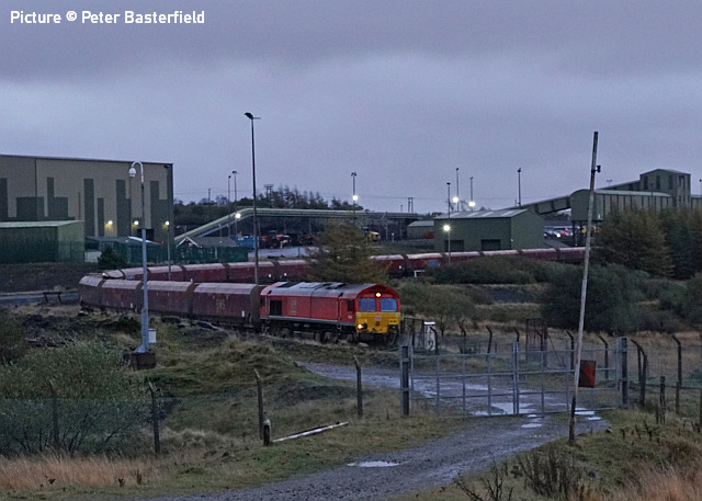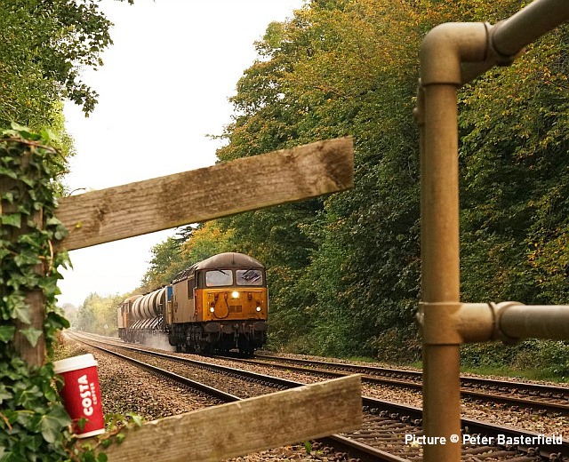 with the 6D41 flask train passing behind 37 606 and 37 610.