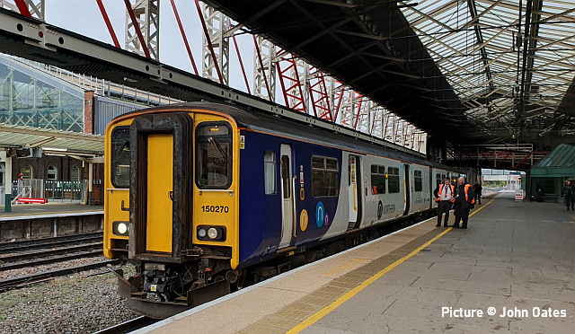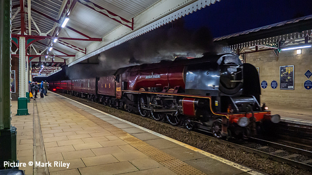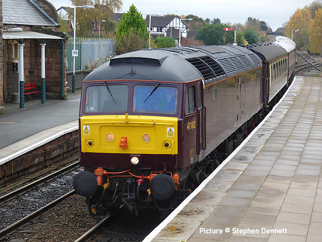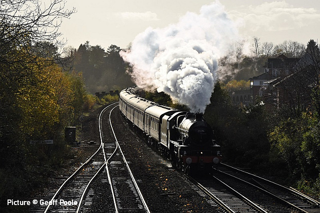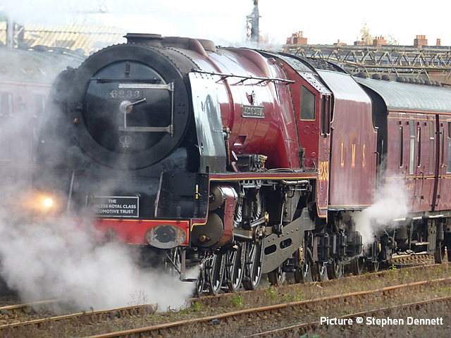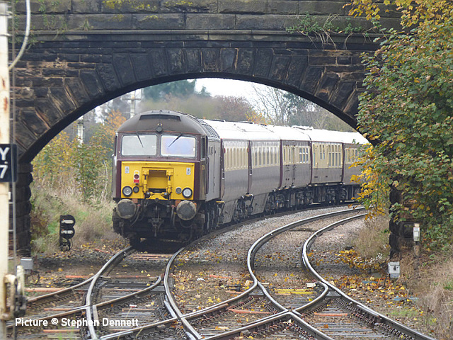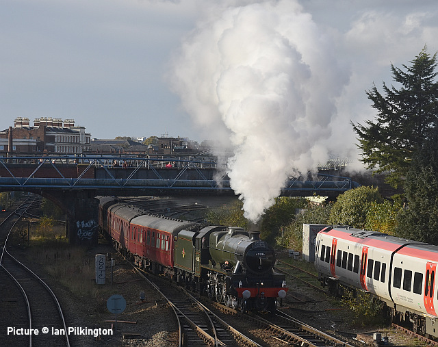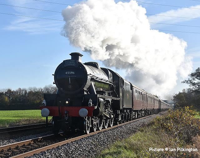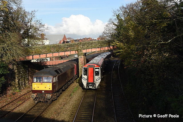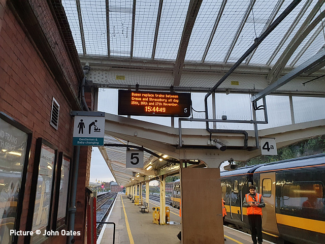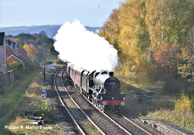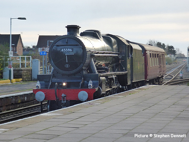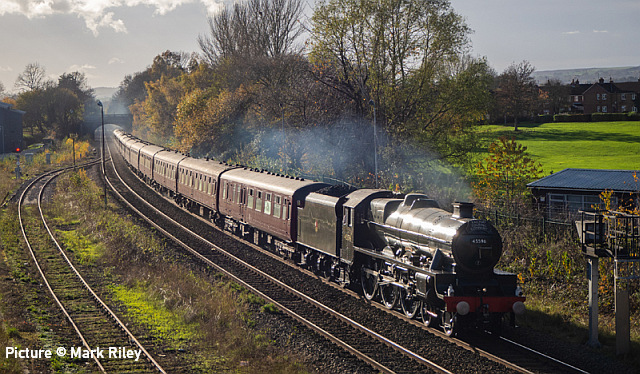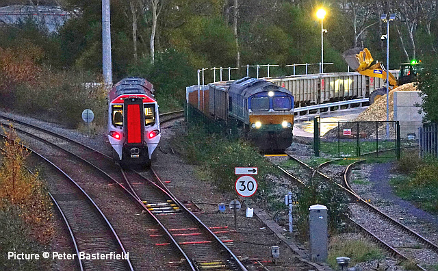 ![]() 45596 Bahamas seen passing Coleg Cambria on the outskirts of Wrexham, working from Bristol Temple Meads: picture by Mark Riley. More below! 153s on the Conwy Valley - report by Ken Robinson![]() Its good to see the new 197 units on Conwy Valley services, and, with this in mind I set off for Blaenau Ffestiniog on a sunny Saturday 19 November, only to find on Real Time Trains, just beforehand, that the services that day were being provided by 2 x 153 units! However, I had an appointment at Betws Y Coed, so a quick visit to Blaenau Ffestiniog station 'en route' was made to photograph the 153s: Above, 153 318, with 153 914 behind, enter Blaenau Ffestinog station with the 10:20 from Llandudno. ![]() 153 914, with 153 318, depart with the slightly late running 11:35 to Llandudno. How rare is this type of working on the branch one wonders i.e. two 153 units? Peter Basterfield's week![]() 97 304 at Ty Croes, 14 November. ![]() 66 711 Sence loading the 6Z59 for Bescot Downside,as 197 004 leaves for Blaenau on the first day of service. ![]() Llandygai Tunnel approach with 56 049 and Autumn Leaves! ![]() A trip down to Tywyn on 17 November for the work relaying the loops. 97 304 up front ... ![]() ... and 97 302 sporting old number and 'CF' shed code in the grime! Seen at Helsby on 16 November - by Stephen Dennett![]() 47 812 leads the Northern Belle "Manchester Christmas Markets" excursion from Cardiff Central to Manchester Victoria through Helsby on 16 November... ![]() ... 57 314 "Conwy Castle" at the rear. ![]() 66 059 runs into Helsby station from the Ellesmere Port branch with 6F91 Ince and Elton Encirc Works to Arpley Sidings loaded sand. ![]() 66 706 Nene Valley with 6F22 Penmaenmawr Quarry to Tuebrook Sidings loaded stone. ![]() TfW 153 323 at the rear of 1B12 Chester to Liverpool Lime Street as it leaves Helsby. ![]() 153 921 was at the front. A good name for the Chester - Liverpool Lime Street, via the Halton Curve, would be “Sprinter-City”, as it’s usually 153s on duty. ![]() 175 108 and 175 006 forming a five-car set leaving Helsby with ID34, the Manchester to Holyhead service. ![]() GPV DR 98902 and DR 98952 on 3S06, the RTT Wigan L.I.P. circuit arrives at Helsby from the Ellesmere Port branch. Stephen notes: 'There's always a friendly bunch of enthusiasts at Helsby, and updates for us from the signal box.' 150 270 spreads its wings - as seen by John Oates![]() Here's a reunion I wasn't expecting on 17 November after moving from Mobberley, Cheshire to mid-Wales. Northern's 150 270, one of two on hire to replace two TfW 150s damaged by fire was really stretching its legs. On Thursday 17 November its first leg of the day after leaving Canton was 1W48 06:35 Cardiff to Crewe via Chester, the Shrewsbury to Crewe line being closed to passenger trains during this day and the previous two. According to a staff member this was due to the platforms being measured up prior to the introduction of the class 197s and class 67's and MkIVs. Here's 150 270 arriving in Shrewsbury ... ![]() ... complete with trolley service. ![]() Later, departing Chester for Crewe, destination showing "TfW" and internally "Welcome to Transport for Wales". Real Time Trains (RTT) shows 150 270 as having TfW livery - it hasn't. Real Time Trains has quite a few liveries showing incorrectly with some 175s still showing as in Arriva livery and some 153s in Stagecoach East Midlands livery whilst I hear they've all been in TfW livery for some time. 270's next run was 1V39 10:09 Crewe to Milford Haven via Chester. Arriving there at 16:40 (2 early), it then formed 1B64 17:11 to Cardiff Central, then 5B64 empty on to Canton depot. How many Northern 150s do that sort of mileage and fast running in a day? And all on time. ![]() Later in Shrewsbury here's the notice of the diversions with the "Grand Central" MkIV set on another training run in platform 4 awaiting the road to Chester then Crewe with 67 025 at its head. The seats inside look rather good. As always, many thanks to RTT for access to all this information. Bumper steam selectionThe 'Christmas Cheshireman' excursion on 19 November from Bristol to Chester had an unusual feature: 45596 Bahamas brought the train to Chester and 6233 Duchess of Sutherland on the return. Below is a selection of the photographs received. ![]() Near Gobowen (Ian Pilkington) ![]() Cefn Mawr viaduct (Dave Jepson). ![]() Ruabon (Martin Evans). ![]() Wrexham (George Jones). ![]() Steaming past Chester Racecourse (Greg Mape). ![]() Geoff Morris writes: Bahamas seen from the city walls on the last mile of its trip from Bristol. The cold weather produced a spectacular exhaust – something that isn’t seen much from steam specials here as they’re normally coasting towards the station. However it was a close run thing ... ![]() ...as the view was almost blocked by 197 101 heading towards Llandudno Junction on a crew training run as can be seen in the photo which shows 47 804 at the rear of the steam special with the 197 passing it. ![]() Shunting the empty stock at Chester (Ian Pilkington). ![]() Awaiting departure with support coach to Carnforth (Peter Cross). ![]() Bahamas running as 5Z41 light engine from Chester to Carnforth Steamtown passing Helsby (Stephen Dennett). ![]() 6233 "Duchess of Sutherland" rests at Chester having arrived from Tyseley light engine ready to haul 1Z36, the second leg of "The Christmas Cheshireman" from Chester to Chepstow (Stephen Dennett). ![]() 6233 letting off steam (Peter Cross). ![]() Royal nameplate (George Jones). ![]() Headboard (George Jones). 6233, like some other heritage locomotives, if equipped to haul vacuum-braked coaches - the large pipe reaching above the footplate - and air braked modern stock which need two pipes. ![]() Geoff Morris writes: 'The return leg headed by 46233 Duchess of Sutherland wasn’t due to leave until c.30 minutes after sunset but I walked from home to the Northgate Arena car park to watch and attempt a photo. The camera 