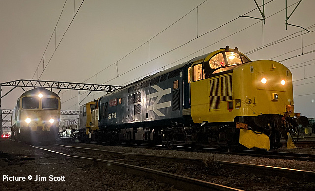 ![]() Even more freight traffic: on 5 December 66 796 The Green Progressor arrived at Llandudno Junction from Hexthorpe Yard near Doncaster hauling a rake of box wagons which we believe are to be loaded with limestone from Llanddulas quarry and taken to Bescot yard near Birmingham. This appears to be a one-off trial run. Picture by Gary Thomas. Borderlands half-hourly serviceThe Office of Rail and Road have finally reached a conclusion about whether Transport for Wales can increase the Wrexham - Bidston service from one to two services per hour, a plan which has been objected to by GB Railfreight who operate the cement trains along the line. You can read a copy of the full report (21 pages) on our server; an interesting section is paragraph 60, which we quote below: Accessing the Padeswood Cement Works site consumes significant capacity. Freight trains arriving must wait for the previous northbound passenger train to clear the signal at Dee Marsh (around five miles away), resulting in a wait of around 15 minutes. To enter the sidings, adjacent to the main line, the freight train must first shunt back the whole train into the first reception siding. It is then split, usually into nine and four wagons, with the front portion drawn forward and then shunted back into the second reception siding. This process means that freight trains occupy the main line for around 35 minutes. On departure, freight trains must repeat the above in reverse order, and therefore occupy the line for approximately another 30 minutes. In total, the accumulated time for arrival and departure of one freight train occupying the line between Penyffordd and Buckley is 74 minutes.We also read that Penyfford signalbox is not manned at night, and a crossover there which would have helped has been removed. 'Loaded trains that return from Dee Marsh (where the trains must travel for the loco to run round) towards Avonmouth encounter the steepest gradients on the route, which severely limit trailing loads and efficiency ... and due to the steep gradients on parts of the line, freight trains run at 12mph, and as low as 6mph in bad weather.' Class 37/4 notes![]() 37 405 at Coleham depot, as seen by Graham Breakwell on 2 December. A run on the RHTT would have have weathered its shiny new livery! This loco was bought by Harry Needle in their recent clearance sale. Needle owned two 37s - 415 and 428 - for a while but both were scrapped in 2013. ![]() We hear that 405 is to be used in tandem on the Cambrian line engineering works, but has a fault which it is hoped can be fixed at Coleham. ![]() 37 418 An Comunn Gaidhealach made a surprise appearance at Stockport on 30 November, running light to the East Lancashire Railway at Bury. Could it be that it would be hauling passengers again there, as it did when first preserved? Sadly, no, it was collecting some Network Rail MPVs to take to Crewe. (See item below.) Picture by Peter Cross. ![]() Bury, January 2010 (Charlie Hulme). Class 230 newsWell, actually there isn't much news. Vivarail did go into Administration, by Grant Thornton LLP, on 1 December, so we wait to see if any organisation will buy the operation. Meanwhile the London North Western have suspended the Bletchley - Bedford service, apparently because maintenance had been carried out by Vivarail staff, whilst the Isle of Wight service, where Vivarail Class 484s took over is still operating. A South Western Railway spokesperson said: 'We are monitoring developments at Vivarail and ... and would work closely with them to ensure the continued smooth running of our trains on the Island Line.' Transport for Wales say: 'Testing and training is currently on hold ... We’ll be in a position to provide an updated statement in the coming days, but our focus remains to bring our Class 230 units into service on our network. We’re currently planning for this to take place during 2023.' The end of autumn - pictures by Gary Thomas![]() In anticipation of the Rail Head Treatment Train season coming to an end I thought I'd get out as much as I could, especially as 97 302 was still on the circuit. Above, on 30 November 56 049 and 97 302 head east past Conwy Castle. ![]() 60 076 Dunbar passes Dwygyfylchi on 1 December with stone from Penmenmawr for Tuebrook Sidings. ![]() 197 101 and 197 007 pass Rhyl Marine Lake with a training run on 1 December. ![]() 56 049 Spirit of Templecombe leading 97 302 past the Marine Lake on 1 December ... ![]() ... with a very dirty 97 302 on the rear. ![]() Also approaching the Marine Lake on 1 December, a measurement train led by 43 299 ... ![]() ... and 43 290 on the rear. ![]() Pensarn, 2 December. ![]() On 3 December, 56 090, possibly for the first time this season, replaced 56 049. I had expected the last RHTT to be on Saturday 3 December, running only to Llandudno Junction but this did not prove to be the case and it continued to Holyhead. The RHTT has not appeared on 4 or 5 December, so it does appear that the season is over. North Wales passed over again - comment by Barrie HughesNorth Wales users of TfW services must be concerned about the favourable bias shown to South Wales by the Welsh Government with the release of the new timetables for the forthcoming timetable revision. There is effectively no change on the Holyhead / Cardiff loco hauled route and no sign of reinstatement of Holyhead / Llandudno - Manchester / Birmingham route loco hauled trains. Instead, the recently purchased Mk4 Class 67 loco hauled trains will be operating seven trains a day on the Swansea / Cardiff / Shrewsbury / Crewe/Manchester services with restaurant cars for First Class and Business Class. Four of the new trains even run on Saturdays when no Holyhead loco hauled trains operate! Trains run at two hourly intervals and one of the trains even runs to/from Swansea. These trains call at Newport /stations to Shrewsbury then Crewe, Wilmslow and Stockport before arriving at Manchester Piccadilly. It is coming to something when 