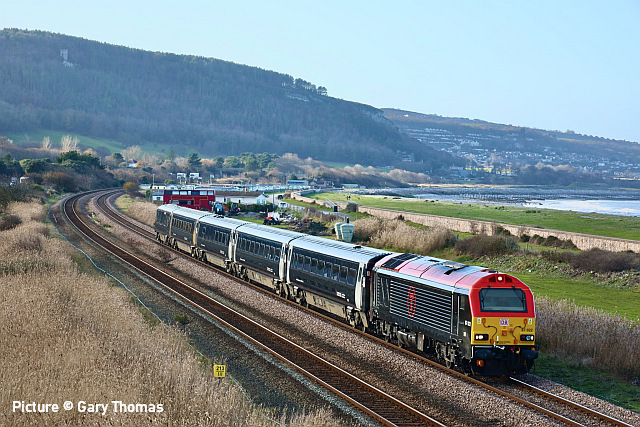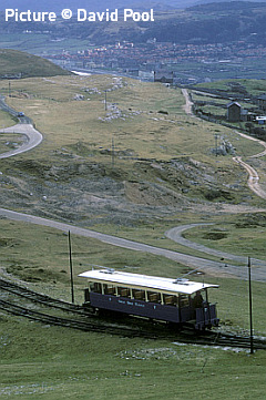 ![]() 66 749 with stone from Penmaenmawr, Beeches Far,. 21 December. Picture by Bob Greenhalgh. A short Boxing Day issue compiled between bouts of eating. I hope readers and contributors have had a good Christmas. - Charlie News pictures![]() Gary Thomas writes: 'It's been pretty quiet on the Coast this week. The main highlight was 197s (in pairs) debuting on Llandudno to Manchester Airport services on Wednesday 21st. Above, 197 006 and 197 003 returning past Pensarn on their first revenue-earning run to Manchester Airport. ![]() Greg Mape captured the first run at Gatley ... ![]() ... and the return at Heald Green. ![]() The Class 67 “WAG” diagrams have been pretty unreliable, often running with a motley selection of 150/2, 153s or 175s. If indeed they do run. Avanti West Coast launched a new timetable with more direct services to London Euston, but this has been a shambles to with many cancellations. 67 022 was on the midday loco-hauled to Cardiff, passing milepost 213½ about 40 minutes late on 21 December. (Gary Thomas). ![]() Balderton crossing. on 21 December 67 029 Royal Diamond heads an empty stock working from Landore to Crewe. The reason why the first days of the new timetable is that the coach sets have been at Landore works in Swansea for the installation of a 'Selective Door opening' system to allow for short platforms, and the work is taking longer that expected. Meanwhile, people with first class tickets have found themselves in a 175, or even a 153 or 150. The Manchester - Cardiff loco-hauled is planned to start on 9 January. ![]() Also on 20 December, 66 749 Christopher Hopcroft MBE on the Penmaenmawr to to Tuebrook sidings stone (Gary Thomas). ![]() Garry Stroud pictured 66 749 with its train at Penmaenmawr on 21 December ... ![]() .... and a flashback to 2014 when 66 749 was unusually seen in grey undercoat before painting of the yellow cabs and sides, seen here approaching Copmanthorpe south of York, with a southbound load of 'biomass' to Drax power station. Monday 30 June 2014. ![]() 66 756 Royal Corps of Signals Arriving at Llandudno Junction on 19 December with the 6Z58 07:44 stone empties from Hexthorpe yard to Llandudno Junction sidings... ![]() ... and reverses into the yard. The loaded train of limestone brought by road from Llandulas quarry travels overnight to Walsall Freight Terminal where the stone is added to a large pile. These trains are run as one-offs at present, indicated by the 'Z' in the headcode. ![]() 197 021, which we believe to be the highest-numbered unit to be seen on the Coast so far, prepares to depart Llandudno Junction with the 3Q12 11:33 test run to Chester on 22 December (Garry Stroud). Zapping leaves![]() Readers may recall our coverage of the movement by loco 37 418 of Network Rail Multi-Purpose Vehicles from the East Lancashire Railway. We gave no information at the time about why the MPVs were there, but thanks to Simon Cross we know the reason, which is of considerable interest. ![]() Simon has sent these images taken of the train arriving at Bury after testing. They had arrived at the ELR in October to participate in testing that took place on the Broadfield and Summerseat sections of a proposed alternative way of clearing leaves from the line. Two ideas were tested, one using lasers and the other using plasma. A Network Rail video explains. From Dave Sallery's archive![]() 59 205 at Tal y Cafn working the "Roman Nose" rail tour to Trawsfynydd, 18 April 1988. ![]() 101 685 "Daisy" is ready for another trip up the valley at Llandudno, 7 August 1994. ![]() 31 439 and 31 119 North Yorkshire Moors Railway on a ballast working at Llandudno Jct, 10 July 1995. Looking back: Steam, diesels and tramcars - by David Pool![]() “The Scenic Settler” Pathfinder railtour on 22 May 2010 was 1Z66, 06:40 Bristol Temple Meads to Carlisle via the S&C. It was passing through Winwick with 56 312 Artemis and 66 148. The Class 56 was in the Devon and Cornwall Railways fleet, and the unusual livery was soon to be replaced by the more familiar grey. It had been one of the Romanian built locomotives (56 003) and following further changes of ownership it is currently intended to be a donor for a new Class 69, probably 69 013. ![]() Also on 22 May 2010, Steam Dreams ran “The Cathedrals Express” railtour from Euston to Chester via the West Coast Main Line, with 60163 Tornado throughout. The return journey was 1Z63, 16:30 Chester to Euston, and is passing Rowton. The Great Orme is rightly one of the most popular tourist attractions in North Wales, and the Tramway is the means of ascent for the majority of the visitors. It was originally opened by a tramways company, and later was considered to be a railway, finally reverting to the Tramway name in 1977. There is similar confusion as to what it is. The best description is a Funicular Tramway, since the crucial feature is that pairs of cars operate in a counterbalanced mode, attached to cables and electrically powered winding drums. Sometimes the Great Orme system is described as being Cable Cars, but these are something different. Cable Cars originated in the America in 1873, the first use being in San Francisco. The crucial point is that Cable Cars are not permanently attached to the cable, which is continuously moving. A Cable Car has to grip the cable in order to move, and release it when stopping. ![]() On 3 June 2010, Great Orme car 6 was leaving Halfway Station, heading for the Summit. On this Upper Track the winding drums are in Halfway Station, so there is a cable connecting the cars which goes round a pulley at the Summit Station, and cables which go from each car to the winding drums at Halfway. Viewing a moving car you see one cable moving with the car and another moving in the opposite direction. One of the curious features of the Great Orme cars is the provision of two Trolley Poles, one at each end on each car. Communications with the winchmen in the Halfway Winding House were originally 