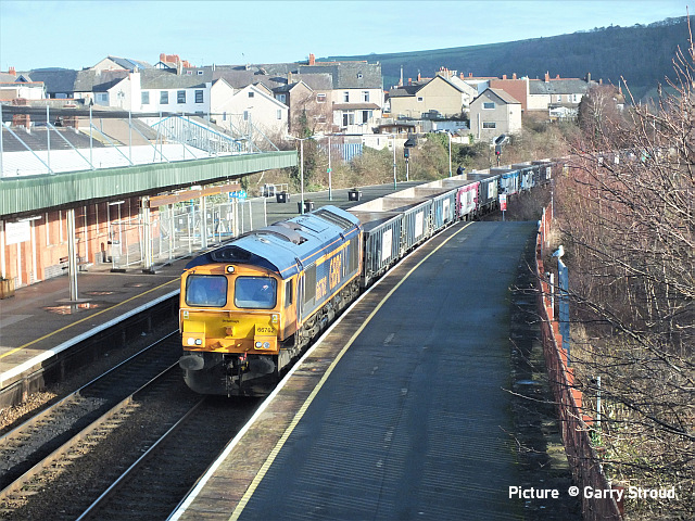 ![]() Old (508 131) and New (777 049) at Kirkdale, 31 January. Picture by Greg Mape. TfW at Manchester - with Charlie Hulme![]() As I hoped, on a visit to Manchester on 2 February, 197 009 turned up on 10:43 Llandudno - Manchester Airport, departing Manchester Piccadilly at 12:55. The new platform surface has millions of black and yellow studs. ![]() My first ride on a 197 was a chance to compare the interior with the Northern 195s from the same manufacturer. The most obvious difference, of course, are the bi-lingual announcements. Each set of 'slides' alternates all Welsh and all English, and automatic recites all its information in Welsh first and then all English afterwards. The seats, said to be an improved version, are decently spaced, and when subjected to the full weight of a 15-stone passenger did 'give' about a centimetre - the Northern seats don't move at all. ![]() Arrived at the Airport. The turnround time is advertised as 10 minutes, just enough time to but a coffee from the buffet on the platform. ![]() The bike space is small but reasonable, Infinitely better than hanging your bike on a butcher's hook as seen the new 800-series of other companies. But the space will be taken over by the huge suitcases favoured by many passengers. ![]() I alighted at East Didsbury (Dwyrain Didsbury) and walked to the Metrolink station, and changing trams at St Peters Square arrived at Piccadilly in time for the 14:30 to Cardiff which I hoped would be a loco-worked set. ![]() East Didsbury, like Mauldeth Road and Gatley, is having its platforms extended. ![]() At Piccadilly I found the 'black' loco, 67 020, on the 14:30 Cardiff; it seems the plan for the loco to be at the far end of the the train at Piccadilly have not yet been achieved. Aboard the train, the standard class seats were well filled. Some people, who didn't realise the significance of the golden door, were ushered out of the first class section. I was pleased to hear that the Chef was serving meals on the service, although the 8-minute trip to Stockport was too short to explore this. ![]() A selfie with the 'Big T' . News Pictures![]() The 6M76 Margam to Dee Marsh passing Buckley, running 2½ hours late on 31 January (Stephen Dennett). ![]() While Gary Thomas was waiting for a train at Wrexham General on 2 February, GBRf's one of recent acquisitions, 66 303 arrived with the return working, 6V75 09:31 Dee Marsh to Margam. ![]() 66 733 (ex-66401) was an hour late at Flint on 1 February, having arrived at Penmaenmawr well behind time in the morning (Stephen Dennett). ![]() With the majority of GBRF Class 66s named, one of the small number of unnamed examples appeared on the 6Z58 Doncaster decoy yard to Llandudno Junction limestone empties yesterday, Monday 30 January. 66 762 is seen here entering Llandudno Junction station at 14:53 ... ![]() ... and reversing into the yard (Garry Stroud). ![]() While Garry was recording 66 762 in the yard, 67 013 turned up on the 1W93 11:25 Cardiff to Holyhead. From Dave Sallery's Archive![]() 37 026 near Mostyn with a loaded ballast train, 23 June 1994. ![]() 37 077, in Mainline livery, passes Holywell Jct with ballast empties, 19 March 1998. This loco worked one day 15 May 1999 on the North Wales passenger services. Soon afterwards it was chosen to be sent to France for engineering work there. It spent two periods there before being sold for scrap in 2009. ![]() Looking in the opposite direction is 37 080 with more ballast, 4 October 1994. ![]() Smartly turned out in 'Dutch' livery is 37 211 passing under the Wrexham - Bidston line at Shotton, 30 April 1997. 37 211, with 37 509, worked the 'Slate and Narrow' railtour to Blaenau Ffestiniog on 20 September 1997, which did not run entirely smoothly, according to the Six Bells Junction website. Like the other three locos in this item, it no longer exists. Looking back: Staffordshire branches part 2 - by David Pool![]() You can imagine the sound of this “Growler” as 37 429 Eisteddfod Genedlaethol leaves Chester on 25 September 1993 with the 1330 Holyhead to Manchester. ![]() A few months later I saw it again working the Branch Line Society’s “The Caldon Peak” Railtour 1T30 from Crewe on 16 April 1994. The leading locomotive was 37 407 Loch Long in Intercity Mainline livery. I photographed the train after it had left Glebe Street Junction in Stoke on Trent, and was on the freight line to Leek Brook Junction. ![]() The line was showing signs of disuse as the train approached the overbridge at Park Lane, Endon, but the train was on time and kept close to the booked time throughout the day. ![]() Since it was heading for the Caldon Low line, it did not have to reverse at Leek Brook Junction, and it would have been a memorable sound as the gradient was tackled to Bradnop. I had taken the road to Ipstones, and met the train at what is today the end of the Churnet Valley Railway’s operations. ![]() The train continued to Caldon Low, and I photographed it returning at Winkhill. Unfortunately the track between Ipstones and Caldon Low was later lifted with the intention of relaying new track. The scheme for reopening the quarry and using rail freight was then not pursued, and with the priority of extending the line to Leek it is unlikely that trains will return to Caldon Low any time soon. My final photograph on the line was between Endon and Stoke, with 37 429 now leading. I had recorded this as being at Milton, but I have been unable to identify the precise location on Google Maps today. The Fairey Insulator Division in the image seems to have ceased trading, and this area has changed significantly. ![]() Participants on the Railtour then headed for Manchester Piccadilly, from where the two 37s took the line to Hazel Grove and Buxton, the destination being Hindlow Quarry in Derbyshire. It was easy for me to get to Buxton from Stoke via Leek, and I photographed 37 407 leading again at Harpur Hill. ![]() My final shot of the Railtour was at Hindlow
