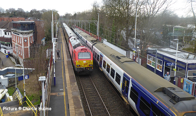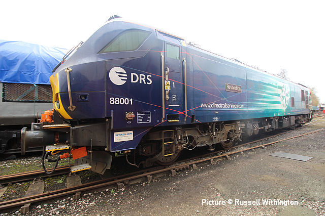 ![]() Monday 3 April we were honoured to have 66 779 Evening Star working the 6Z58 Wellingborough to Llandudno slate empties. Picture by Larry Davies. NewsThe big news on 3 April is that a Class 230 unit has finally carried paying passengers (assuming they knew about it) on the Borderlands line, starting with the 07:31 and at two-hourly intervals using 230 010, with one out and back runs cancelled. It seems that 230 008 was to run the alternte trips, but this didn't happen. Unfortunately, 230 010 on the 17:40 Wrexham-Bidston suffered 'problems with the traction equipment' and was cancelled at Shotton after arriving 59 minutes late. Wisely, the replacement bus service had been retained in parallel. ![]() 008 and 010 coupled together made some test runs on 31 March: Ian Henderson captured them at Heswall. ![]() Bob Greenhalgh writes: Monday 27 March was the first time this year I was able to photgraph the Carlisle to Chirk logs, after British Summer Time came into force. 70 810 was delaying a bus at Balderton Crossing. ![]() Measurement unit 950 001 was around the Chester area on 28 March. Bob Greenhalgh photographed it from Morrison's car park in Saltney. ![]() Seen passing Cadnant cutting, Conwy, 43 290 heads the 1Q30 10:55 Derby to Holyhead measurement train, 23 March (Garry Stroud). ![]() 66 779 Evening Star on slate waste duty passes Abergele, 3 April (Greg Mape). This loco was the last Class 66 loco to be built, and GBRf named it in analogy with BR's last-built steam loco 92220 which carried the same name. ![]() After a gap of almost three weeks due to a problem at Penmaenmawr quarry, traffic resumed on 3 April in the form of 4Z33 14:30 Mountsorrel Tarmac Colas sidings hauled by 70 810 seen shunting its train in the quarry sidings as the sun sets over Anglesey (Larry Davies). Class 67 gallery![]() 67 020 propelling 1W93 Cardiff Central to Holyhead loco-hauled service past Balderton Crossing, 22 March (Stephen Dennett). ![]() 67 020, seen on the same Cardiff - Holyhead service, was repainted in black to match the former Grand Central coaches. Unfortunately the coaches are in TfW colours and not in the matching black livery (Geoff Morris). ![]() ... and again at Llandudno Junction (Garry Stroud). ![]() 67 020 again, at Llandudno Junction on 31 March (Geraint Williams). ![]() On 31 March, 67 012, still in Wrexham and Shropshire colours, calls at Wrexham General on the 11:33 Holyhead-Cardiff (Geraint Williams). ![]() 67 014 arriving at Llandudno Junction with the 11:24 Cardiff-Holyhead, 3 April (Greg Mape). ![]() 67 014 passes Cheadle Hulme at speed on the 14:30 Manchester PIccadilly - Cardiff Central, 29 March. Seen at Crewe Heritage Centre - by Russell Withington![]() As an HST fan (I’m a member of 125 Group) I’d be planning on visiting Crewe Heritage Centre for a while, and the combination of the weather stopping me doing the gardening I needed to do and the fact that there was something else on tempted me to go on Sunday 26th March (despite what the rather smart ticket says). Upon arrival I was warned that the visiting locomotives would be ‘leaving early’ and it was recommended that I go and look at these first, so I did exactly that - the "Modern Image O Gauge” exhibition would just have to wait. ![]() From the gate 47 712 Lady Diana Spencer was visible... ![]() ... and parked up next to it the full-size 37 401 Mary Queen of Scots. ![]() The final visiting locomotive was 88 001 Revolution, which a number of the attendees at the exhibition were either measuring or taking significant numbers of detailed photographs. ![]() I then visited the exhibition and thought that it would be rude not to photograph the rather smaller version of 37 401 which was running on one of the layouts. I then did a pit-stop for lunch, and while I was eating overheard a couple of DRS drivers discussing the fact that they’d be able to return the locomotives to the depot after Royal Scot had returned. Which is exactly what happened - just after 13:30 46100 ran past the heritage centre on a positioning move back from Carlisle and the area around the three locomotives was fenced off, and they were started up one by one, 37 401 being filmed by quite a few of those present - it certainly did make a fair racket! As to the Class 43s I managed to get some good photographs of W43018, which was open, but 43081 had been shunted down by the signal box to make way for the visitors - I’ll just have to go back to get some better photographs of that one. Llanberis Lake Railway![]() Martin Evans visited the Llanberis Lake Railway on 21 March. The loco in steam was Hunslet No 3 Dolbadarn and is shown ready to depart Gilfach Ddu with The 13:30 service to Cei Llydan via Llanberis... ![]() ... Departing ... ![]() ... and returning from Llanberis for Cei Llydan. From Dave Sallery's archive![]() 37 174 seen along the Dawlish sea wall on an engineers train, 23 August 1999. ![]() A GW livery 47 heads west at Teignmouth in August 2002. ![]() 47 817 in its unique (thankfully) Porterbrook livery at Truro on 27 September 1997. ![]() An Up HST passes Lostwithiel on 18 September 1996. Looking back: South Wales in 1991 part 4 - by David Pool![]() July 28 1991 will be remembered by many Merseyside enthusiasts as the date for the Pathfinder Railtour 1Z81 0623 Lime Street to South Wales, the “Vulcan Valley Venturer”, which arrived back into Lime Street nineteen hours later! I was on holiday in South Wales at the time, and decided to follow it from Tondu, which was one of my favourite locations for photography. A pair of Class 20s had brought the train to Cardiff, where 37 201 and 37 138 top-and-tailed the train around the coast to Bridgend, then headed for Maesteg. 37 201 was leading at Tondu. ![]() I photographed it just after leaving Maesteg Castle Street, heading for Llynfi Junction, where the branch from Maesteg Washery comes in. ![]() About 15 minutes later it came back with 37 138 now leading. ![]() The signalman at Tond