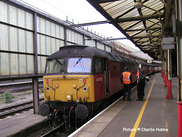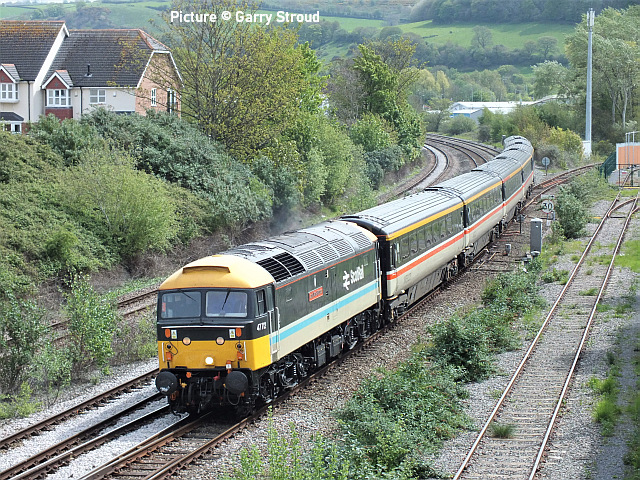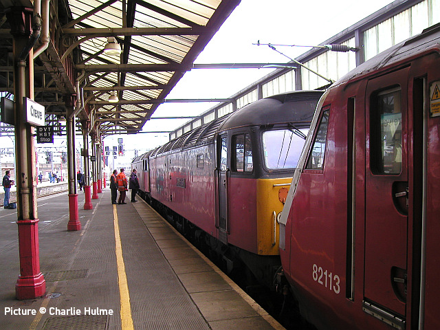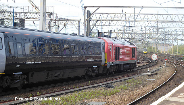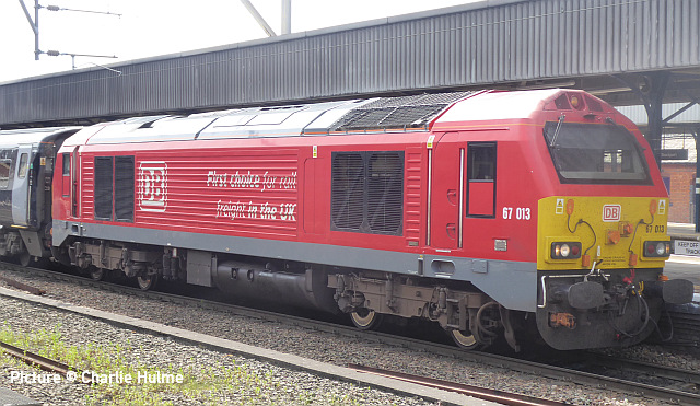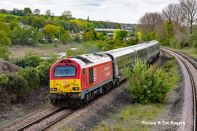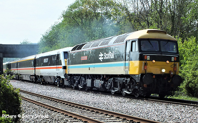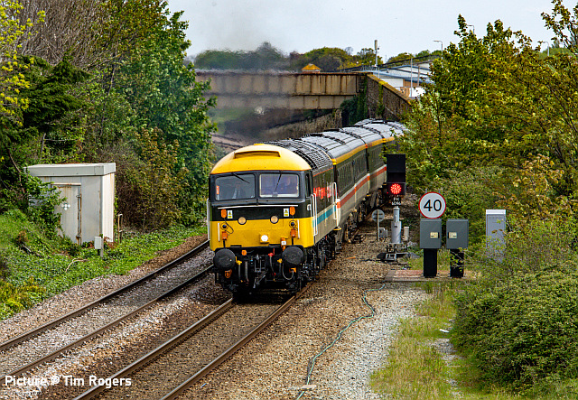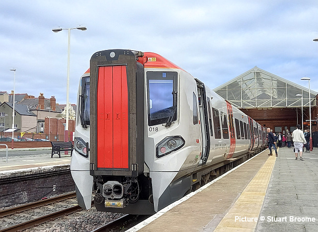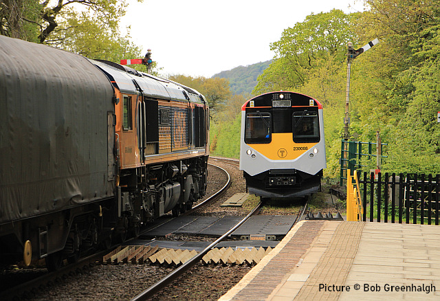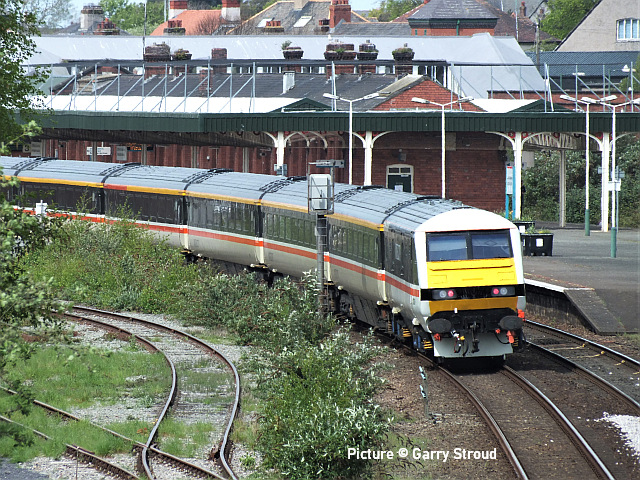 ![]() 197 018 at Llandudno with the 13:19 to Blaenau Festiniog, 1 May (Stuart Broome). A patient spotter on this day at Llandudno could have chalked up 197 004, 006, 007, 009, 010, 013, 017, 018 and 021. Freight views![]() On 1 May, 66 755 Tony Berkeley OBE running late near Buckley with 6M76 23:10 Margam to Dee Marsh. Load 25 wagons (Tim Rogers). ![]() 66 761 Wensleydale Railway Association 25 Years 1990-2015 on 6Z58 08:38 Wellingborough to Llandudno Junction slate waste empties, passing Bagillt, 1 May (Tim Rogers)... ![]() ... and arriving at Llandudno Junction (Garry Stroud). The Emerald Explorer![]() Wednesday May 3 saw the initial leg of Steam Dreams (now part of the Locomotive Services group) 'Emerald Explorer' week-long rail holiday being formed of LSL Mk 3 stock for the initial transfer from London to Holyhead for the ferry to Dublin. 87 002 headed the formation from Euston to Crewe where it was replaced by Scotrail-liveried 47 712 Lady Diana Spencer for the run to Holyhead. This harked back to the days when class 47s on Mk 3 stock (+ DVT) were commonplace on the Coast. Geoff Morris chose to photograph it passing the racecourse at Chester in the hope that the complete formation would be visible and, although the tree growth alongside the viaduct is encroaching, there was just sufficient space to achieve this. ![]() Rhyl (Tim Rogers). ![]() Approaching Llandudno Junction ... ![]() ... on the rear, 82139 (Garry Stroud). ![]() The late-running return working heading back to Crewe Heritage centre as it passes Pabo Lane, Llandudno Jcn, on its return working back to Crewe Heritage Centre (Garry Stroud). Change at Crewe: a memory of 2002 - by Charlie Hulme![]() The date is Saturday 13 April 2002, and 47 732 Restormel has arrived at Crewe from Holyhead with the 13:35 Holyhead to London Euston, and is waiting for the shunter to uncouple it from the Driving Van Trailer in which the driver would control the train on the rest of its journey to London. ![]() At the other end of Platform 11, 90 014 has appeared on the scene and coupled to power the train to Euston. Coach 6101 is of Mk2 type; Mark 3s had not ventured to Holyhead except in HST form. ![]() I used to enjoy watching this operation, quite an unusual one by this time, booked to take from 15:46 to 16:10. Things Sometimes things differed - on 23 February 2002 47 789 Lindisfarne has arrived with an additional load in the the form of 47 757 Restitution whch had led the Crewe - Holyhead outbound. 47 757 being on test, and 47 789 was suffering a DSD (drivers safety device) fault. ![]() 86 260 Driver Wallace Oakes G.C. which had been waiting in Platform 10 was attached to the rear to 'push the train on its weary way to London' as we reported at the time. Thanks to Sulzerpower's archive for assistance with this item. Midland Pullman on the Coast![]() 1 May saw the Locomotive Services tribute to the historic 'Midland Pullman ' train of the 1960s operate an excursion from Bournemouth to Llandudno. Ivor Bufton photographed it near Prestatyn on the outward journey, with 43 055 leading 43 046 Geoff Drury. With its 'Nanking Blue' and whte livery, it certainly gives the right effect, and the coaches are comfortable First Class Mk3 vehicles. The outward leg ran very late as it was held outside the Severn Tunnel for about 90minutes while a problem in the tunnel was investigated. ![]() Llandudno, was reached 58 minutes late (Stuart Broome). ![]() Geoff Drury's contributions to Steam Preservation included purchasing 60019 Bittern and 60532 Blue Peter; both are now in the care of Mr Hosking, owner of Locomotive Services. ![]() Geoff Drury's widow was on the train, and at Llandudno was invited to sit in the drivers seat of 43 046, which she did (Stuart Broome). ![]() The return passing Llandudno Junction (Garry Stroud). It left Llandudno around 30 minutes late, probably a re-timing to allow passengers some more time at the resort following their hour-late arrival. ![]() Mostyn (Tim Rogers). ![]() Beches Farm (Stephen Dennett). ![]() It had already recovered 15 minutes when Geoff Morris photographed it passing through Chester station. The class 158 in platform 3 had preceded it from Llandudno Junction and required the enthusiasts on platform to hastily rearrange their photo positions as the Pullman passed only a couple of minutes later. ![]() Passing Beeston Castle (Greg Mape). ![]() Near Church Stretton (Graham Breakwell). An attempt at the same idea was tried in 2006, the 'Blue Pullman' using Class 47s for power and Mk2 coaches, but the operator 'FM Rail' went into administration shortly afterwards, the operation sold to Cotswold Rail before disappearing into obscurity. Miscellany![]() Friday 5 May, Penyffordd station. 66 755 Tony Berkeley OBE at the head of the Dee Marsh to Margam steel waits for a signal as 230 008 runs into the station (Bob Greenhalgh). ![]() 67 013 propelling train 1W93 11:25 Cardiff Central to Holyhead through Bagillt, 1 May (Tim Rogers). ![]() On 3 May, 67 013 calls at Stockport with the 10:52 Cardiff - Manchester ... ![]() ... and heads out on to the viaduct as a Manchester - London Pendolino approaches on the Up Fast line. More about the Ffestiniog Round RobinThanks to everyone who has written about our item in the last issue regarding the Round Robin. Gary Thomas refers us to an article written by him in the September 2022 Rail Express, describing his trip which started at Llandudno Junction on the 06:21 loco-hauled service, and travelling clockwise, with a two-hour break for Lunch at Blaenau Ffestiniog, arriving back 12 hours later. He explains that to do the one-way Ffestiniog section on the 'Mountain Spirit' or 'Quarryman' service you will need telephone the Ffestiniog Railway's booking office (01766 516000 we think) in advance and book a place. There is a timetable on the website but you also need the Calendar page to check what trains run on your chosen day. There's no online booking for one-way journeys. On-train refreshm