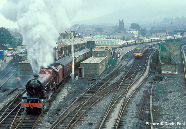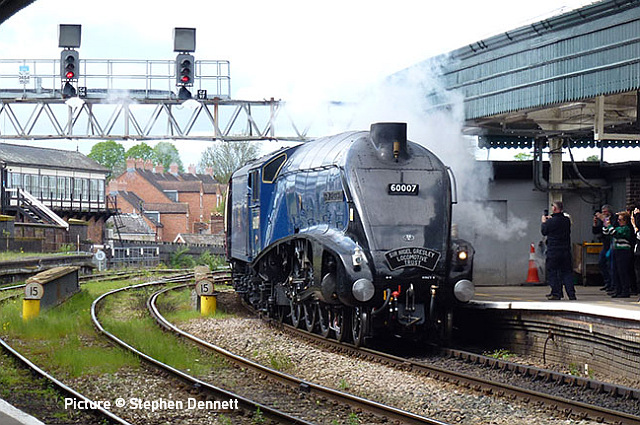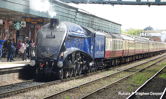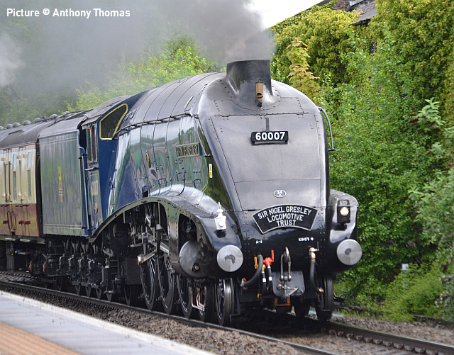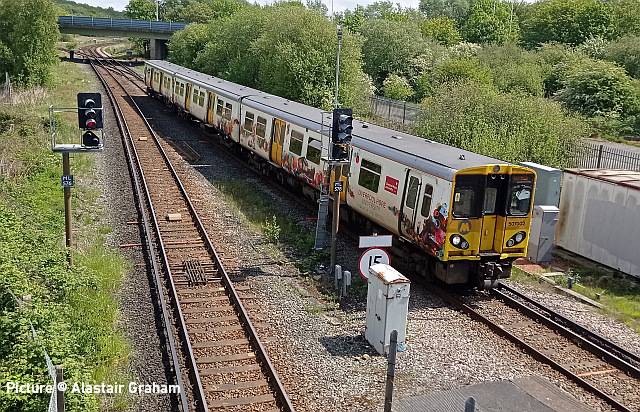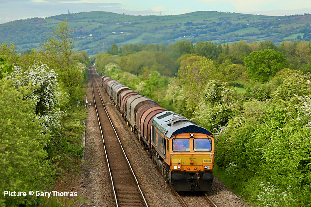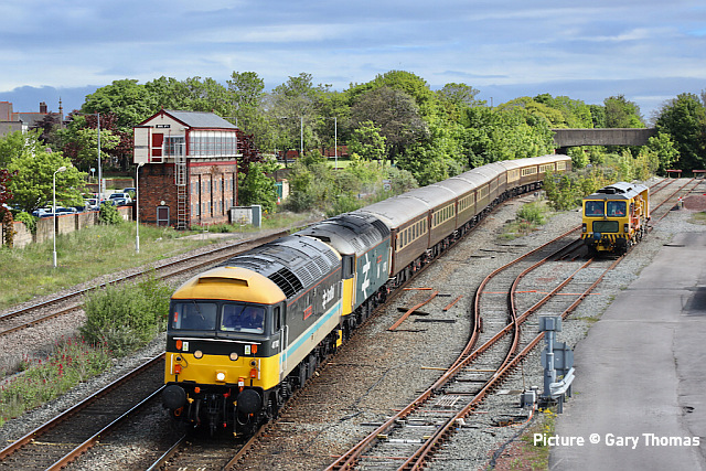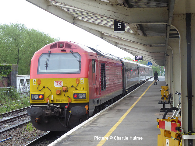 ![]() 197 010 crosses Llanddulas Viaduct on 13 May with the 09:25 Manchester Airport. (Greg Mape). Busy week - chronicled by Gary Thomas![]() A busy week on the Coast as we had three LSL charters and largely excellent weather. On Wednesday (above) we had a Statesman charter from Chesterfield to Blaenau Ffestiniog, with 47 712 and 47 593, seen passing Rhyl. ![]() On Friday we had the 'Emerald Isle Express' return to Holyhead to pick up returning passengers off the ferry. Again with 47 593, seen at Valley. ![]() On Saturday we had the Midland Pullman from St. Albans to Llandudno. The view from Old Colwyn shows the out-bound working. ![]() Returning through Deganwy. Unfortunately this train was stopped at Chester and evacuated while the Fire Brigade dealt with overheated batteries under one of the coaches and clear the smoke. The passengers were transferred to coaches, according to an LSL staff member. ![]() Finally a photo of 66 755 Tony Berkeley OBE with 6M76 03:07 Llanwern to Dee Marsh. Eurovision 777 - by George Jones![]() Merseyrail ran 777 013 to Hooton platform 2 for a photo-opportunity on Tuesday 10 May. At 12.30 there was myself and one other to take it in ... ![]() ... and enjoy an exclusive inspection of the four coaches in colourful livery ... ![]() ...including look in the modern drivers cab. ![]() Platform 2 is in the process of being extended with buffer stop moved to match. ![]() The expected VIPs hadn't shown up by the time Ian Henderson left some time later. Miscellany - pictures by Stephen Dennett![]() 73 963 Janice arrives at Penyffordd with 1Q41 Derby RTC to Derby RTC Network Rail test train. ![]() ... 73 962 Dick Mabbutt on the rear. ![]() 37 418 An Comunn Gaidhhealach speeds through Acton Bridge with 6Z38, DB Cargo Fan A&B Sidings to Walton Old Junction yard on 9 May. It was pulling 30+ JNA wagons, and returned light engine later from Walton via Chester to its base at Derby Railway Technical Centre. ![]() 60007 Sir Nigel Gresley at Shrewsbury having arrived with Saphos Trains' "The Welsh Marches Express" from Paignton on 10 May... ![]() ... It was an hour late arriving due to trespassers on the line, which played havoc with all the services from the south. ![]() 47 593 Galloway Princess comes past Beeches Farm on 12 May with 1Z47, the Holyhead to London Euston return leg of the "Emerald Isle Express". Report from the Borderlands - by Alastair Graham![]() 230 010 approaches Buckley at 16:21 on the late running 15:38 from Wrexham Central, 4 May. Saturday 13 May saw Saturday trains running on the Bidston - Wrexham line for the first time in more than 10 weeks! Well, most of the day until the last return from Wrexham was cancelled due to a bridge strike. No information provided as to any replacement bus service passengers seemed left to fend for themselves with a couple of girls having to pay £40 for a taxi to Shotton from Bidston. In the event of cancellations there has to be better communication especially at almost 11pm! On 10 May 12:58 Shotton to Wrexham cancelled: next available train was not until 15:56. On 11 May service seemed to be running OK. On 12 May the 16:48 and 17:51 from Neston to Wrexham were cancelled so after the 15:47, the next train was not until 19:02. There have been problems caused by both the Class 150 which works the odd hours service from Bidston and the 230 which works the even hours departures. One train seems to run later and later presumably with a fault of some nature and he following one is delayed also and TfW end up cancelling two services to get back on time but leaving up to four hours with no trains running. Sunday is usually OK as there is recovery in the timetable due to the one-and-a-half hour pattern. Below: a few pictures taken at Bidston on 12 May. ![]() 508 127 departs Bidston for Liverpool Central. ![]() 230 009 crosses to the Down line towards Birkenhead North depot. ![]() 507 002 approaches Bidston from Liverpool Central. A visit to Shrewsbury - Charlie Hulme![]() 67 013 leaving Shrewsbury on the 14:30 Manchester Piccadilly - Cardiff Central, 8 March. We travelled First-Class from Stockport to Shrewsbury - some very cheap advaced fares can be had. Obviously our trip was too short for a meal, and we did get a free hot or soft drink - but a biscuit or cake, as on TransPennine, would have been nice. If they are available, the jolly steward didn't offer them. The catering contractor, 'Blas' (English, 'Taste') seems to have a rather informal style. They, and TfW, seem to have adopted an all-black 'uniform' - maybe to match the coaches, with very small logos on the shoulder. ![]() 197 042 at Shrewsbury on 11 May, presumably a training run. And 'Grumpy Old Man' says: Why are trains laying over in platforms have to leave the engines running? It must waste fuel, and makes a thunderous noise. We sat on a platform waiting for our train home (67 012) and a WMT 196 pulled in to Platform 6 and was left snarling away. A few minutes later, another 196 arrived on a training run, and its crew walked off, leaving the engine running and duet of noise. I know that on the old DMUs this was done because if they switched off they may not start again, but surely this cannot be true of the latest high-tech stock? News pictures![]() Within the Shrewsbury to Machynlleth possession on last week and this, here this afternoon, Monday 15 May from the "virtual quarry" east of Abermule is Colas Rail 56 049 Robin of Templecombe hauling a ballast train in the direction of Newtown with 56 105 bringing up the rear. ![]() The use of a non-ERTMS loco is allowed because the line is closed to normal traffic. Pictures taken by John Oates from a lay-by west of Abermule alongside a busy A483. ![]() An old friend of the Coast Line, 37 418 bringing a rake of 30 new JNA wagons from Wembley to Warrington Old Junction Yard taken at Weaver Junction on 9 May. ![]() The 'Midland Pullman' starts back from Llandudno to St Albans on 13 May ... ![]() ... passing Llandudno golf co
