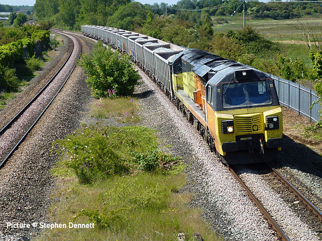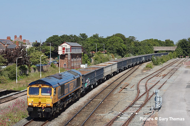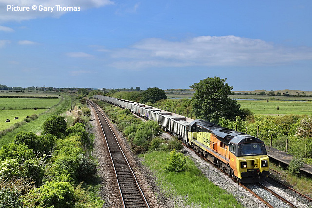 ![]() 70 812 passes Talacre on 31 May with stone for Longport. Picture by Gary Thomas. News pictures![]() 197 015 passes Bagillt on 1 June with 1H89 Holyhead to Manchester Airport. It was losing time (15 mins late at Bagillt) and got to Chester 18 minutes down. It was terminated there 'due to a problem with the traction equipment'. ![]() 70 812 passes Bagillt with 6M33 Penmaenmawr Quarry