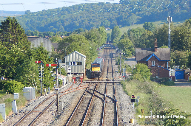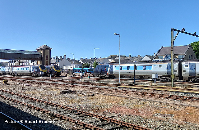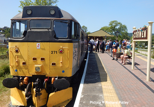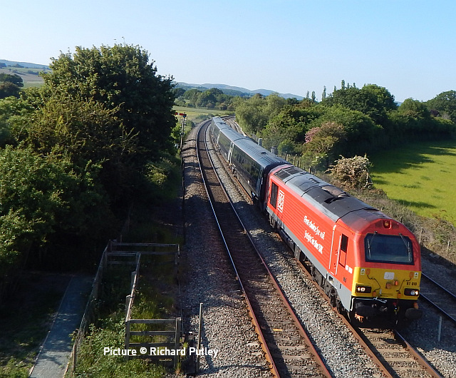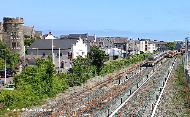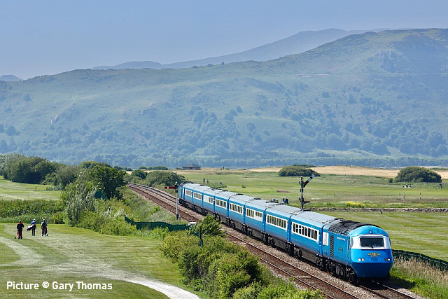 proceed slowly behind the 197. ![]() On 31 May, 70 816 crosses the Roodee Viaduct at Chester with a load of logs for Chirk (Gary Thomas). ![]() 150 259 works 1W92 09:22 Cardiff Central to Holyhead passing Sandycroft on 29 May (Tim Rogers). ![]() 230 009 approaches Penyffordd on its way to Wrexham, 31 May. Picture by Gary Thomas who notes: (I've seen a memo saying they're suffering from pollen issues!' ![]() Another visit by the 'Midland Pullman', this time from Berwick-on-Tweed to Llandudno on 1 June, see above at Heslby (Greg Mape). ![]() Approaching Llandudno... ![]() ![]() On 5 June, 66 767 King's Cross PSB 1971-2021 passes Rhyl with empties for slate waste to be loaded at Llandudno Junction (Gary Thomas). ![]() A visit to Holyhead on 31 May by Stuart Broome found just three 175s in the sidings, suggesting that progress is being made in process of making them less flammable... ![]() ... on the other hand, three Voyagers were present: 105, 109 and 102. This was a strike day for English companies. ![]() Locos cannot now run round in Platform One due to a sleeper chained across the rails. ![]() Recent vegetation clearance work at Llandudno Jcn has resulted in better photo opportunities on the east and west ends of platform 4,together with the yard itself receiving the same treatment enabling better signal visibility. Three views by Garry Stroud taken on Monday 29 May. Above, 66 797 approaches the east end of platform 4 at Llandudno Junction with the 4D59 slate waste empties from Wellingborough. The view now is unobstructed as far as Queens Rd bridge in the distance. ![]() The yard is shown here with 66 797 running round the empty wagons, where now a clear view is obtained towards the signal in the distance. ![]() The western end of platform 4 shows, in the foreground, where trees have been cut down, with 158 823 departing with the 1D13 11:08 Birmingham New Street to Holyhead service. Ian Macer-WrightWe are saddened to hear of the recent death, after a short illness, of Ian Macer-Wright, a long-time contributor to our 'Cambrian Corner' from his hillside viewpoint (like the one above) or down on the sands to record the work done on Barmouth bridge. He was caretaker/driver at the Arthog Outdoor Education Centre, a post he had held since 2006. A volunteer on the Llangollen Railway, he was a keen member of Team Corwen and the Diesel Group. He'll be missed. The elusive 97 301Rail magazine reports that Network Rail ex-class 37 loco 97 301, one of the four NR locomotives fitted with the ERTMS signalling system used on the Cambrian Lines, is withdrawn from service, having rarely, if ever, used on Cambrian trains. Apparently it had been fitted in 2013 with a system from Hitachi, the other three locos (and the 158s) having Ansaldo equipment, and there must have been compatibility problems, although it was said to have been passed for operation. 97 301 was used on other Network Rail work, although it seems to have been out of action recently. ![]() Penyffordd, 2015 (Bob Greenhalgh). It was taken to Derby on 2 May to donate parts to 97 303, and is now stored on the Peak Rail site at Rowsley. Built in 1962 as D6800, later changed to 37 100, it had a spell working in France in 1999-2000 and became 97 301 in 2008. These locos are needed for excursion trains, haulage of track machines, track measurement duties and the recently-inaugurated timber trains from Aberystwyth. Two West Coast Railways 37s were also fitted with another version of the system, but they have never been used on the Cambrian lines. Corwen opening specials![]() The Llangollen Railway ran three steam-hauled "opening