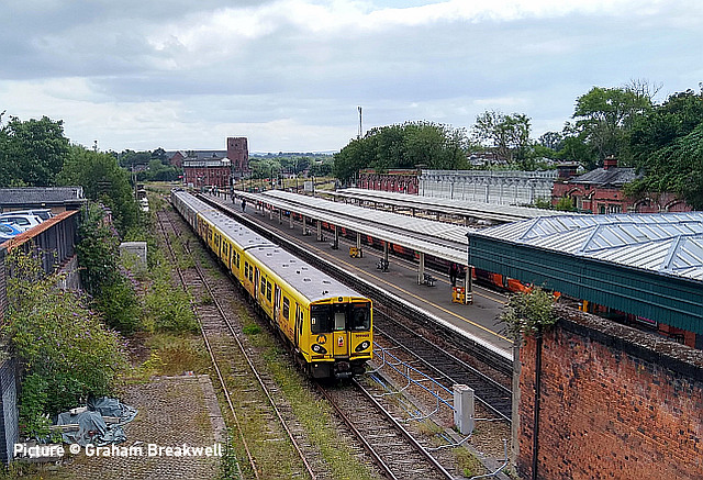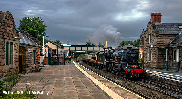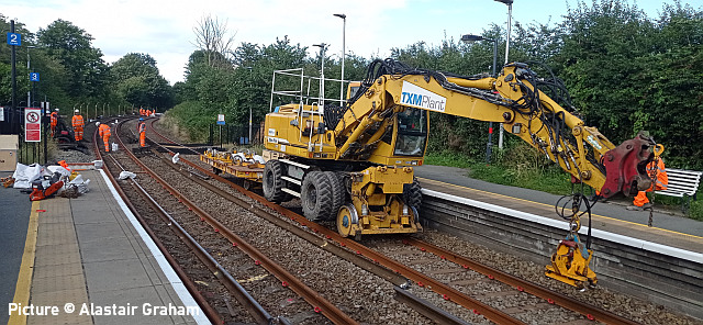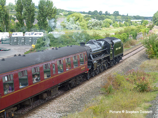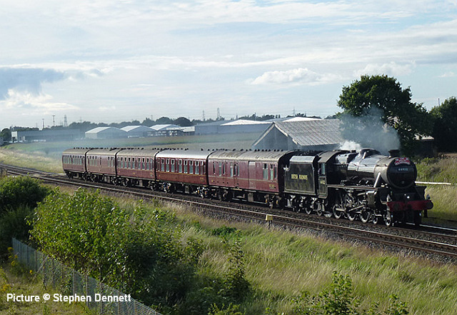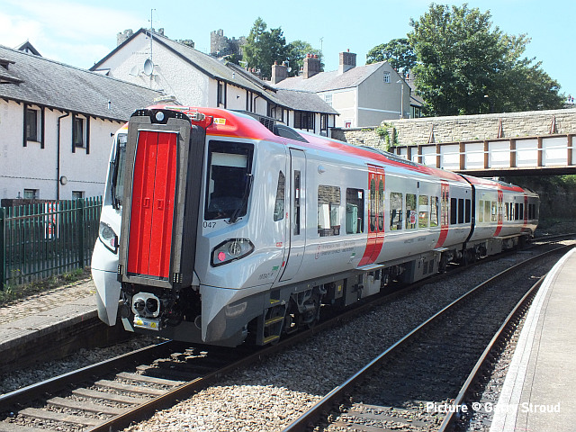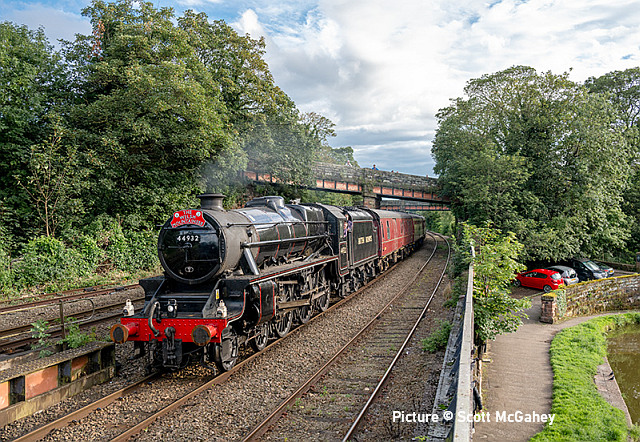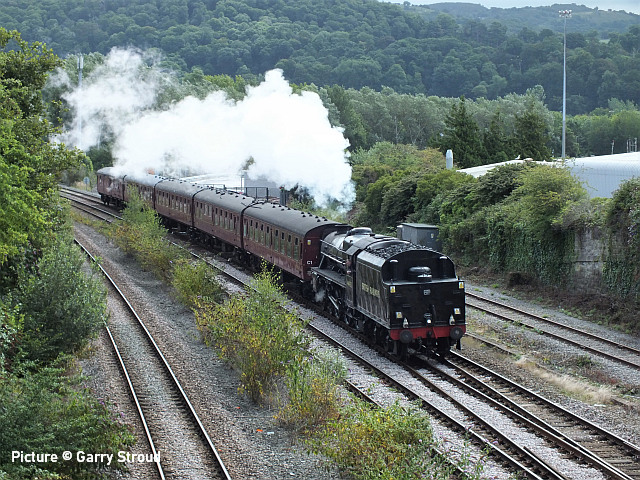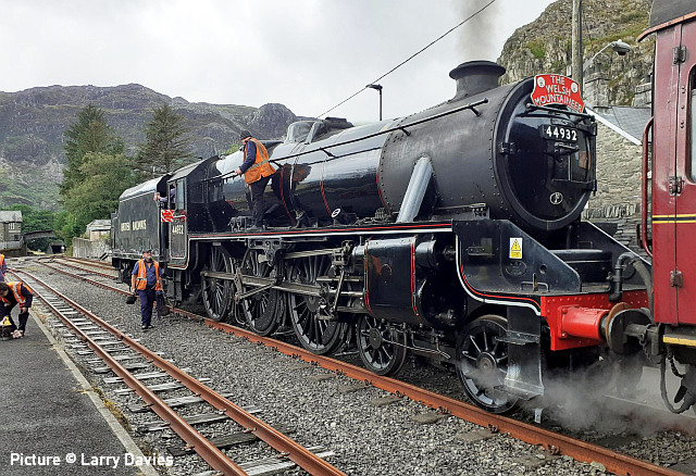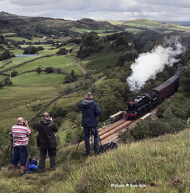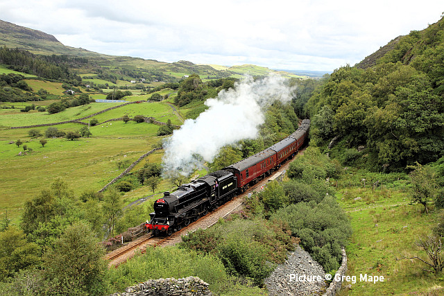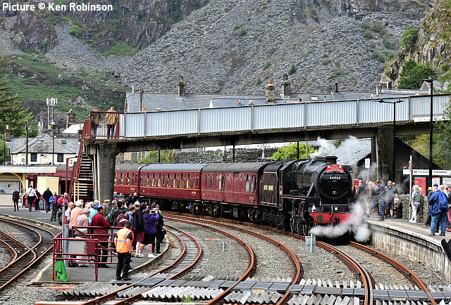 ![]() 'Black 5' 44932 passes Chester Walls with the 'Welsh Mountaineer' on 1 August. Picture by Scott McGahey. News Pictures![]() 66 754 Northampton Saints passes Buckley station with 6V75, Dee Marsh to Margam steel train on 2 August (Stephen Dennett). ![]() 70 817 speeds through Flint station with 6M33, Penmaenmawr Quarry to Longport loaded stone on 2 August (Stephen Dennett). ![]() 66 790, one of the few (so far?) un-named GbRf locos, enters Llandudno Junction, with the 4D59 Wellingborough to Llandudno Junction slate waste empties on 7 August ... ![]() ... and propels the wagons into the loading point (Garry Stroud). ![]() 197 047 is a recent addition to the fleet, seen calling at Conwy with the 1D15 12:27 Crewe to Holyhead service. on 6 August (Garry Stroud). ![]() A rainy day at Abergele & Pensarn station as 66 749 Christopher Hopcroft MBE - 60 Years Railway Service passes with 4D59 09:11 Wellingborough to Llandudno Junction empty JNA wagons (Tim Rogers). Fun at ChirkThis year, 3 Counties Connected Community Rail Partnership is celebrating the 175th anniversary of the opening of the Chester to Shrewsbury rail line. They will be hosting a railway themed free family event on Wednesday, August 9 at Chirk Parish Hall from 11 am until 3.30 pm. 'The event is a Victorian Open Day and promises lots of fun for all the family this summer holiday'. To the scrapyard - report by Graham Breakwell![]() An unusual working was scheduled to run on 3 August with 37 884 Cepheus travelling from Wembley HS to Birkenhead North EMU Depot via Shrewsbury (0M38) to collect a pair of withdrawn 507’s and then take them on to Newport Docks Sims Group scrapyard via an overnight stop at Crewe South Yard (5Q42). The attached image shows 507 005, an unidentified 507 and 37 884 stabled in Shrewsbury station’s up main line on 4 August after the previous day’s Shrewsbury to Crewe South Yard leg of 5Q42 was cancelled the day before. The service was then rescheduled to continue as 5Q78 from Shrewsbury at 13:24 to Newport. However, 37 884 left the stock and headed light engine as OM37, the 14:14 from English Bridge Junction to Derby RTC. The image from the Dana footbridge over the station shows the disused goods platform on the left, Severn Bridge Junction Signal Box and Abbey Foregate Church in the background, the iron parapet of the bridge carrying the station over the River Severn and a West Midlands Train class 196 in bay platform 6 on 2G15, the 12:40 to Birmingham New Street. About the new Class 805 - by Jack BowleyTwo comments about the item in the last issue: people often pick up on the lack of tilting equipment which they find baffling. That said, and is rarely mentioned, that the 80X series trains have a far superior acceleration to the Voyagers and Pendolinos. It's the reason why they're being used on the North Wales / Liverpool / Blackpool 'stopper' services, and the 390s are being retained for the Glasgow / Edinburgh to Eustons. Thankfully, the seats to be fitted to the 805s are not the ones we are more familiar with on the LNER, TPE and GWR sets. They're very similar (or even identical) to those being fitted to refurbished Pendolinos. A different seat profile, presumably not much improvement on the cushioning, but certainly better than other examples already found. Eisteddfod Genedlaethol (not 37 429!)![]() Eisteddfod Genedlaethol Cymru (the National Eisteddfod of Wales) is taking place at Boduan on the outskirts of Pwllheli this week, (Aug 5-12). It's the largest competitive cultural festival in Europe and is likely to attract 150,000 visitors. Highlights of the festival is the Crowning and Chairing of Bards but it's much more than that with a full programme of literary events; a range of musical performances by top bands and singers and an extensive collection of stands and shops. One of the displays on the Maes is by the Ffestiniog & Welsh Highland Railway. They have brought Lilla, the medium-sized quarry Hunslet, originally built for the Cilgwyn Quarry in 1891. Later used at Penrhyn, the was privately preserved before moving to the Ffestiniog Railway in the 1990s. They have also brought along carriages 1 and 12, both replica bugboxes (workmen's carriages). Transport for Wales are playing their part by strengthening to four coaches the 10:55 Machynlleth - Pwllheli and 15:37 Pwllheli to Machynlleth services. Welsh Mountaineer![]() On 1 August the Railway Touring Company ran - as in previous years - an excursion from Preston to Blaenau Ffestiniog featuring "Black Five" 44932. It was necessary to run the loco tender-first from Chester, reversing at Llandudno Junction, the loco then is loco-first for the climb to Blaenau, as seen passing Bagillt (Stephen Dennett). ![]() Arriving at Llandudno Junction. These trains are restricted to five coaches, including the support coach, due to the steep gradients which caused problems with railtours in the past (Garry Stroud). ![]() Passing Pont-y-Pant station (John Myers). John writes: 'Late running service trains appear to have delayed progress by the Black 5 and its limited load: evidence suggests the 11:37 from Blaenau Ffestiniog (2D15) left there about 5 minutes late and that the deficit had increased on arrival for the token-change at North Llanrwst. In turn, this meant the steam charter (1Z51) was around 12 minutes late when resuming its journey but more than made this up on the climb and also seemed unaffected by the tricky check-rail-equipped section immediately before my watching it pass through Pont-y-Pant station. It appears even to have been two minutes early into the terminus as well.' ![]() Photographers above Ffestiniog Tunnel entrance wait for the ideal moment (Sue Ikin) ... ![]() ... and the result (Greg Mape). The loco has recently emerged from overhaul: we read that it is to be trial-fitted with European Train Control System (as used on the Cambrian line) equipment to see if the fitment can be rolled out across other main line steam locomotives. On