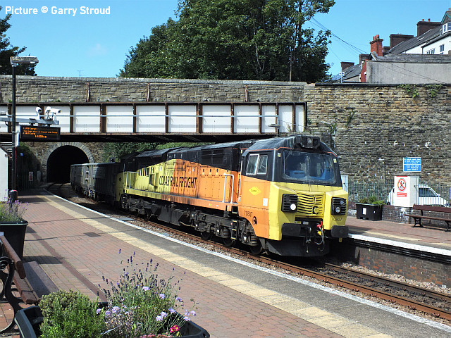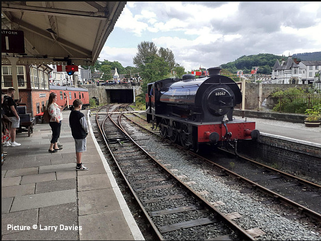 ![]() 68067 leaves Corwen on the 14:20 to Llangollen on 20 August. Picture by Larry Davies. News pictures![]() 'Voyager' 221 115 on 1A50 12:49 Holyhead to London Euston passes Prestatyn, 21 August (Ivor Bufton) ![]() 66 798 hauling 4D59 09:11 Wellingborough to Llandudno Junction passing Prestatyn on 21 August (Ivor Bufton) ![]() On 16 August, 70 807 backs down to collect one wagon from the rarely used siding, presumably having had some defect repaired, at Penmaenmawr sidings, while forming the 6M33 stone train to Longport ... ![]() ... and passes floral Conwy (Garry Stroud). The jokey ' If Carlsberg did recycling' on the wagons seems inappropriate for this flow; although 'Land Recovery', set up as a recycling company, digging limestone from the ground is in no sense recycling. They do keep their wagons clean, though. ![]() Peter Basterfield writes: 'A week in Aberystwyth enabled me to catch the 6C55 Aberystwyth to Chirk (via a reverse at Chester) log train on 18 August, first at Ynys Las crossing the Afon Leri, between Borth and Dovey Junction (above), and then chased them to Machynlleth, despite holiday traffic ! The last wagon was stopped on the road bridge before the station ... ![]() ... so there was time to go about seven miles towards Cemmaes for the follow-on having found a suitable viewpoint at Poesnant Farm bridge, thanks to the Satnav.' ![]() Thanks to the 'Wrexham Gen' news group, Bob Greenhalgh was able to be at Penyffordd on 17 August to photograph 507 009 and 508 138 being towed from Birkenhead North depot to Sims Metals scrap yard at Newport by 37 884 Cepheus. This loco, currently leased by Europhoenix to the Railway Operations Group, has custom-made couplers which can connect to the 507/8 units without any 'adapter vehicles' between. It's going to be busy for the next few months. Graham Breakwell writes to clarify our report on the previous week's Aberystwyth that ran on 12 August. 56 096 hauled it due to the failure of 97 302 at Shrewsbury, 56 096 double heading the train with 37 405 to Chester where it ran round to continue through to Chirk with 37 405 on the rear. ![]() Within a couple of minutes of each other in opposite directions passing through the remains of Skelton Junction (near Altrincham) with abandoned track that formed a run round loop. 66 614 (above) working from from Hardendale Quarry Shap to Guide Bridge Yard... ![]() ... and 66 096 from Peak Forest Cemex Sidings to Dallam Freight Depot (Greg Mape). Corris saved - recalled by Chris MagnerSunday 20 August reminds us that, 75 years ago on that day in 1948, the last train ran on the Corris Railway hauled by locomotive No.3. Machynlleth Stationmaster Edward Campbell Thomas would not let the two Corris locos Nos 3 and 4 go for scrap as he was fond of the Corris Railway so he became a Welsh Railway Preservation pioneer. With the help of Machynlleth MPD Foreman John Vaughan Owen and his staff he hid the two locos under tarpaulins for two and a half years. Campbell Thomas fortunately lived long enough to see his locos go to the Talyllyn Railway which was what he always wanted them to do. Good to know Machynlleth was the place where the movement all started. (It's said that while manager of the Corris Campbell Thomas was able to change the days it ran to suit his fishing arrangements. ) Two mysteriesCoincidentally we received this emails asking for help on identification of photographs. ![]() Trefor Thompson writes: I came across this photo the other day. My father was branch manager of the Daily Post and Echo in Rhyl and the reporters had an office also. From time to time he would come home with photos of interest and this was one of them. Clearly a spectacular derailment but where and when. Almost certainly the North Wales Coast line and probably not too far from Rhyl; presumed to be mid 1960s but could be earlier. I would be really grateful if anyone can help with any detail of where it is, when and what actually happened. David Stewart writes: About 18 months ago, while visiting the East Lancs Railway at Bury, I bought a few used books. One of these was Diesels in North and Mid Wales by John Hillmer and Paul Shannon (OPC 1990). ![]() Opening this book recently, I found inside a loose print. This is clearly a Class 26 in the 1960s, but is it on the NW mainline? From the four tracks, signals and adjacent bungalows, I wonder if it is at Prestatyn - possibly with the signal box in the distance? If it is in N Wales then this would be a first for me - a class I never saw at Chester or on the coast, and I have never seen photos of such. I think some were allocated to the East Midlands in the early 60s. I would guess it is hauling a Summer Saturday extra, an excursion or maybe a test train. Any comments on the above are very welcome. Changes at Chester - report by George Jones![]() Having heard the improvements has started I went by bus on 15 August to Chester to check out work on the station concourse. The barrier line is blocked off as the gates are due to be replaced and the inward manned gate is via the staircase underpass - the exit is by way of round the back of the Costa. ![]() Immediately obvious improvement is the new set of 6 Ticket machines two of which have replaced the two ATMs. ![]() The ticket office remains in use............but is to be replaced by open plan (or retail space as was described to me on Sunday) ![]() At least the café for an expensive cup of tea is remaining in situ; looks like the Arriva Verdigris copper cladding will remain too. We will have to monitor progress; those aspects of old Chester which really need attention hardly get a mention, tinkering as usual. A day at Llangollen - report by Larry Davies A jaunt on the old LR is always a pleasurable experience. On 20 August J94 68067 carrying a 40E shed code worked all three return trips and performed and sounded well. ![]() Above, entering Carrog on the 11:01 to Corwen. ![]() Taking water at Corwen. ![]() Running round at Llangollen. 