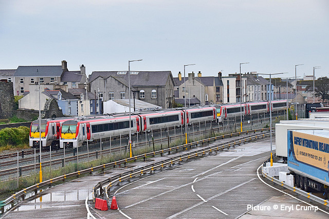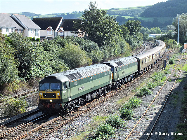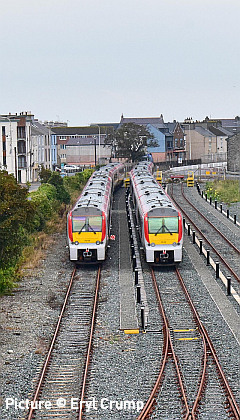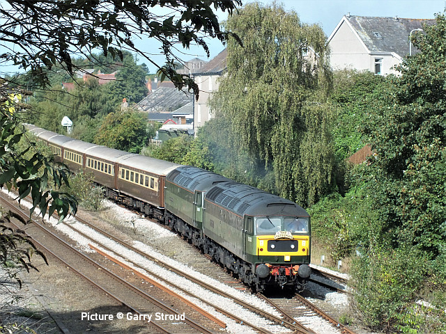 ![]() 230 007 meets 230 009 at Penyffordd, 12 September. Picture by Tim Rogers. Catching the 805![]() Avanti’s new units on the Coast Line: above, on 13 September 805 001, on test to Holyhead from Oxley, passed Llandudno Junction running about 90 minutes early against the Real Time Trains times, running directly behind the Statesman tour. Picture by Garry Stroud. ![]() Geoff Morris captured 805 001 on its return leg. ![]() Geoff writes: 'On 14 September I went to the nearby Northgate Arena car park for a photo of the 805s, this time 851 001 was paired with 805 003.' ![]() Passing Conwy station on the return run (Geraint Williams). ![]() Passing Rhyl Marine Lake (Garin Jones). In other news ...![]() Geoff Morris writes: A few minutes prior to the appearance of the return 805s at (see above) there was the unusual sight of two trains heading west both formed of class 158s. This was due to late running of 158 823 on 07:30 Holyhead – Birmingham International (which was c.30 minutes late and was eventually terminated at New St) that was given precedence over the on-time 08:25 Manchester Airport – Llandudno, worked by 158 830, which can be seen waiting in the distance to follow the pair of 158s as far as Saltney Junction. ![]() A 'Statesman' excursion, 1Z70 05:45 High Wycombe to Blaenau Ffestiniog with 47 810 (D1924) Crewe Diesel Depot and 47 805 (D1935) Roger Hosking MA arrives at Llandudno Junction ... ![]() ... having run round, the pair with D1936 leading heads for the Conwy Valley line, amid some rather untidy ballasting (Garry Stroud). ![]() Another train of EMUs for the scrap man: 37 884 with 508 128 and 508 111 passing through Penyffordd on 11 September. It's reported that 111 will be stored at Crewe south yard, due to lack of room at Sims's sidings in Newport (Bob Greenhalgh). ![]() Crossing the Dee (Tim Rogers). ![]() The Marches line is currently closed between Shrewsbury amd Hereford from 12 to 21 September with buses running between Hereford and Shrewsbury, the main work taking place at Dinmore tunnel, with bus replacements . Trackwork is also being renewed near the Shrewsbury golf course, just south of Sutton Bridge Junction. Graham Breakwell's picture shows the scene alongside the golf course, with 66 848 ticking over at the Hereford end. This work also affects the 'Heart of Wales' line: a bus service is in operation between Shrewsbury and Llanwrtyd. Real Time Trains shows the Margam-Shotton steel trains being rerouted between Newport and Shrewsbury via Gloucester, the Lickey, Camp Hill, Sutton Park, Walsall and Wolverhampton. ![]() The blockade does not affect the aggregate operation at Coton Hill sidings. Tuesday 12 September brought 66 775 HMS Argyll on 4M54 the 11:15 from Purfleet. After loading the next day with aggregate from the local Haughmond Quarry it departed with 6F05, the 19:59 to Wellingborough (Graham Breakwell). (The reason for the name can be read here. ) ![]() The Aberystwyth - Chirk logs on Saturday 16 September ran Shrewsbury, Crewe, Chester instead of Shrewsbury, Chester reverse. Bob Greenhalgh waiting at Balderton was surprise to find 97 303 and 37 405 in charge instead of the usual 56. ![]() 66 745 (Ex-66 406, 66 844) passes Penyffordd on 12 September with 6V75 11:16 Dee Marsh to Margam empty steel carriers (Tim Rogers). ![]() 40 012 Aureol in action at the East Lancashire Railway diesel gala, 16 September (Greg Mape). NMT vs PLPR We described the Network Rail HST-worked train on 7 September as a 'Plain Line Pattern Recognition, train. Andrew Royle, expert on such matters, tells us this is an error: 'To clarify, that was the New Measurement Train that ran along the North Wales Coast on 7 September. If it's a rake of mark 3s, then it's the NMT as a rule. 'The NMT certainly uses Plain Line Pattern Recognition equipment but there are four specific PLPR sets that carry out this kind of monitoring, as well as the NMT. They generally work over the parts of the system not covered by the NMT. Since the regular NMT power cars have been put aside for testing the GSMR system for communication between driver and signaller (43013/14/62), the NMT has been powered by the multicoloured class 43s from Colas; which also see use on the PLPR sets, just to make it confusing. ' A Dull Sunday at Holyhead - report by Eryl Crump![]() A visit to Holyhead on a dull September Sunday showed there to be five Class 175s at rest. Four three-car units were stabled in the sidings alongside the dock road. These are believed to be 175 103, 175 104, 175 106 and 175 112 and are not thought to be in service. ![]() Two-car 175 003 was in a siding close to platform one. I'm not sure if this one is in active service with TfW. ![]() Also present was 67 013 ... and an unidentified Voyager (possibly 221 115), another type soon to be withdrawn from the North Wales line. [Recently a Freedom of Information request from someone asked TfW which 175s are still in service. The reply as of 4 September was 175 009, 175 101, 175 102, 175 103, 175 105, 175 108, 175 109, 175 110, 175 111, 175 112, 175 113, 175 114, 117 115.] From Dave Sallery's archive![]() 43 022 and 43 128 on a Euston service near Abergele, 16 May 1992. ![]() 45 142 on a Trans Pennine service passes through the Courtaulds Greenfield complex, 19 June 1985. ![]() 55966 and 55967, former Class 127 ex-Bedford-St. Pancras ('Bed Pan') diesel-hydraulic cars, converted for parcels use at Stafford, 31 May 1988. ![]() 56 042 passes Prestatyn while on route learning duties, 16 October 1984. This was the one with Class 58 bogies and the first one to be withdrawn. Looking back: North East Steam part 1 - By David Pool![]() In 1954 the trains at Scarborough were still steam hauled, although some classes would soon be withdrawn. The D49 locomotives were often to be seen on local services, and basically comprised the D49/1 “Shire” and the D49/2 “Hunt” classes. The D49/1 locomotives had Walschaerts valve gear on the outer cylinders and Gresley on t