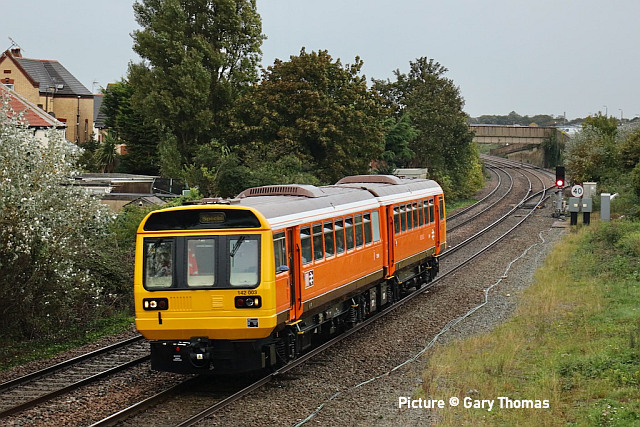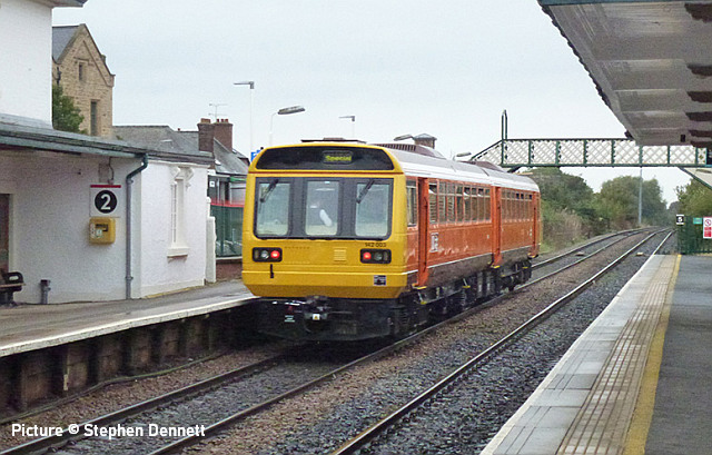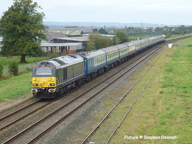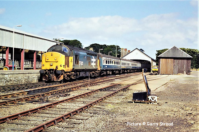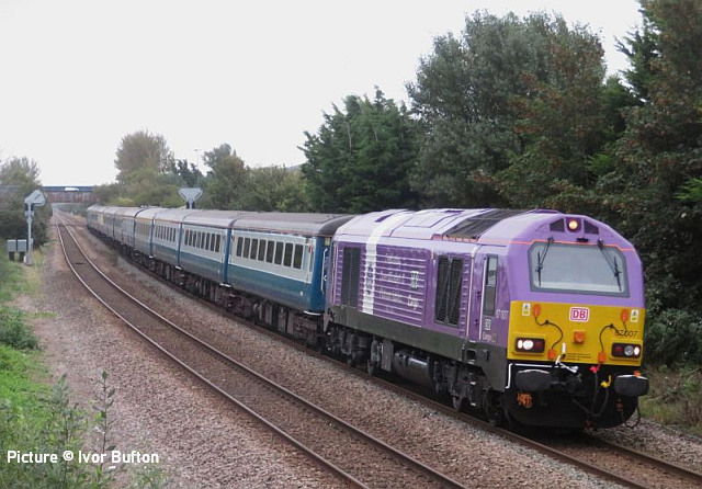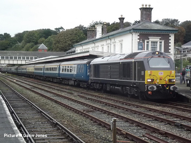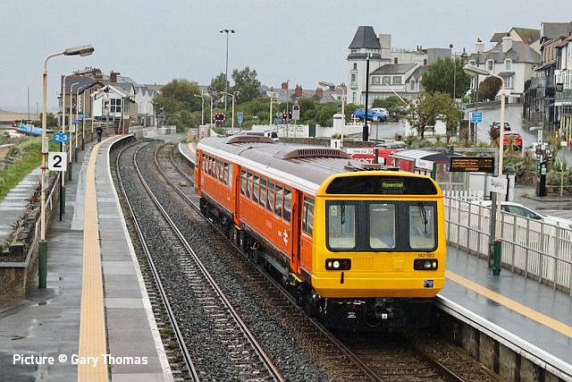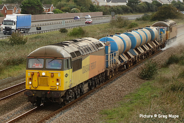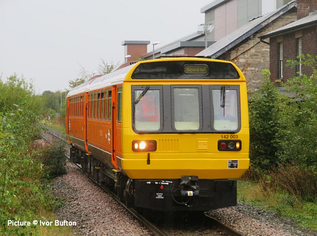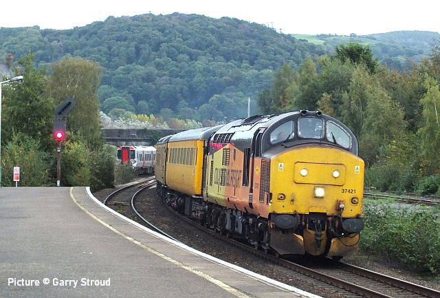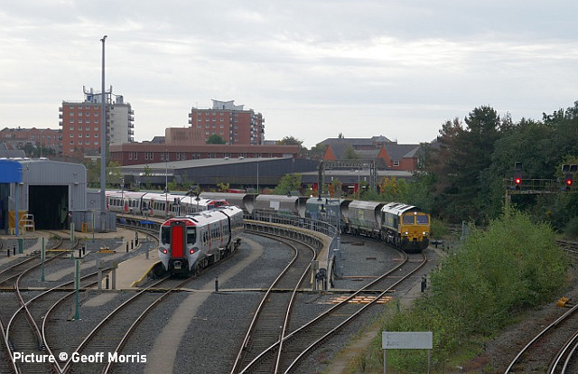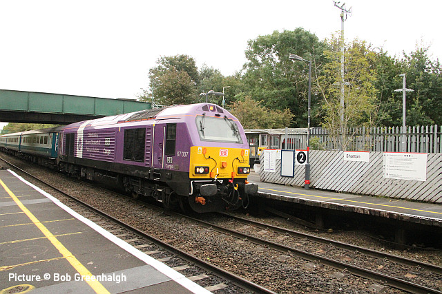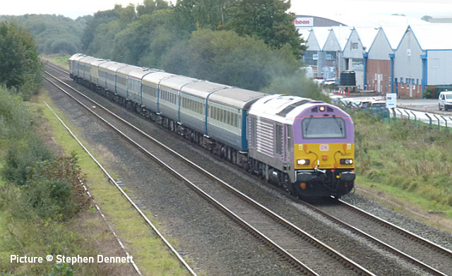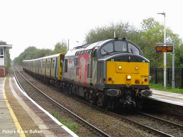 happen? News pictures![]() 66 712 Peterborough Power Signalbox passes Abergele on 25 September with 4D59 09:11 Wellingborough to Llandudno Junction. Empty JNA wagons for slate waste (Tim Rogers). ![]() 37 884 Cepheus passes Penyffordd with 508 130 and 508 117 forming 5Q78 11:55 Birkenhead North to Newport Docks (Simsgroup) for scrapping (Ivor Bufton) ![]() The Rail Head Treatment Train season is upon us - 56 078 leads past Abergele on 5 October (Greg Mape). ![]() 1Q18, Derby to Holyhead Network Rail train on 15 October was unusually 37 powered instead of an HST. Seen at Beeches Farm with 37610 leading and 37421 on the tail as it heads for Chester from Holyhead (Bob Greenhalgh). The Three Faces of 37 421 - by Garry Stroud![]() 37 421 in its Inverness allocated days, in large logo and with the Highland Stag emblem on the cab, 37 421 awaits the right away from Thurso station with the 12:14 service to Inverness. Wednesday 27 July 1988. ![]() In Regional Railways livery and gaining the name The Kingsman, 37 421 approaches Prestatyn with the 13:18 Crewe to Bangor service on Saturday 15 June 1996. ![]() Now in EWS livery, 37 421 passes Llysfaen with the 10:48 Holyhead to Birmingham New St service, on Tuesday 2 May 2000. [An oddity is that when withdrawn by EWS it was bought for the Pontypool and Blaenavon Railway who repainted it in the Regional Railways livery, only for the loco to be taken over by Colas who applied their own colours.] Scenes at Chester - by Geoff Morris![]() The view from the Brook Lane bridge of Chester depot on 2 October: 197 048 on the left, and on the right Freightliner 66 545 with the redundant coal hoppers that are sandwiched either side when delivering 197s to add brake force. ![]() A look at Chester's new gateline. on 3 October saw that the screens that had been shielding the improvement work on the gateline had been removed and that the new (larger) gateline was now in operation. It will be interesting to see how it deals with large passenger numbers particularly as one end is very close to the bottom of the overbridge. ![]() My walk home on 3 October took me over the Hoole Road bridge where I saw one of the few remaining class 175s - 175 114 - in service had just arrived in platform 2 on the 14:33 Holyhead – Cardiff. I took the chance of getting a couple of photos of it with the 'new' 777 002 ... ![]() ... and the “old” 221 102 passing. It’s salutary to think that both the 175 and 221 will soon be a thing of the past in Chester. The Snowdonian![]() 67 007 at the head of 1Z67, UK Railtours 'The Snowdonian' from London Euston to Bangor as it passes Beeches Farm on 30 September... ![]() ... 67 005 Queen's Messenger on the rear. Pictures by Stephen Dennett who notes: 'I like Beeches Farm between Saltney Junction and Sandycroft as a viewpoint with excellent sight lines in both directions. You have to be careful of the traffic on the bridge, though, if you have to dive from one side of the bridge to the other, as in this case, with a 67 on both ends of the special.' ![]() Shotton Low Level (Bob Greehalgh). ![]() 67 007 approaches Rhyl on 30 September running as 1Z67 06:51 London Euston to Bangor (Snowdonian by UK Railtours)... ![]() ... 67 005 Queen's Messenger is the tail engine (Ivor Bufton). ![]() Bangor (Garin Jones). A visit to Flint - by Stephen DennettI spent 40 mins at Flint Station last Wednesday ducking and diving in and out of the rain, and trying to avoid getting in the way of the people working on the station upgrade. The Grade 2 listed building is closed at the moment, with access to Platform 2 from the car park through the “after-hours” gate, with ticket machines on either side instead of a friendly chat at the booking office. ![]() 1H86 ran from Rhyl to Manchester Airport, having been cancelled from Llandudno “due to the late arrival of the inbound service”. 197 046 was new to me. ![]() 158 822 arrives at Flint with 1D12, Birmingham International to Holyhead. 158 831 was the rear half of the service. ![]() 197 009 arrives at Flint with 1D35, Manchester Airport to Llandudno Junction as 197 051 leaves with 1V95, Holyhead to Shrewsbury. More 197s are out and about now. This was the first time I had seen 197 051, the last-numbered of the 197/0s. ![]() 1D34 Manchester Airport to Holyhead does not stop at Flint. The main attraction was the “Pacer” on the special from Wilmslow to Llandudno and return (see below). It looked good in GMPTE livery. I never thought I’d use the words 'Pacer' and 'Main Attraction' in the same sentence! The St Tudno Wanderer![]() Running empty from Crewe, 142 003 passing Alderley Edge at 09:00 on the Locomotive Services (Inter-City branch) railtour 'The St Tudno Wanderer' from Wilmslow to Llandudno, 27 September (Greg Mape). The tour went from Wilmslow via Manchester, Eccles and Liverpool (Reverse), then via the Halton chord to Chester and Llandudno. ![]() On the Halton Curve at 11:09 (Greg Mape). ![]() Crossing the Shropshire Union Canal at Chester at 11:37 (Geoff Morris). These units could, from the 1980s, be found on the North Wales line; not just on the local services as you might imagine, but on long-distance runs between North Wales and Yorkshire which had previously been loco-hauled. They were tried on the Conwy Valley, but removed due to complaints about the squealing noise on curves. ![]() Flint at 10:55 (Stephen Dennett). Perhaps surprisingly, all the tickets for the tour were sold. ![]() Prestatyn at 12:07 (Ivor Bufton). ![]() Passing Rhyl Marine Lake at 12:19 (Gary Thomas). The train (along with some service trains) was 15 minutes late on the run from Chester due to a track defect near Rhyl. ![]() Llanddulas viaduct at 12:31 (Greg Mape). A considerable number of these 1980s units, with bodies based on the Leyland National bus, have been acquired by preservation groups for use on lightly-loaded; there seems to be an idea that the general public line a train ride, and a Pacer is something different. ![]() 