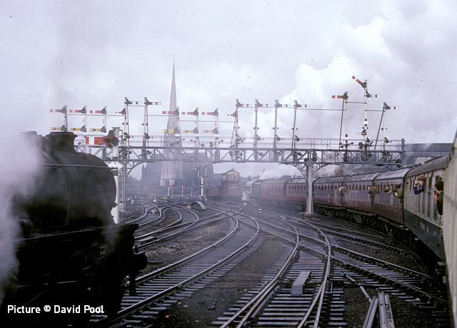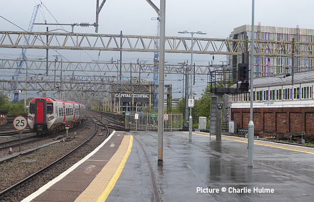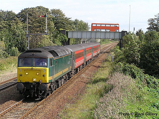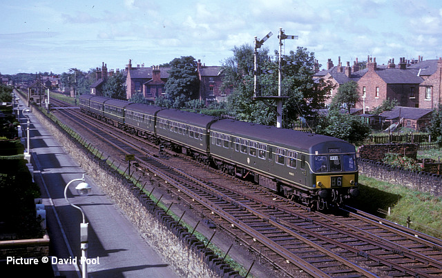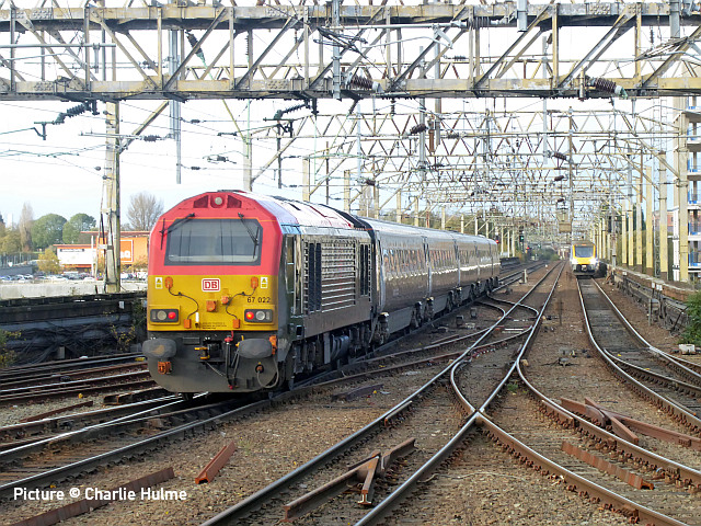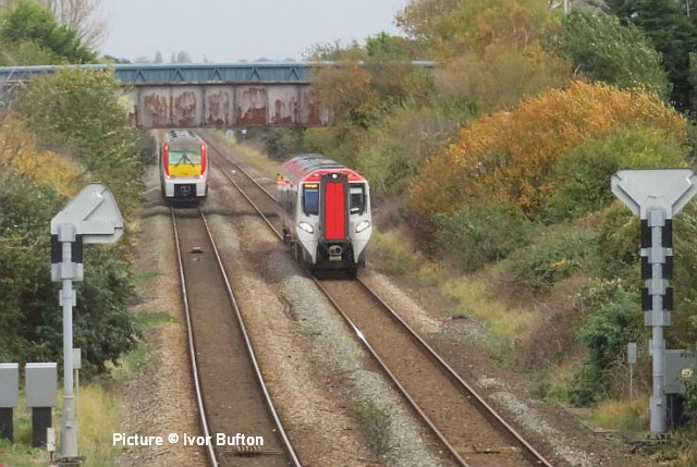 ![]() 67 022 propels the 10:52 Cardiff - Manchester out of Stockport on 1 November. The train had left Cardiff 17 minutes late, and was still 17 minutes late. A quick turnround at Piccadilly reduced the delay to 3 minutes for the return trip, but arrival at Cardiff was 20 minutes late. On the slow line, 331 029 working the 14:06 Manchester - Crewe local. Miscellany![]() Old and New: On 1 November 175 106, working 5W79 empty stock 10:05 Holyhead to Landore depot and an uncertain future, passes 197 012 on 1D34 09:25 Manchester Airport to Holyhead near Rhyl on 1 November. The day before, 175 007 travelled from Landore to Holyhead. What's happening? ![]() 67 013 stabled on 31 October in the east-side refuge siding at Hereford with wheel chocks in place. It’s parked right next to the “Mobile Tyre Fitting” service, though I doubt they fit tyres to class 67s ... ![]() ... In the shadow on the left of the picture above is the rear of 6V75 Dee Marsh to Margam in the Down Through Line. This was headed by 66 711 Sense in Aggregate Industries livery, “Sense” apparently being the name of the river that runs through part of Aggregate Industries quarry at Bardon Hill near Coalville in Leicestershire. I had a good look at the wagons in the consist. For most of them there is evidence of heavy recent maintenance on wheelsets, bogies and couplings, possibly following on from the coupling mishap north of Church Stretton earlier in the month which damaged track and debris from which punctured a fuel tank on a passing TfW Class 150/2 (John Oates). ![]() 66 591 approaching Abergele on a the very wet Sunday morning 5 November after delivering a load of new track (Greg Mape) ![]() Autumn Steam at Llangollen on 5 November (Greg Mape). The next trains will be the 'Santa Specials' in December. ![]() Another view from Stockport, on 9 September: 197 001 heads for Manchester. Tower blocks are sprouting all around: The 'Capital Centric' building is remarkably close to the viaduct. The letters have since been removed. By contrast, Stockport No.2 signalbox, containing 90 levers, built in 1890, although many are no longer used (Charlie Hulme). ![]() On Saturday morning 4 November from the 3rd floor of the Holiday Inn Express Hotel adjacent to Stockport station here is 156 455 arrived into platform 1 at 08:55 with 2J44 0830 Stalybridge to Stockport. Unusually, it then departs from platform 1 northbound crossing over to the Down Fast with 2J45 09:04 Stockport to Stalybridge Saturdays Only. (John Oates) 197 statusChris Scott writes: 'It is noticeable that the 197s from 022 to 041 are conspicuous by their absence at present. These are the ones to be fitted with ERTMS for the Cambrian lines. These units in the main are currently stored in the high-security Donnington freight depot. The 197s kept there do not have their numbers attached, but I can confirm that amongst amongst them are 022 to 028 inclusive, 037 and possibly 123. 175 Stories - by Charlie Hulme![]() The early days of the 175s were recorded in detail by our contributors and contacts in the company. Someone sent me a document with detailed engineering design of the trains; I posted this on the website, resulting in a hasty email from North Western Trains insisting that this should be taken down (I did), and would you mind telling us who gave it to you (I didn't). ![]() Now long forgotten, the centre cars of the three-car 175s were equipped for 'entertainment', provided from some kind of CD-changer device; I recall that the CDs were selected by a couple of staff browsing in the Manchester HMV store. It seems that some sort of 'premier class' which was never implemented. The system was seldom used, was soon abandoned. Another example of 'early tech' was the display and that tell passengers that the train is approaching a station. No fancy GPS in those days: the data from a device which counted the number of times the wheels turned. Staff rode a train along the route, and noted the number at the requisite position. Sometime in this early period, I was persuaded to ride one of the new trains accompanied by a BBC radio reporter who obviously had been expecting me to praise the wonderful new trains. I was sceptical, raising problems of overcrowding, and when the chosen train pulled in to Piccadilly, the two coaches were packed to the gunnels with passengers, and we could not board. I don't think my comments made the programme ... From Dave Sallery's Archive![]() 175 007 on a down service near Abergele, March 2007. ![]() 37 706 and 37 893 on the RHTT at Rhyl, 4 October 2004. ![]() 47 815 at Rhyl on a down additional service, 3 April 2005. This loco is still in use, now in Rail Operations Group blue. An unusual event involving this loco when it was 47 155 is chronicled in on the amazing Class 47 website: acting as a generator at a power station. ![]() 47 832 near Prestatyn on the 10:00 Manchester - Holyhead (started at Chester on this day) on 3 September 2004. A Great Western liveried loco hauling Virgin-liveried coachesOne of the Voel bus company's finest passes over the road bridge in the background. Looking back: Lancashire lines Part 2 1965-1968 - By David Pool![]() There must have been some engineering work taking place on Sunday 8 August 1965, as the 10:10 Liverpool Exchange to Blackpool South had been diverted. In those days there would have been no appetite for bus substitutions, so the train had been routed via the electrified line to Southport. The first three car set is a Class 101, with M50335 leading, while the second 3 car set is a Class 110. They are signalled to take the South Curve at Southport, heading towards Burscough Junction. The direct line from Southport to Preston via Hesketh Bank had been closed, but the North Curve at Burscough was still available at that time for trains to Preston. ![]() On 9 June 1967 I had left home early to travel to Devon on the Car Carrier (Motorail) service from Newton le Willows to Newton Abbot, which departed at