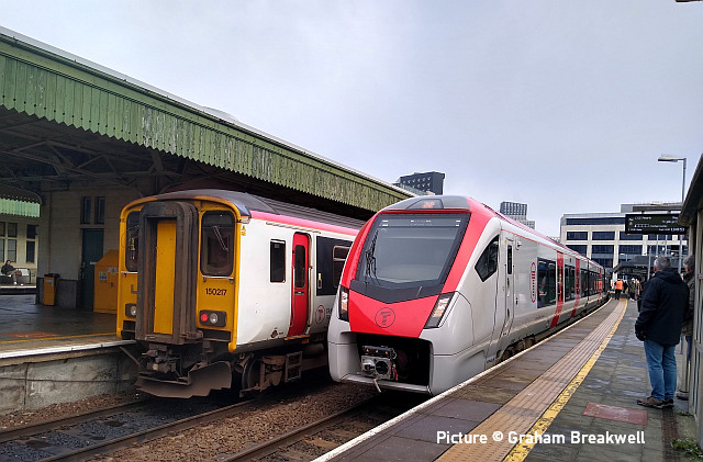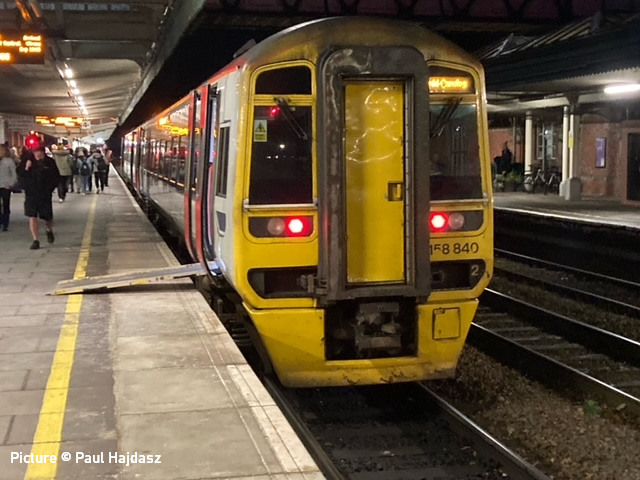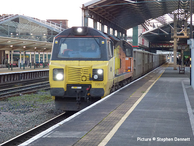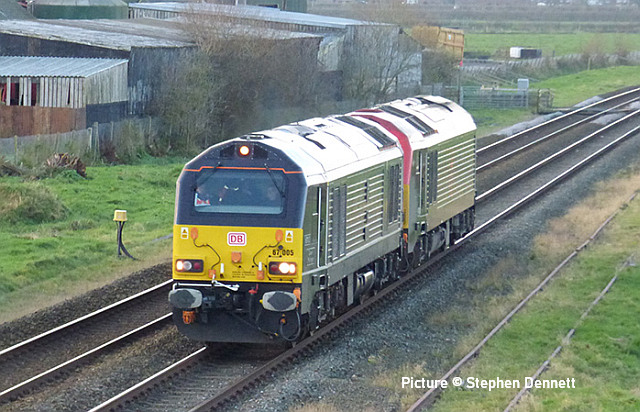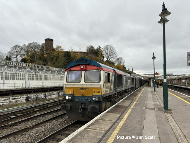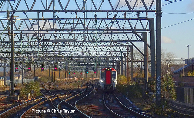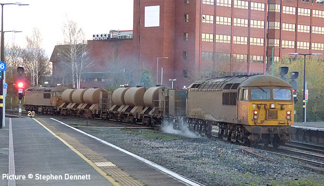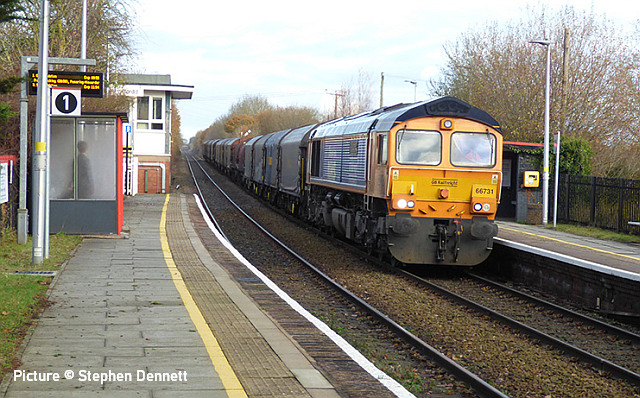 ![]() Amid an array of gantries and signals, 197 017 arriving at Manchester Piccadilly on Thursday 30 November on the the 14:25 Manchester Airport to Llandudno. Picture by Chris Taylor. News pictures![]() Friday 1 December saw a light loco move from Clitheroe cement to Penyffordd cement, 66 722 Sir Edward Watkin seen at Balderton crossing (Bob Greenhalgh). ![]() The stone trains from Penmaenmawr to Longport have resumed: on 29 November 70 017 passes Beeches Farm (Bob Greenhalgh), ![]() The other type of Rail Head Treatment Train, the Mon-Fri run from Chester to Wrexham and back, seen here at Green Lane crossing on 29 November, DR93951 leading (Bob Greenhalgh). ![]() On 30 November the New Measurement Train with 43 277 leading (43 013 on the rear) enters Llandudno Jcn, with the 1Q30 10:55 Derby to Holyhead run (Garry Stroud). ![]() 67 014 departing on the 14:30 Manchester Piccadilly to Cardiff on 30 November: departed 2 minutes late having arrived from Cardiff 10 minutes late. Picture by Chris Taylor, who comments: 'I fail to see how Cardiff and the Welsh Government manage to screw-up such a service other than it is mostly in England - is this deliberate? On 30 November the 12:30 Piccadilly to Cardiff was a single 2-car 197 (instead of a 67), and the 13:30 was the same: both trains left Piccadilly with passengers standing. On the previous day the 12:30 from Piccadilly was three 153s. Is it not about time the ORR and the UK government took Transport for Wales to Task?' On the Dee Marsh Steel - by Driver Jim Scott![]() On Monday 20 November 66 792 Collaboration on the Dee Marsh steel train in the arrivals siding at Shotton steelworks. ![]() Waiting for the signal at Hawarden Bridge. ![]() Hereford with a 197 heading north. ![]() Tuesday saw a loco swap for ‘celeb’ 66 747 in NWT livery named Made In Sheffield, again in the arrivals siding. ![]() Waiting at Hawarden Bridge again, plenty of time to get a photo from the other platform. ![]() Waiting in Shrewsbury. ![]() Thursday morning in Hereford, Chirk to Baglan Bay logs waiting to head south. ![]() Steelworks ‘internal shunter’ 08 823 Gavlar coming to pick up the inbound wagons from the exchange sidings to take them into the works. A visit to Cardiff - by Graham Breakwell![]() Firstly, two from the roof garden of the Jacobs building with its panoramic view over the station and the complex of overhead wires. New FLIRT 231 003 is departing on a Penarth to Ystrad Mynach service... ![]() ... Followed by 153 362 on a Radyr to Coryton trip with 150 255 entering the station with an Aberdare to Barry Island service. ![]() Old and new, 150 217 in platform 7 and alongside in platform 8 FLIRT 231 003 on a Rhymney to Penarth run. TfW are building up their fleet of Stadler FLIRT Class 231s (Fast, Light, Intercity and Regional Train), with the 11 four-car trains now all in service, with another 24 class 756 tri-mode units to follow. I was very impressed with the quality of the ride, comfort, spaciousness, rapid acceleration and step-free access with the platform. ![]() The power pack of four diesel engines are housed in a short centre vehicle, two on each side of the narrow corridor running through the middle. ![]() The articulated bogies at each end connect with the adjacent passenger coaches with the end seats mounted on a raised platform to provide clearance for the wheelsets. Santa special![]() Bob Greenhalgh writes: On Saturday I ventured out to see the 14:00 Llangollen departure Santa train, seen above an Berwyn with D5310 topping and pannier tank 7754 tailing but pushing hard. Next weekend it's the Bala Santa trains, all fully booked: as the website says, cannot wait! Borderlands newsFrom the start of the new timetable, from 11 December, the Wrexham - Bidston trains will run on a 45-minute frequency, operated with two Class 197 units and one Class 230. Later, it is hoped that there will be two 230s and one 197. The trouble with such a system is that passengers will have to consult the timetable for every journey unless they have a very good memory for numbers. Looking at Real Time Trains, the number of train departures each day in the new timetable appears be the same, and turnround at each end is still four minutes but the trains should be able to run to time. Out and About - with Stephen Dennett![]() A selection of my photos from the last fortnight. More variety of engines on the “steel” these days, as seen on 22 November at Buckley with 66 747 ,,, ![]() ....and 28th at Buckley and Penyffordd. ![]() Royal Scot Class 46 115 Scots Guardsman charges through Helsby station on 24 November with empty stock from Carnforth to Chester ready to form "The Capital Christmas Express" from Chester to London on the following day. ![]() Scots Guardsman rests at Chester having arrived from Carnforth to Chester with ecs, ready to form "The Capital Christmas Express" from Chester to London on the following day. ![]() 70 817 at Chester with 6M33, Penmaenmawr Quarry to Longport LR. Taken at Chester, also on 24 November... ![]() ...and very grimy 56 051 and 56 113 leave Chester with the daily RHTT circuit from Coleham. ![]() Black 5, 44871, stalwart of the 'Jacobite' at Chester ready to return with "The Christmas Cheshireman" to Bristol on 25 November. ![]() 777 011 arrives at Capenhurst with a service from Liverpool Central to Chester. Taken at Capenhurst on 25 November. The new 777s are now well established on the Chester circuit from Liverpool. ![]() 67 005 Queen's Messenger passes Beeches Farm together with 67 020 running as 0M57 Holyhead to Crewe depot. 28 November. ![]() On 28 November 43 277 leads the New Measurement train through Flint station running as 1Q30 Derby RTC (Network Rail) to Derby RTC (Network Rail). ![]() 197 043, 1 197 new to me, leaves Flint with 1H88, the Llandudno Junction to Manchester Airport service on 30 November. A Day Rover - report by Paul Hajdasz![]() I decided to go on a North Wales day rover on 30 November as it was sunn