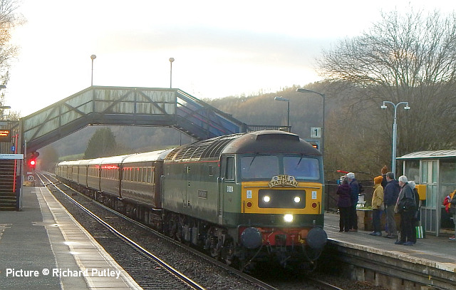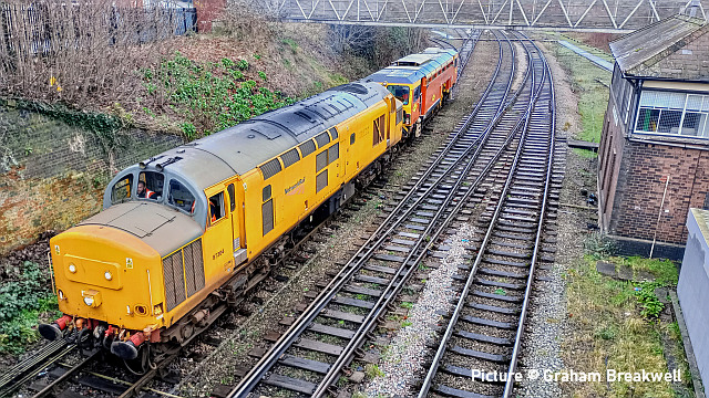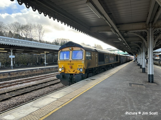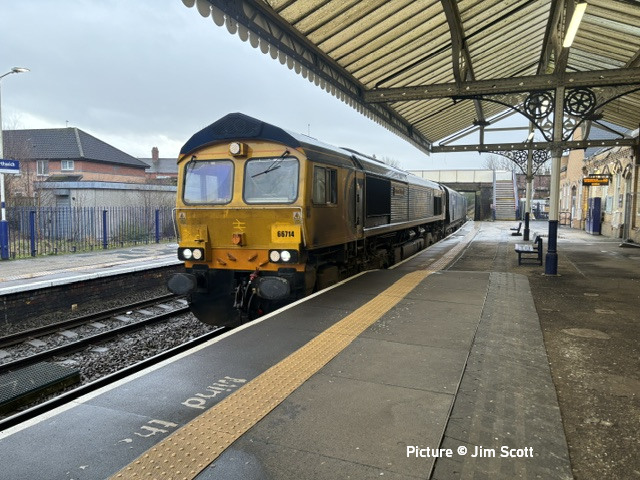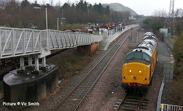 ![]() A splendid picture by Tim Rogers of 37 415 passing Sandycroft on 8 January 2000. Those were the days ... News pictures![]() 97 304 waiting in the shunt neck at Sutton Bridge Junction before delivering a Colas Rail tamper to Talerddig on 4 January. Note the absence of the John Tiley nameplate (Graham Breakwell). ![]() Another of the new Avanti class 805, 805 006, made an appearance in the last week Thursday and Friday. There were three runs from Chester planned: two to Rhyl and back and one to Llandudno Junction. In the end the third run to Llandudno Junction stopped short at Rhyl. Here are two photos from the 4 January, with the first run returning to Chester at Talacre (above) ... ![]() ... followed by the second run returning to Chester at Gronant (Gary Thomas).. ![]() Rhyl (Ivor Bufton). There will be 13 of these Hiatchi bi-modes to work London - Chester - Holyhead and London - Shrewsbury services. Presumably the daily London - Wrexham, worked by a unit detached at Chester from a London - Holyhead service, recently started after a period of bus substitution, will also continue. ![]() At Hereford this lunchtime, 8 January a rather dirty 66 766 Gail Robertson heads 6V75 09:31 Dee Marsh to Margam waiting to follow the 08:06 Holyhead to Cardiff operated by 197 017 (John Oates). ![]() 7812 Erlestoke Manor oozing steam at Hampton Loade at the Severn Valley steam gala, 6 January 2024 (Dave Sallery). [This Cambrian stalwart was the first and only 'Manor' I saw in British Rail service.- Charlie] News from the Forums: 197 104 suffered an underfloor 'thermal incident' at Manchester Piccadilly on 5 December, the fire promptly extinguished by the under-carriage fire-suppression bottle. Apparently there is also an issue possibly with all 197s, connected with the bogies, and all sets have to be checked. On a brighter note, 197 115 - the first to appear of the batch (113 - 126) with a first-class section has been noted in traffic. Seen at Chester (1) - by Geoff Morris![]() On Monday 8 January I noticed on Real Time Trains an STP (Short Term Plan) from Birkenhead North TMD to Crewe TMD timed for a class 230. These units have been notable by their absence from Chester since they were based at Birkenhead North and so I thought it worth a look, particularly as they were scheduled to run through to Crewe. ![]() 30 minutes early running from Wrexham meant that I had barely got to the Northgate Arena car park when 230 008 and 230 009 passed through but, fortunately for me, they were then held in Chester station to await their booked path to Crewe. ![]() This allowed me time to get to the station and take a variety of photos of them together with Voyagers 221 111 and 221107 on the 15:32 Chester - London. ![]() ... and Northern 195 114 on the 15:28 to Leeds. Seen at Chester (2) - by George Jones![]() Thursday 4 January I arrived at Chester 14:30 from Lime St via Runcorn to find 197 120 in the avoiding lines and noted the 'Made in Wales' bilingual message as a TfW promotional opportunity. (Depends what you mean by made as produced by CAF). ![]() It was in January 2023 that a ceremonial launch (one of several?) was held at Llandudno Junction with the first 197, Although one entered traffic on the Conwy Valley earlier. ![]() Also present DR73015 a Plasser & Theurer Unimat 09-4x4/4S Dynamic Tamper indicating a big job due somewhere soon? [A dynamic tamper differs from a conventional machine in that the conventional machine needs to stop and start as it “tamps” the ballast. This machine, however maintains constant movement. The tamping banks are in effect separate from the machine (Satellite system) itself making it more efficient and able to carry out tamping while the machine is still moving. Read more,] Interesting too: 777 002 was out of service in platform 7a awaiting recovery by the 14:57 departure back to Merseyside; seemingly the problematical battery option to Headbolt Lane is not the only issue with these new units,A A comment from elsewhere suggests TfW will have to issue a statement on the future of the 230s which remain unreliable on the Bidston line where the newly allocated 197s show them up for reliability ... and the disappearance of 150s will eventually mean North Wales is a 197-only zone to add to the boredom! More Log Manoeuvres![]() Vic Smith captured these scenes at Welshpool on 30 January. ![]() Locos 97 304 and 97 303 ![]() The two locos moved to the siding. ![]() Bach home at Coleham, 2 January (Graham Breakwell). Shropshire Sightings - by Richard Putley![]() The weekend of Saturday 6 January I had been toying with going to either the Severn Valley or the Swanage Railway, as both these lines had Galas on. But I have visited both recently. In the case of the Severn Valley, less than a fortnight ago: Wednesday 27 December to be precise. > That day I was lucky enough to see visiting ex US Army 2-8-0 2253 Omaha running and get hauled by it (above). ![]() It was only on the evening of Friday 5 January that I found out that there was a Statesman Charter train running from Hereford to Appleby-in-Westmorland on Saturday 6 January. So I got up very early and drove to Craven Arms to photograph it. I arrived there in good time and was > able to see the 05:30 Swansea to Manchester Piccadilly, formed by 150 231 call just as a 67 + Mk4 sped south on the 06:27 Manchester Piccadilly to Cardiff service. ![]() The Statesman arrived about 08:45 and was hauled by 47 810 Crewe Diesel Depot ... ![]() ... with 47 593 Galloway Princess on the rear. ![]() Afterwards I saw 150 264 arrive with the delayed 05:49 Swansea - Shrewsbury via the Heart of Wales service while 153 353 took the Heart of Wales line with the 08:56 Shrewsbury to Swansea service. ![]() Later in the morning, GB Railfreight 66 779 Evening Star hauled the Dee Marsh - Margam Steel empties. This was an added bonus which rounded up the morning nicely. Biomass at Christmas - report by Driver Jim Scott![]() I drove the diverted Biomass trains f