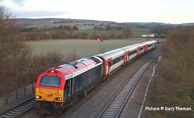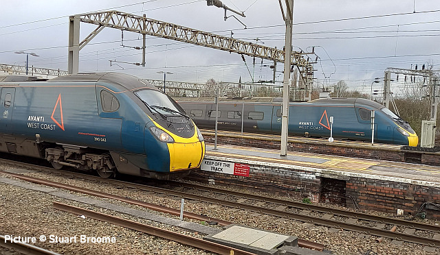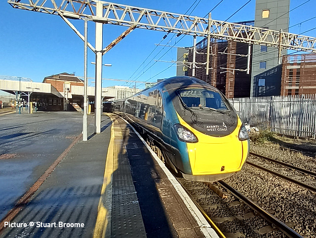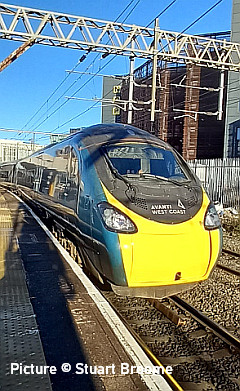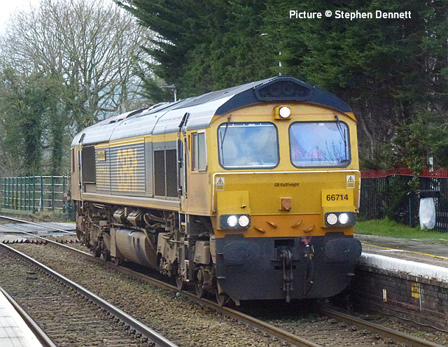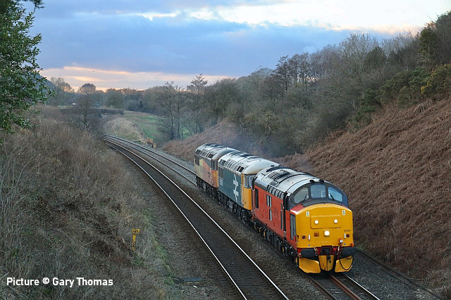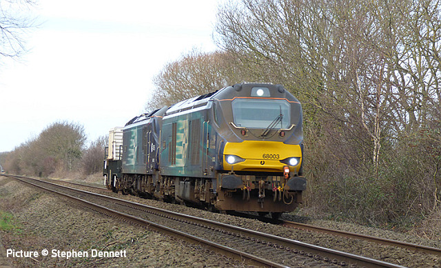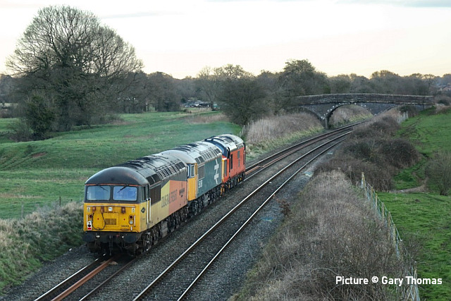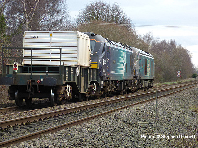 ![]() A snowy Timperley scene on 16 January: Hams Hall GBRF to Hindlow GBRf with 66 798 Justine in charge. Picture by Greg Mape. We've received from contributors some very interesting 'heritage' images: we'll make an extra issue of them which will hopefully appear on Saturday. Thanks as always to all our supporters - Charlie. More from last week - pictures by Gary Thomas![]() 67 022 passing Craven Arms with the 05:30 Holyhead - Cardiff on 15 January... ![]() ... Shortly afterwards 37 800 passed hauling 508 114 and 508 108 to the Newport scrapyard. The very last class 508 in service, 508 104, was withdrawn from service on 16 January, and will soon be making the same journey. ![]() On the same day, 66 734 Platinum Jubilee passed Tattenhall (with Beeston Castle in the background) with a rake of wagons for loading with (we think) limestone for Wembley, ![]() Back at Bunbury, 37 405 hauls 56 098 and 59 049 from Chester to Colham ... ![]() ... having been 'dumped' after failing with a log train the day before. ![]() 16 January saw one of DRS's periodical trips to Valley; although the Wylfa power station is closed down, they are keeping the 'path' for possible future need. The locos are 68 003 and bi-mode 88 002, seen near Valley on the return to Crewe. Freight selection - pictures by Stephen Dennett![]() Loco change at the cement works: 66 714 Cromer Lifeboat arrives light engine at Penyffordd station with 0G66, Tuebrook Sidings to Penyffordd Cement loco change on 8 January. ![]() 66 766 Gail Richardson rolls through Buckley station with 6V75, Dee Marsh to Margam returning steel empties. Gail is a Production Assistant at GBRf. Taken at Buckley station on 10 January, There's much more locomotive variety on the steel run these days. ![]() The Chester - Crewe line has several bridge-based viewpoints: this is 66 734 at Waverton on 15 January heading for the Coast. If the line is ever electrified, all the bridges will have their walls raised, use them while you can! ![]() Another view of the DRS trip on 16 January, with 68 003 Astute ... ![]() ... and 88 002 Promethius Seen from the foot crossing between Flint and Bagillt. Scenes at Stockport 7 January - by Stuart Broome![]() 390 134 on 1A41 12:55 Manchester Piccadilly to Euston unusually in platform 1 due to a Norwich service delayed in platform 2. ![]() 390 153 on 1H06, 07:53 Euston to Manchester at platform 4, 115 minutes late and 390 043 on 1H63 08:33 from London in platform 3, 79 minutes late at Stockport due to signalling problems near Euston. ![]() In the siding, 69 009 on 0Zz08 Doncaster Decoy to Crewe Basford Hall. Bubble Car at Chester ![]() According to reports, steam loco 70000 Britannia was scheduled to make a test run around the Coton Hill circuit on22 January and so I went out to video it. However 70000 had not been ready to run so LSL made use of the path to give an outing to their recently converted (and heavily upgraded internally) class 121 "bubble car" 55022. ![]() Here are a couple of video stills of the car (named Flora) passing Chester Walls. The Highland heroine Flora Macdonald and the Caledonian Railway livery suggest that it will be used on the West Highland line, where it has recently has trials. Shrewsbury events