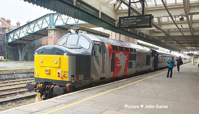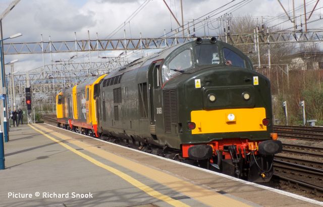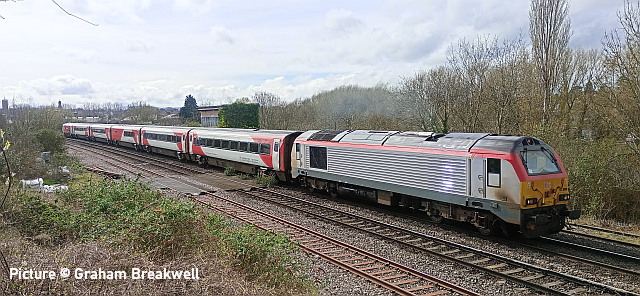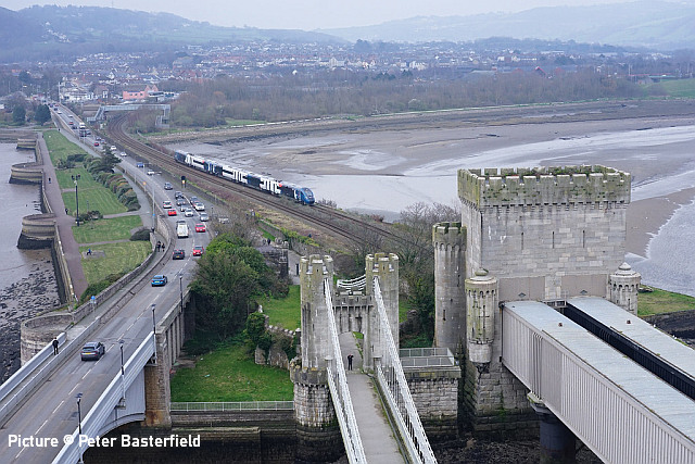 ![]() Seen at Rhyl on 21 March are 197 049 (1V96 12:33 Holyhead to Cardiff Central) and 43 062 John Armitt with 43 013 Mark Carne CBE (1Q30 10:54 Derby R.T.C.(Network Rail) to Derby R.T.C.(Network Rail) via Holyhead. Picture by Ivor Bufton. News pictures![]() This Network Rail image shows the quantity of material needed to repair the landslip at Oakengates. Graham Breakwell writes: 'The Wolverhampton-Birmingham line re-pened on 29 March and services re-started, but stopped again soon afterwards when a train hit a shopping trolley at Telford Central!' ![]() Thursday 28 March saw 5W78 07:43 Crewe South Yard to Swansea Landore passing Shrewsbury 87 minutes late with a 3-car 175 112 on transfer. Hauled by a spotless 37 611 Denise and followed by a barrier vehicle, 175 112, another barrier vehicle and tailed by an equally-spotless 37 901 Mirrlees Pioneer which was ticking over (John Oates). ![]() The movement of redundant Merseyrail trains has re-started. On 27 March 37 800 Cassiopeia and 507 020 and 507 031 with 5Q88, the 08:55 from Birkenhead North depot to Crewe South Yard. ![]() ... and 67 008 shows off its five coaches and 82 226 on the rear with 1W57, the 10:52 from Cardiff to Manchester. (Graham Breakwell). ObituariesWe are sadden to hear that two of our long-time supporters have passed away recently. We offer our condolences to the friends and family of both of them. His many contributions to the website were always very welcome. Larry Davies, retired Police Officer and former Conwy Valley Community Rail Officer was a well-known figure among the railway fraternity in North Wales. He often gave talks to local societies, indeed one was scheduled this month entitled ' Fond Memories - featuring some of my favourite times on the railway over the last 60 years.' Martin Evans was for 18 years a station adopter at Ruabon station, and a director of Severn Dee Travel, operators of the Ticket Office and cafe at Gobowen station. He was also a supporter of the Llangollen Railway. His death came as a shock, as it was only a few days previously that we received his report on the Glyn Valley Tramway. Peter Basterfield's view![]() With the re-opening of the Marquess of Anglesey's column , and my volunteering there, gives me the opportunity to climb the 115 steps to the top (and save £9.50!) yesterday's double Voyager comes off the bridge at 12:20 on 27 March. ![]() 66 765 seen through the old Platform 4 on 22 March having arrived after its 10 hour and 295 mile journey from Tonbridge West Yard. it would return at 02:00 Saturday to Ashburys via a loco runround at Stalybridge. It would then return to Tonbridge later in the day! ![]() On 21 March the Derby to Derby New Measurement train crosses the Cob at Holyhead, the day after the iconic chimney was taken down. ![]() A double Avanti crosses the Britannia Bridge, taken from the promenade by Church Island on 7 March. ![]() Hitachi test/ training run from the top of the castle tower on 23 March. Avanti naming![]() The item in the last issue regarding names for Avanti trains has generated some interesting comments and information. Roger Smith writes: Class 395, and Class 800 through 810 (not all class numbers are in use), are Hitachi AT300s. Each has been given an operator's 'eye-catching' brand name (Javelin, Azuma, Paragon, etc.) except Class 803, 805, and 807, the last two destined for Avanti. Perhaps Avanti should organise a public-naming competition to coincide with the introduction into service of its Class 805 and 807. [GWR are one exception to the above, unless 'Intercity Express Train' is counted as a name. They prefer to name individual power cars.] There is at least one unofficial 'in-house' name for them. When I was at Warrington Bank Quay Station preparing to photograph an approaching Class 805, one of a Pendolino crew standing beside me said to the other, and with glee, "Oh, look, it's a plastic Pendolino". The picture, above, is 11:45 (5Q13) Lancaster to London Euston empty coaching stock test run on 6 March. Chris Coxon has unearthed this on the Avanti website : 'Global naming agency Schwa, whose team were behind such names as Ocado, were enlisted to lead the session. Their aim was to coax out as many good ideas as possible from Avanti West Coast colleagues and participants from the wider railway industry including Hitachi, train financiers Rock Rail and consumer watchdog Transport Focus. Sarah Copley, Executive Director Commercial at Avanti West Coast said, 'The reason behind this is because the name of our new fleet must mean more to our people, our communities, and our customers. It should stand for something bigger. A title that gives the world a glimpse of what we aim to achieve which goes beyond A to B. 'We want to inspire. A name that reflects the heritage of the routes we serve which is why we invited representatives of our network to bring a different spark and knowledge to this search. The new name is expected to be announced later this year [2022!] when the trains are expected to start the extensive programme of testing.' Chris comments: 'Why not arrange, at de minimis cost, exempli gratia a public competition to select names for the 805 fleet, and for the 807 fleet? Perhaps Samantha Dixon, MP for the City of Chester, and a regular customer of Avanti West Coast might like to consider holding this company to account for wantonly squandering the public purse, and for allowing it's management to be distracted from focussing on improving it's woeful punctuality and reliability.' [They will serve ports at Liverpool and Holyhead - how about names of famous sailing ships?] Loco miscellany - by Richard Snook![]() Observed outside the EMD works at Longport on 11 March was GBRf loco 69 009, converted from 56 060, in maroon livery with cast numbers and Western Consort nameplated similar to the livery applied to the Western class Diesel-Hydraulics. 56 081, alongside, also a GBRf loco, repainted in original BR Blue, as been active recently bu