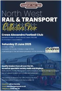 01 April 2024![]() ![]() ![]() ![]() ![]() Contributions to the Notice Board are welcome, although they may not always be used, due to time constraints, especially if they don't follow the advice and file name convention given on the Contributions Page. Forthcoming events Charter trains and meetings may be subject to cancellation or postponement. See our Calendar Page for club, society and tour operator details. April 2024 Thursday 4 April Pathfinder Reading - Pwllheli via Crewe Friday 5 April Clwyd Railway Circle Cancelled Friday 5 April Midland Pullman Plymouth to Llandudno Friday 12 April. Altrincham Electric Railway Preservation Society David Beilby. "Transport around the World by GEC and its predecessors". A joint meeting with the Irish Railway Record Society Manchester branch. Thursday 18 April Pathfinder Tours The Cambrian Coast Express East Midlands Parkway - Shrewsbury - Pwllheli Thursday 18 April Midland Pullman Wolverhampton - Chester - Carlisle Tuesday 23 April Midland Pullman Chester - Aviemore May 2024 6 May Statesman Woking - Llandudno via Bath Spa and Crewe for Llandudno Victorian Extravaganza Thursday 16 May Pathfinder Tours The Cambrian Coast Express Cardiff - Pwllheli Saturday 25 May Railway Touring Company Manchester Piccadilly - Llandudno and Holyhead Steam: 5596 Bahamas June 2024 8 June Vintage Trains Dorridge - Blaenau Ffestiniog Steam and 47 773 via Crewe. Diesel on Blaenau branch 21 June Northern Belle - Crewe Two tours - lunch and afternoon tea. Round trip from Crewe via pickups at Chester and Wrexham. Saturday 22 June Midland Pullman Holyhead - Carlisle ![]() Saturday 22 June North West Rail and Transport Collector's Fair, Crewe Alexandra Football Club 10:00 - 3:30 Thursday 27 June Midland Pullman Crewe - Chester - Wrexham - Paignton July 2014 Tuesday 16 July Midland Pullman Holyhead - Paignton 27 July Midland Pullman Crewe - Paignton August 2024 14 August Statesman Telford Central - Carlisle pickups Shrewsbury, Gobowen, Chirk, Wrexham General, Chester, Frodsham, Warrington BQ September 2024 4 September Statesman High Wycombe - Blaenau Ffestiniog Thursday 5 September Pathfinder Tours The Cambrian Coast Express Bristol - Pwllheli Friday 6 September Clwyd Railway Circle The Denbigh, Ruthin and Corwen Railway in the Vale of Clwyd - Fiona Gale 12 September Pathfinder Cambrian Coast Express Cardiff Central - Pwllheli Sunday 15 September Steam Dreams 'Welsh Dragon' steam-hauled London Paddington - Shrewsbury, then diesel through to Pwllheli. For more on this and this and the next two entries see the Steam Dreams website. Wednesday 18 September Steam Dreams 'Welsh Dragon' steam hauled Bangor - Crewe, then diesel to Cardiff via the Heart of Wales line Thursday 19 September - Steam Dreams 'Welsh Dragon' steam hauled Cardiff to London Paddington via Gloucester and the Golden Valley line 21 September - Northern Belle Telford - Carlisle pickups Shrewsbury, Wrexham General, Chester. October 2024 Friday 4 October Clwyd Railway Circle Wrexham’s Second Railway Mania - David Parry November 2024 Friday 1 November Clwyd Railway Circle Chinese Steam in 2001 and 2003 - Phil Thomas (see our Calendar page for meeting venues) North Wales Coast Railway website created and compiled by Charlie Hulme |