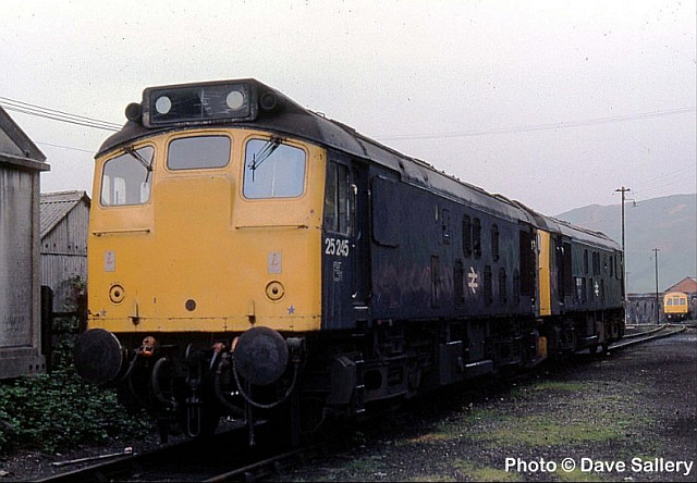 A pair of Class 25s on Machynlleth depot, 6 May 1984.