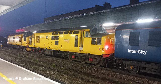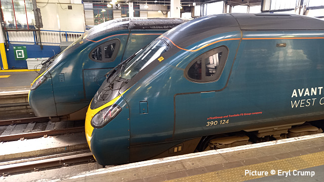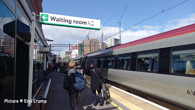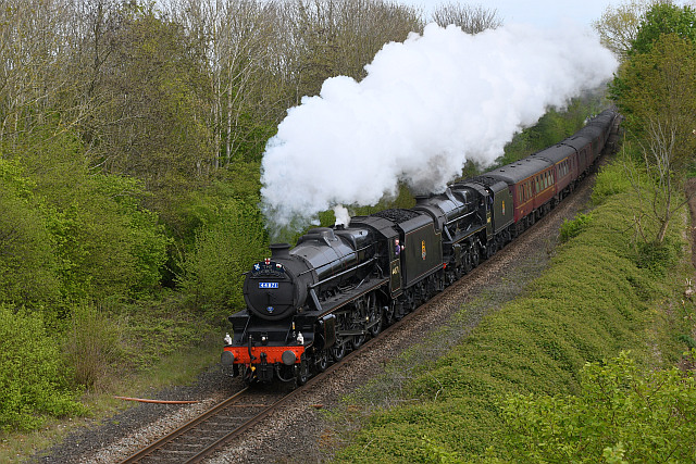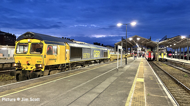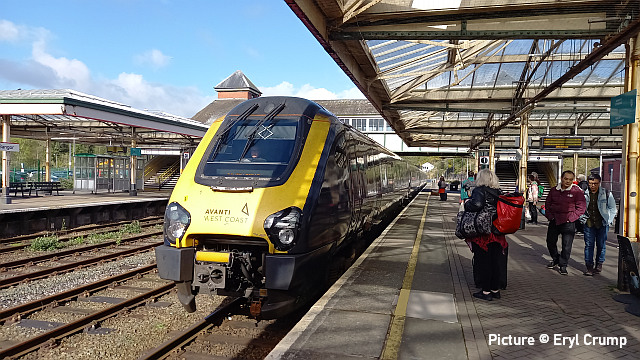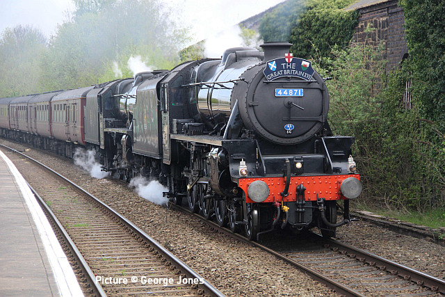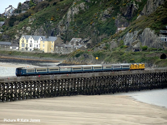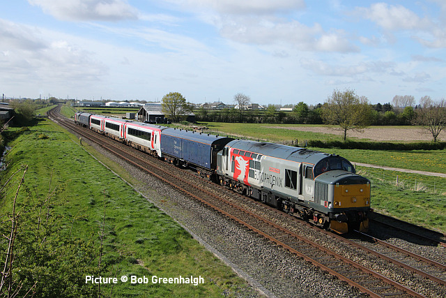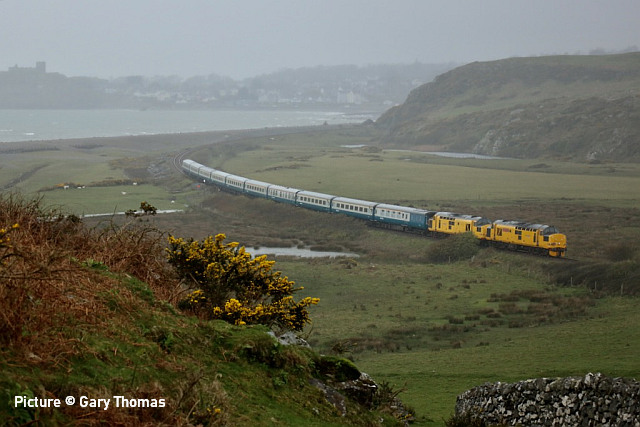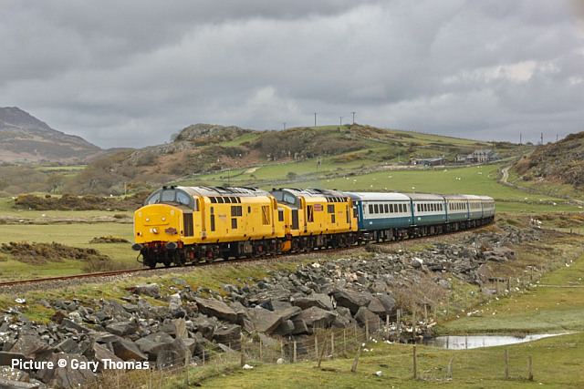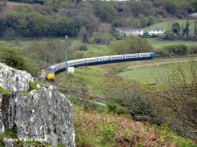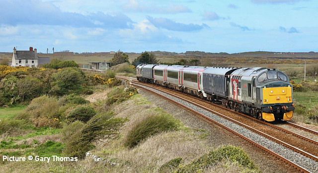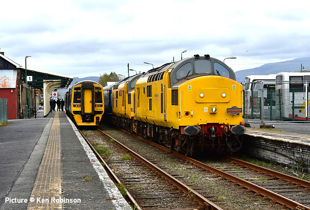 ![]() 37 884 and 37 901 head to Holyhead and are about to pass Beeches Farm Bridge with 175 113 off to Barton Under Needwood for attention, 17 April. Picture by Bob Greenhalgh. Valley Possession - report by Driver Jim Scott![]() Some images from Sunday 21 April during engineering work. Above, 66 701 waiting at Ty Croes to leave the worksite and head towards Bangor within the possession on train 6G71. ![]() The view from Ty Croes box. ![]() As I was a bit early I took the opportunity to stop on the Britannia bridge for a picture of the lion, it’s not every day you get a chance like that (obviously taken safely with no movements taking place!) ![]() Waiting at Chester for the Crewe shuttle to depart. News Pictures![]() Soon to be displaced by the new 805 units, 221 105 looks good in the spring sunshine as it heads west with the 10:02 Euston to Bangor service passing Cadnant cutting, Conwy on 20 April ... ![]() ... and at the same location, 6G70 Crewe Basford Hall yard to Bangor engineering train, passing Cadnant cutting, Conwy with loco 66 798 and a string of sleeper-carrying wagons (Garry Stroud). ![]() 66 748 West Burton 50 passes Towyn on 19 January with empty slate wagons for loading at Llandudno Junction (Gary Thomas). These trains from Tonbridge Yard are not a revival of the slate waste for cement making previously seen, this is a new flow for Ashville Aggregates of West Drayton, London. The original plan for Breedon to carry slate waste to Hope, Derbyshire, is still awaited; we understand that they now have been given permission by the National Park authority to build a structure to collect the material. ![]() 805 008 on 19 April passes Llandudno Junction with the 5Q49 13:50 Crewe to Holyhead empty stock run, while 66 748 shunts the yard after arrriving with the Tonbridge slate waste train (Garry Stroud). ![]() Training on the 805's continues, with the "rumour mill" suggesting the first will go into service in June. 805 008 passes Rhyl heading to Holyhead on 19 April (Gary Thomas). ![]() On 17 April, 37 901 (37 884 on rear) pass Rhosneigr with another Class 175 movement, 13:48 Holyhead MD to Barton-under-Nedwood with 175 113 (Gary Thomas). ![]() 43 257 together with 43 013 on the rear worked the 1Q30 Derby to Holyhead track testing run on 18 April, seen here entering Llandudno Jcn on their outward run to Holyhead (Garry Stroud). ![]() Passing Altrincham on 19 April, 66 651 (ex-66 221) gleaming in the sunshine, one of the ten re-geared class 66s to replace the class 60s on the Tunstead - Lostock limestone run and other heavy loads. Cambrian Coast Express (2)This season's second 'Cambrian Coast Express' Pathfinder' railtour to Pwllheli on 18 April, this time originating at East Midlands Parkway. Locos 97 302 and 97 304 were in charge. ![]() Passing Morfa Mawddach station (Kate Jones). ![]() Crossing the Mawddach (Kate Jones). The tunnel leading into Barmouth just in view. ![]() Porthmadog, 158 825 is on the 13:38 Pwllheli - Machynlleth (Ken Robinson) ![]() Black Rock, Criccieth outbound (Gary Thomas), ![]() Black Rock again on the return working. The weather did not favour the passengers or photographers on this day. ![]() Return at Sherwsbury at 20:49 (Graham Breakwell). Arrival time at East Midlands Parkway was on time at 00:15. ![]() LSL's generator coach 6311 is one of three originally converted from brake coaches for sleeper trains in Scotland. It can power the lighting and heating of the train when locos without such ability, such as the 97/3s, or freight locos are on the front. Graham writes: " I had gone to Redhill, west of Shrewsbury to capture some scenes of the outbound but to no avail – no sign of it coming, though information on Real Time Trains showed it had arrived at Sutton Bridge Junction on time. After waiting for around 40 minutes I gave up but while walking back the unmistakeable sound of a pair of class 97’s could be heard, having got away from Sutton Bridge 37 minutes late due to rumours of a points failure. (The time was re-gained before arrival at Pwllheli.) ![]() 'Too late for me to reach the line but earlier I captured, 158 830 on 1S20 the 08:29 from Aberystwyth to Shrewsbury. This train normally forms the 10:32h back to Aberystwyth but was replaced with a bus to make way for the Railtour. [Question: how are these cancellations conveyed to ordinary passengers?] ![]() I did get a shot of the remains of the Shropshire and Montgomeryshire Railway bridge over the Cambrian line.' TfW looks aheadTransport for Wales have issued a future plan for changine rail demands. You can read a summary here. On one reading , it seems to lack positivity, espcially for North and Mid Wales. Great Britain XVI![]() The Liverpool -Swansea leg of the Railway Touring Company 'Great Britain XVI' multi-day tour passed through our area on 20 April, hauled by two 'Black 5' locos, 44871 and 45407 Lancashire Fusilier. Above, Crossing the Weaver at Frodsham, with 45307 alone ... ![]() ... 44871 ran light to Chester to attach the train for the gradients ahead (Bob Greenhalgh). ![]() Balderton crossing (Bob Greengalgh). ![]() Entering the single-line section at Rossett Junction (Roland High). Taken from a safe place on the footpath. ![]() At the foot of the notorious Gresford Bank (Dave Jepson). ![]() Wrexham (George Jones). The blue background to the number plate was a decoration (unofficially?) applied to Scottish-allocated locos; the shed plate 65J refers to Stirling, although this loco was never allocated there. The 'SC' indicates a so-called Self-cleaning smokebox; a good explanation of this can be found on the 76084 website, ![]() On the rear, West Coast Railways loco 47 802 (George Jones). Bangor to Euston return April 16 & 19 - by Eryl Crump![]() It had been a while since I made the journey along the North Wales Coast line to London but an opportunity presented itself this week. Arriving at Bangor TfW/TC's 197 045 was awaiting time for the 08:41 1V94 service to Cardiff Central. ![