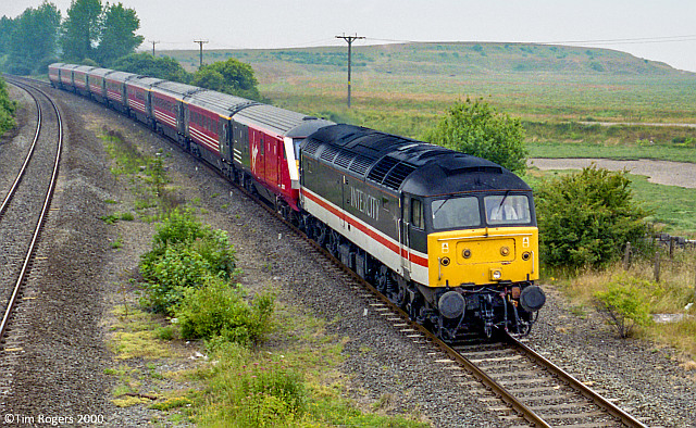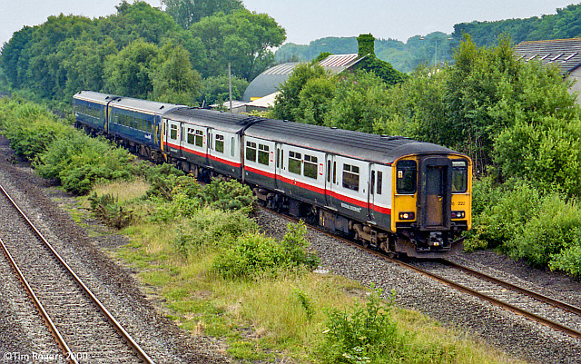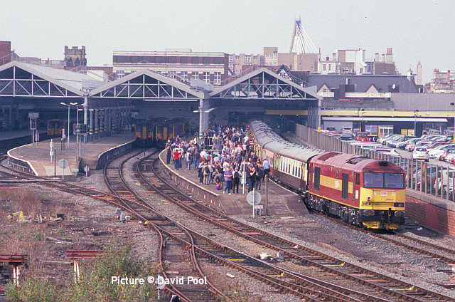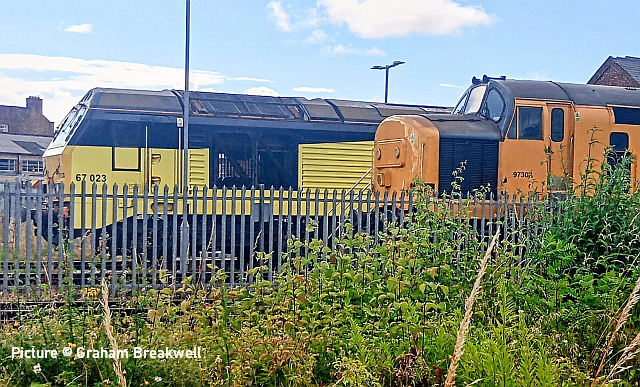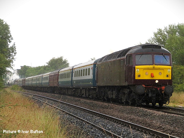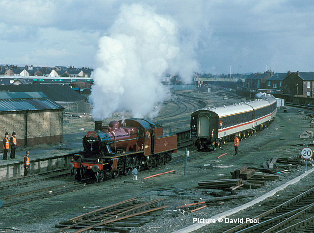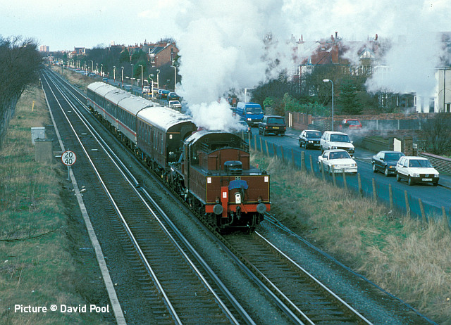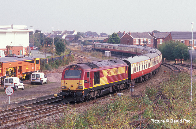 ![]() 44871 passing Rhyl returning from Llandudno on 6 July 83 minutes late- see below. Picture by Ivor Bufton. Miscellany![]() Our first image of a class 197 (197 003 which is ERTMS fitted? )on the Cambrian line. Scheduled as 3Q53, the 10:17 from Crewe South Yard to Dovey Junction Down Loop on Tuesday 2 July. The run was terminated short at Crewe Bank, Shrewsbury and returned to Crewe. It ran again on Wednesday 3 July this attempt making it to Dovey Junction and back to Shrewsbury with the plan being to make another run down as far as Newtown but instead it returned to Crewe (Graham Breakwell) ![]() An unusal visitor to Coleham depot on 3 July: 67 023. It wears Colas colours, but we understand that it has been sold (or leased) to GBRf for use on the Highland sleepers (Graham Breakwell). ![]() Looking rather weather-worn. 37 421 resting at Bangor on 3 July with a Ultrasonic test train (Logan Humphreys). Cambrian Heritage - report by Gareth Thomas![]() The Llynclys site was open on 6 July so I decided to venture down in the morning. Guards van rides to the end of the line were on offer and I took a couple of rides. Attached is a picture on leaving Llynclys. The recently-artived carriage from a Merseyside electric class 503 set is just visible; it's hiding behind other stock ... ![]() ... but here's one taken by Chris Magner on 27 June. There's a lot of work to be done. Apparently 507 001, the first of the next generation, is to be stored at Nant Mawr, the Cambrian Heritage Railways' other site. ![]() The terminus at Penygarreg Halt. The diesel is Telemon, a recent swap from the Oswestry end of the line. Peak in action![]() On Thursday 4 July , 45 118 The Royal Artilleryman which is now operated by LSL, made a loaded test run around the Coton Hill circuit prior to its use on a railtour later in the month. It was hauling 10 coaches from the Statesman tour rake with 57 311, sporting its new L&NWR black livery, at the rear. Picture by Logan Humphreys. ![]() Two views from the racecourse (Geoff Morris) ![]() [When I saw the number on the email header I was expecting yet another 'Black 5'! Thats one reason why I always insert the space after the class number - Charlie] ![]() Taken by Greg Mape on an earlier run on 4 July. ![]() Balderton Crossing, 4 July (Bob Greenhalgh) Steam Scene![]() The London - Llandudno excursion on 6 July ran well outward did not according to plan, but there was a problem on the return. Bob Greenhalgh captured 44871 on the rear of the train passing Saltney; 47 812 was on the front. ![]() Above, 47 812 (leading to Llandudno after a reversal at Chester) passing Prestatyn during a heavy shower (Ivor Bufton). The train had been hauled by 86 259 Les Ross to Crewe and steam 44 871 to Chester. ![]() 47 812 at Llandudno Junction, having arrived with the tour from London (Garry Stroud). It arrived in Llandudno fine (though with diesel 47 812 leading rather than the steam loco which was expected to run tender first), ![]() Smoky departure (Logan Humphreys) ![]() A points failure between Llandudno Junction and Llandudno led to disruption in the early afternoon. As a result, the steam loco and its support coach which was at Llandudno Junction for water in the engineers' siding - picture by Logan Humphreys - were unable to return to Llandudno to lead the train back to Crewe. Did the steam loco come light from Llandudno or come off at Llandudno Junction though we're guessing the latter. In the end 47812 ran around the stock at Llandudno and having waited some time in the platform then Cae Mawr sidings for service trains to come and go left Llandudno some 59 minutes late. This increased to 81 minutes late with the steam loco now leading from Llandudno Junction. Arrival at Crewe was 94 minutes late, reducing to 29 minutes on arrival at London Euston by electric loco 86259 , which took full advantage of the available recovery time. ![]() Deganwy on return (Gary Thomas). ![]() Steaming past Pensarn (Gary Thomas). Millennium memories - images by Tim RogersAll captured at Bagillt on 29 June 2000. ![]() 150 222 and 158 755: 1D35 09:17 Manchester Piccadilly to Llandudno ![]() 47 805: 1A46 09:19 Holyhead to London Euston ![]() 150 139: 1D65 10:19 Crewe to Bangor ![]() 37 428: 1K61 09:50 Holyhead to Birmingham New Street ![]() 43 084 County of Derbyshire and 43069: 1D87 08:59 Milton Keynes to Holyhead ![]() 158 754: 1H38 10:43 Llandudno to Manchester Piccadilly ![]() 150 215: 1D38 10:17 Manchester Piccadilly to Llandudno ![]() 60 076: 6K22 11:00 MTWO Penmaenmawr to Crewe. Loaded JNAs ![]() 37 429 Eisteddfod Genedlaethol: 1D67 10:07 Birmingham New Street to Holyhead. From Dave Sallery's archive![]() 31 301 with an engineers' train past Prestatyn, 26 November 1992. ![]() 40 022 with the afternoon Speedlink to Warrington in Llandudno Junction yard, 24 October 1983. Note the hand-painted nameplate Laconia, applied using stencils, by an enthusiast who regretted the loss of the 'ocean-liner' names applied to a number of members of the class in their early days. He would do his work at Penmaemawr Quarry sidings while the loco was stabled between jobs. The full story was revealed in the January 2024 issue of Railway Magazine. ![]() 47 270 is on test with 33 005 as train loco, leaving Rhyl on 29 May 1985. ![]() 56 135, the final 56 to be built, is on test with 47 465 at Prestatyn, 15 November 1984. 56 135 was the only one to appear in Railfreight grey from new; it had a relatively short live, being scrapped in 2013. Looking Back: Southport Part 2 - by David PoolHome page | Archive | Previous Notice Board |