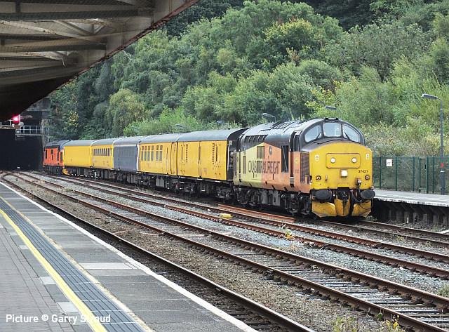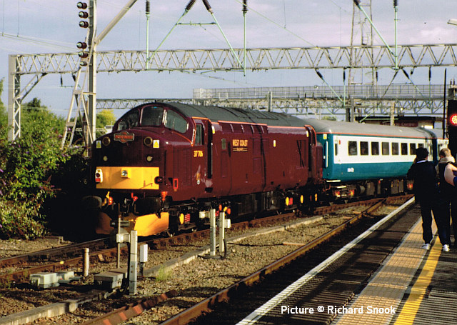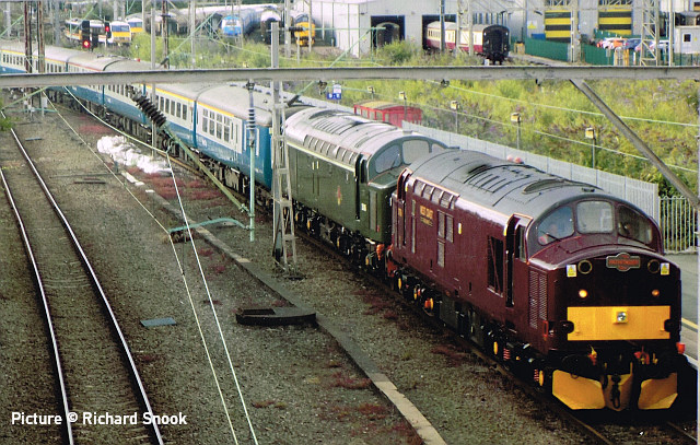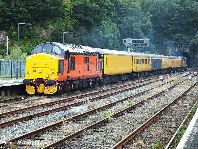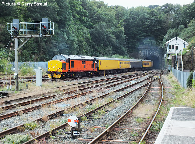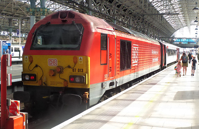 ![]() 67 013 preparing to depart with the 12:30 Manchester - Cardiff, 1 August A shorter effort this week due to holiday: I'll catch up next week. Thanks to everyone! - Charlie Three days, three Heritage Railways - by Paul HajdaszI took a three-day touring caravan holiday to Mid Wales, where I managed to visit three heritage railways within about a 40 mile radius of where I was staying. ![]() The first journey I made was to Bala Lake narrow-gauge railway on Monday 29 July, where I took a nine mile round trip on Alice, a Dinorwig Hunslet built in 1902 (above). I caught the 11:40 service from Bala, which was fairly well loaded due to the good weather and school holidays. Whilst there I also visited their heritage centre at Llanuwchllyn, where a selection of steam engines reside. ![]() They included Triassic, a Peckett works number 1270 built in 1911 ... ![]() ... George B, a Hunslet works number 680 ... ![]() ... and Holy War Hunslet number 779 built in 1902. ![]() On Tuesday 30 July I paid a visit to Welshpool and Llanfair light railway, where I travelled aboard the 10:30 service from Llanfair. This was hauled by diesel number 175 built in 1979 for the Taiwan Sugar Corporation. ![]() On the return journey at Cyfronydd we passed steam engine 822 The Earl, built by Beyer Peacock in 1902. ![]() Arrival back at Llanfair, where diesel number 7 Chattenden was stabled on shed. ![]() My final heritage railway was the Cambrian, based at Oswestry. This time I took a round trip from Weston Wharf on standard gauge 'Pacer' number 144 007. ![]() Arriving at Oswestry station ... ![]() ... I saw fellow Pacer unit 144 006 ... ![]() as well as diesel number 11517 Alun Evans, Ruston Hornsby 165DE 458641 which was built in 1963. (The BR number is fictitious: It was built for the National Coal Board). It’s well worth while supporting these smaller heritage railways to ensure their continued development for future generations. The Jolly Whistler - images by Richard Snook![]() A Pathfinder charter on 27 July took preserved Class 40 D345 from Burton-on-Trent to Skegness. From Burton to Crewe West Coast 37 706 piloted the train, as seen arriving at Crewe station. The eastbound route was: Burton-on Trent - Birmingham - Crewe - Warrington Bank Quay – Chat Moss – Manchester Victoria – Stockport – Hope Valley – Sheffield – Worksop – Retford – Gainsborough Lea Road – Lincoln – Sleaford – Skegness, ![]() D345 took over haulage from Crewe, departing at 08:23 .... ![]() ... with the 37 trailing. ![]() The round-about trip via Manchester Victoria meant that the train crossed Stockport viaduct and at Stockport (10:28) travelled briefly in the Crewe direction before taking a left turn on to the 'Hope Valley' route. Since the connecting chord a junction with the former Midland Railway line at Hazel Grove the official name Hope Valley now includes the section of the Buxton line from Edgeley Junction to Hazel Grove. A visit to Chester - by Roger CarvellOn 3 August I took a car trip, with wife and dog, to see Pete Waterman's latest big layout in the Cathedral. After the cathedral visit, we walked the walls, as you do, and a quick look at RTT showed a Euston to Holyhead express and a Holyhead to Cardiff service due. I stopped on the bridge overlooking the railway by Bonewaldesthorne's Tower. How many famous railway photographers have stood here? ![]() I had hoped to record one of the new 805s on the Euston to Holyhead, but 1D90 16:02 from Euston, produced a Class 221 Voyager instead ... Next time. I was quite shocked by the amount of vegetation around the trackside, a tourist passing spot, and a large buddleia obstructed my view towards the tunnels. ![]() The Voyager was right time, leaving Chester for Holyhead at 18.11. Next up was 1V99 16:48 Holyhead to Cardiff with 197 102, also on time at 18.23. The lighting looking west at 18.00 is a bit tricky at the moment with shrubbery doing its best to obstruct the job in hand and the sun on the lens. Pray for winter! Irish Arrow class 2600 - by Graham BloxsomeFurther to the article in the last noticeboard regarding Irish Railways, I thought it appropriate to add the following, regarding the class 2600 DMUs. Entering service in 1994, as well as being the first modern DMUs purchased by Irish Railways, they were the first Japanese built trains to operate in the EU. To commemorate 30 years of service, in April this year, cars 2601 and 2602 were repainted into a modern interpretation of their original orange and black 'Arrow' livery. ![]() They are seen at Cobh on a service from Cork on 29 July, picture taken from aboard the cruise ship Ambition. The original station building at Cobh is nicely preserved and now comprises of a Cobh heritage centre, gift shop and cafe, a single platform remains to accommodate the shuttle service 37s on the coast - pictures by Garry Stroud![]() Some photos taken at Bangor on 7 August of Colas 37 421 and HNRC 37 405 with the 3Q95 06 14 Derby RTC to Bangor structure gauging train. Above, entering the station. ![]() Departing Bangor station with 37 405 on the rear to run round. 37 405 For the record the stock was: 977966, 977985, 9803, 999602 6263 ![]() Reversing into Bangor carriage sidings. Home page | Archive | Previous Notice Board |