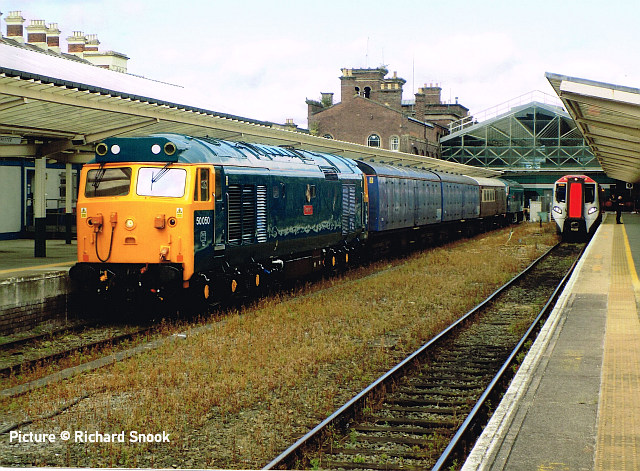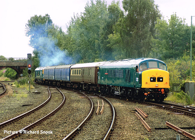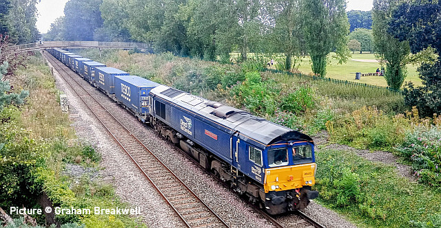 ![]() 805 003 leads 805 004 through Abergele and Pensarn station with 1A26, 08:53 Holyhead - Crewe, running 25 minutes late. This was the return working of the 05:30 Birmingham - Holyhead which was delayed at Llandudno Junction and arrived at Holyhead 48 minutes late. We don't know why - does anyone know? Picture by Greg Mape. Freight newsThe main purpose of the slate facility at Llandudno Junction was to provide a supply of chippings to Hope Earles Cement works. Their present shale quarry near the plant is now exhausted. As the new plant at Hope needed planning permission, being in a National Park, there were delays in building it. Meanwhile the traffic has gone by road from Penrhyn Quarry. However all is now apparently ready and Real Time Trains shows three trains from 17 September, running on Tuesday, Wednesday and Thursday each week. The outward working is booked to leave at 22:09 and it's not immediately apparent when the wagons will arrive to be loaded but Wellingborough looks to be a good bet. As with all RTT workings treat the starting date with a touch of salt (not slate!). News pictures (not many this week)![]() 67 020 dragging 67 025 and coach set HD02 Over Malltraeth Viaduct on 23 August (Logan Humphreys). ![]() 43 357 (with 43 277) seen on the approach to Abergele & Pensarn station on 8 August whilst working 1Q30 1054 Derby R.T.C.(Network Rail) to Derby R.T.C.(Network Rail). ![]() Where I was on my holiday - 45596 Bahamas in action at Matlock on the Peak Rail's Steam Gala on 11 August. Shrewsbury scenes - by Graham Breakwell![]() Three views from 19 August: 82216 in Hope House Hospice livery leading 1W57, the 10:52 Cardiff Central to Manchester Piccadilly... ![]() ... 67 012 on the rear. ![]() 66 433 Carlisle Power Signal Box named on 7 June 2023 to mark the 50th anniversary of the opening of the PSB. Working 4V44, the 09:37 from Daventry DRS (Tesco) to Wentloog, diverted via Crewe and Shrewsbury, taking 30 lorry loads of containers of the roads. Chester classics - report by Richard Snook![]() Making a change from the mainly Class 197 DMUs now infesting Chester, visitors from the past arrived on 9 August in the shape of a Class 45 'Peak' with a class 50 test train in the morning, followed by a Colas Ultasonic test train top and tailed with Class 37s in the afternoon. Above: 45 118 The Royal Artilleryman after arrival from Crewe. ![]() 50 050 Fearless on the other end. ![]() Returning to Crewe with 50 050 leading. ![]() 37 421 resting at Chester after a trip feom Crewe and down the Cheshire Lines... ![]() ... with 37 405 on the rear. Evero improvement noticeRailway Magazine tells us that the Office of Rail and Road have (six months after allowing the 805 trains to run) decided that the new 805 and 807 units should be equipped with 'automatic speed supervision' equipment which will prevent drivers exceeding the speed limit. The existing Pendolinos have a version of this which also supervising their tilting system, and ORR thinks that all the Avanti fleet including the 805s and 807s (which don't tilt) should have a version which just supervises the speed. They have been given two months to get this done, but Avanti had lodged an appeal. Bala Gala Bob Greenalgh writes: I was rostered signalman at Llanuwchllyn on the Bala Lake Railway on Saturday 24 August. The day started wet but soon turned sunny and warm. Here are some photos I took during the day. ![]() Llanuwchllyn. Chilmark, Ruston and Hornsby 194771, brings the coaches into the platform at the start of the gala. ![]() The crew of Maid Marian Hunslet 822 of 1903 chat prior to her leaving with the first train of the day to Bala. ![]() Llanuwchllyn. The crew and guard couple the Penrhyn goods wagons to Winifred. ![]() Holy War brings her last train of the day into LLanuwchllyn station... ![]() ... and ECS to shed. The railway operates throughout the summer; see their website for information and timetables. From Dave Sallery's Archive![]() 37 146 and 37 043 on loaded coils for Shotton works, 3 June 1999 ![]() 47 237 nears Blaenau on a charter from Lincoln, 3 July 2015. ![]() Linda at Tan y Grisiau on empty stock, 3 July 3015. It will meet the charter from Lincoln (above photo) and then give its passengers a ride to Tan y Bwlch. ![]() 37 420 nears Chester at Rowton on a working from Crewe, 20 May 1995. Looking back: Ireland 1996 part 1 - by David Pool![]() My holiday in Ireland in 1996 enabled me to see the RPSI Railtour “Knocknarea”, which featured the GNR(I) No.171 Slieve Gullion (Built by Beyer Peacock in 1913) and DSER No.461, travelling between Dublin and Sligo. On 11 May 1996 I headed for Mullingar to see the Railtour. Much of the main line to Sligo is single track, and 071 Class 083 with the 08:40 Dublin to Sligo was entering Mullingar alongside the Royal Canal. ![]() The Railtour train had been split at Enfield, with the two steam locomotives taking separate trains to Longford, from where the train was to be double headed to Dromod. I was particularly keen to photograph No.171, and found a suitable location at Lough Owel, a few miles beyond Mullingar. There was only a glimpse of sunlight, but it made a reasonable shot as it traversed a short causeway. ![]() I was luckier with the sun at Mostrim, my photo of No.171 being in the NWCR News of 17 May 2021, then made my way to Dromod. This is the base for the preserved Cavan and Leitrim Railway, which has a short length of line and a collection of narrow gauge rolling stock. The Kerr Stuart steam locomotive Dromad was in steam, as illustrated in the Notice Board of 23 November 2020. A Bord na Mona railcar C47 and a Simplex LM350 were on display, the latter being in a fictitious CIE livery. A Fowler 40hp diesel, No.3900011 (1947), carried the name Dinmor, but I have been unable to ascertain its history. ![]() Dromad was propelling two coaches, the first being No.345, a trailer which had been rebuilt as a railcar by the GNR(I) in 1955 and fitted with an AEC Regal bus engin