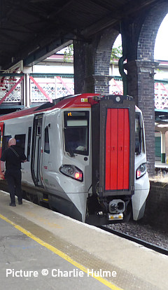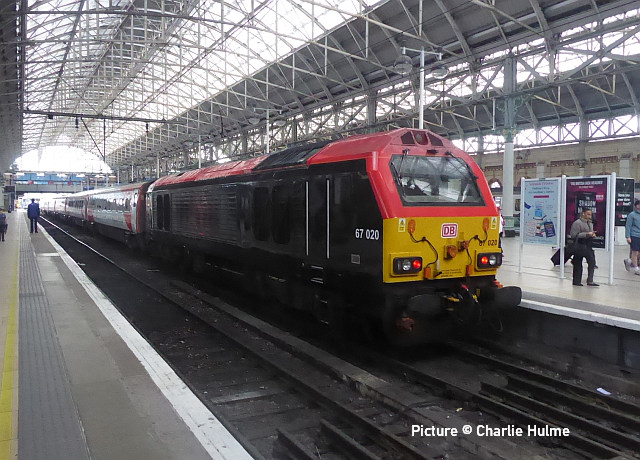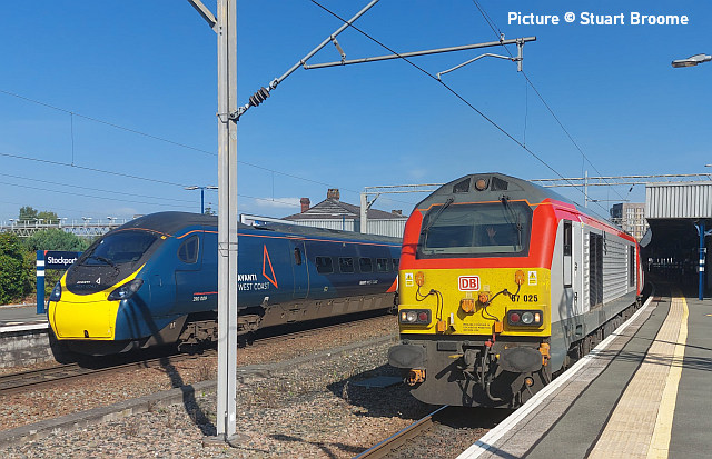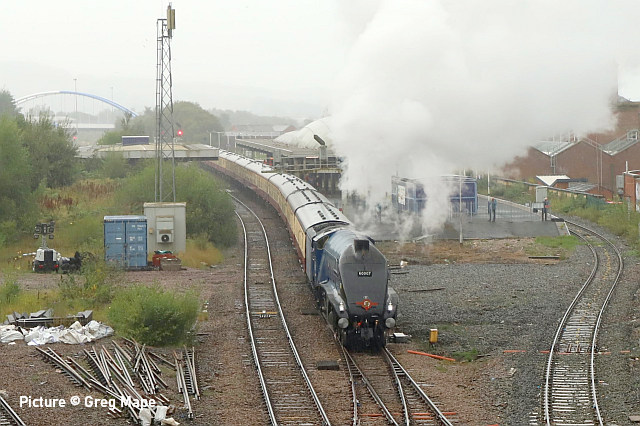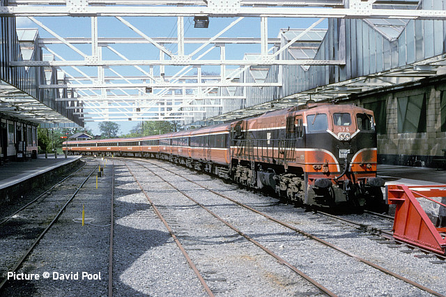 ![]() 67 020 waits at the buffers at Manchester Piccadilly to for the 12:30 to Cardiff on 29 August. News pictures![]() At Stockport on 31 August, 67 025 departs on 1V39 10:30 Manchester to Cardiff while 390 009 stands in platform 2 on the 08:27 from Euston... ![]() ... 323 228 just arrived on 2H85 09:55 Stoke-on-Trent to Manchester. These 1992-built units look to have many more years of duty; extra units are arriving from West Midlands. Each 3-car unit can seat 277 people, assuming they are willing to squash into the triple seats. They can run at 90 mph, and make good use of this on the Stoke and Crewe services. Pictures by Stuart Broome. ![]() Llandudno Junction on 31 August was looking quite floral with the flower tubs arranged between platforms 1 and 3. Above, 158 829 departs Llandudno Jcn, with the 13-27 Holyhead to Birmingham International... ![]() ... 805 011 departs with the 13:53 Holyhead to Crewe service (Garry Stroud). ![]() On a miserable rainy 2 September Blue Peter on a Crewe - Chester-Shrewsbury - Coton Hill test run is seen at Balderton crossing ... ![]() ... with 20 132 and 20 118 on the tail (Bob Greenhalgh). ![]() Sir Nigel Gresley visits Blackburn in the rain on 28 August with a Saphos Trains special from Blackpool North to Carlisle (Greg Mape). Major plans announcedFrom the official press release: Transport for Wales will increase rail capacity by 40%, with 50% more timetabled services, supported by an £800m investment in brand new CAF trains and the recruitment of additional drivers and train crew. Changes at a number of level crossings are required to be able to operate these additional services on the line.Impressive indeed. What can be done by just closing four crossings! Presumably the idea is to run a additional hourly train from the Coast to Manchester, with limited stops. An obvious idea might be to extend the current Chester - Leeds service, but of course this is run by Northern. Meanwhile, on the Marches line, Network Rail have been working to speed up the loco-hauled trains so to allow them to run to the same schedule as the 197s which work alternate services. The problem was that the ex-LNER coaches are heavier than the Mark 3 vehicles previously used. From Dave Sallery's archive![]() 40 135 with empty hoppers from Salford Hope Street to Penmaenmawr passes Prestatyn, 12 September 1984. This loco still exists in the care of The Class 40 Preservation Society, based at The East Lancashire Railway, although at present not in traffic due to a defective crankshaft. ![]() 47 832 approaches Abergele, past the much-missed semaphores, with a Holyhead service, 6 September 2004. The unusual bar betwen the posts tells drivers that this is a junction signal; the lowest arm is for the platform line and the higher one for the through line which this train is taking as it does not calling at Abergele. Since then the platform line has been removed and the platform rebuilt to be against the through line. The service is the 10:00 Arriva Trains Wales Manchester - Holyhead. The loco carries First Great Western livery, although owned by Fragonset, and the ex-Virgin coaches were hired to Arriva. ![]() 56 010 with steel coils for Shotton Works nears Penyffordd, 3 June 1997. This Romanian-built loco was withdrawn and scrapped in 2004. ![]() Pete Waterman's preserved Class 46 Ixion had its first trial run on the coast. D172, one time 46 035, is seen here passing Shotton on the return journey. It is said that it was the first preserved diesel to run on the main line. Today it is store at the Peak Rail site at Rowsley, where it is waiting for volunteers have the time and money to return to use. Dinmor explained - by Mark Lamb![]() With regard to David Pool's trip to Ireland in 26 August noticeboard, he asks for information about a Fowler diesel (3900011) at the Cavan & Leitrim's site at Dromod. The loco in question - Dinmor, or is it Dinmore - is in fact from Anglesey. The details are in the Industrial Railway Society's book: Industrial Locomotives of North Wales. Though it didn't carry a name there - was delivered new to Dinmor Park Limestone Quarry, Penmon in March 1947, and was in use there until the system closed in 1966. It remained there until September 1972 when it left, via Alan Keef, for use on his Cotswold Light Railway in Gloucestershire until 1978. In 1989 it was sold to the Irish Narrow Gauge Trust. The image and more information is from the Cavan and Leitrim Railway's Facebook, with thanks. Looking back: Ireland 1996 part 2 - by David Pool![]() Castlebar is on the main line between Manulla Junction and Westport. On 13 May 1996 the 13:00 Dublin to Westport, headed by 201 Class No. 225 was entering the station. The disused platform and signal cabin had been kept in excellent condition, and the flowers and shrubs were a credit to all concerned. ![]() Westport is the end of the line, but the track continued through the station to a goods yard and loco shed. Timber was being loaded, and I assume the 071 Class No. 082 would eventually be used on the train, perhaps to Waterford. ![]() After the withdrawal of passenger services between Limerick and Athenry, there was pressure to restore services, at least as far as Ennis, which would provide a commuter service for a growing population. On 17 May 1996 the first stage of the reopening had been achieved, with a passenger service from Limerick to Ennis, where there was also a freight terminal. 141 Class No.167 had arrived form Limerick Junction, and would be departing at 14:00 when it had run round the two coaches and a van. ![]() A short branch from Sligo station led down to Sligo Quay. On 18 May 1996 181 Class No.182 was about to leave the branch with empty tank wagons. The booked departure from the Quay was 11:55, and I assume these were Esso oil tanks returning to Dublin. The barrier wagon suggests they might have been conveying light oil, and it is possible that it was diesel fuel oil. Any confirmation of this working would b