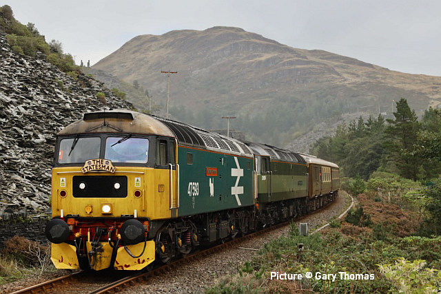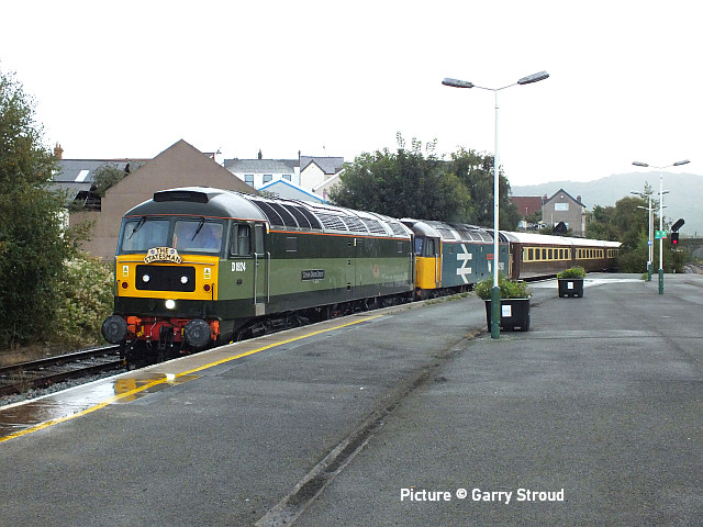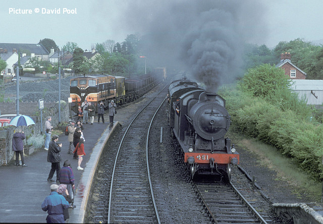 ![]() The 'Statesman' at North Llanrwst, 4 September. Picture by Greg Mape. Cambrian CornerIt's been quiet of late, then we have two interesting workings in two days! First up was Pathfinder's Cambrian Coast Express to Pwllheli from Bristol on 5 September, which had 97 302 and 97 304 up front from Shrewsbury. ![]() Morfa Mawddach (Kate Jones) ![]() Crossing Barmouth Bridge as seen from the Fairbourne railway (Greg Mape). ![]() Morfa Mawddach (Kate Jones) ![]() Train waiting for permission to move forward. Incidently all three in the cab got out to take pictures of the front of the train while waiting. (Kate Jones). ![]() On the bridge (Kate Jones). ![]() Barmouth Harbour (Greg Mape) ![]() Approaching Porthmadog, crossing the Welsh Highland line (Ken Robinson). ![]() Nearing Criccieth (Gary Thomas) ![]() Running round the train at Pwllheli (Ken Robinson). ![]() A second move, on 6 September, was more unexpected, especially as it was running nearly 4 hours early: 97 304 at Penrhyndeudraeth, taking a tamping machine to Porthmadog from Coleham, Shrewsbury. The loco would return light engine later that day. Pathfinder have another excursion to Pwllheli this coming Thursday, 12 September. (Ken Robinson). Statesman to Blaenau![]() On September the Conwy Valley line was treated to Statesman excursion from High Wycombe to Blaenau Ffestiniog. Locos on duty were 47 593 and 47 810. Above, arrival at Llandudno Junction (Garry Stroud). ![]() Approaching Blaenau Ffestiniog (Gary Thomas). ![]() Shunting (Gary Thomas). ![]() On the return (Gary Thomas). ![]() Roman Bridge (Greg Mape). ![]() Dolgarrog (Gary Thomas). Shrewsbury, Black Hole - report by Chris ScottI caught the 15:22 Holyhead service from Birmingham New Street on Wednesday 4 September. A four-car 158 full to capacity. Approaching Telford the guard appears and tells every one that we will have to change at Shrewsbury. When asked why he did not know the reason. I questioned him as whether this meant we would all have to leave the station in order to reach platform three, which is the usual procedure at Shrewsbury. He went off to find out, returning to say that we would be entering platfom 5 and our train consisting of four coaches would be waiting at platform 4. We pulled in detrained and went to platform 4 only to discover no train. Parked in the middle road were two two-car 197s. I then asked a very pleasant passenger assistant as to where our train was and she replied that it would be arriving shortly, from Chester. I then asked her the reason why the change over and she told me that the train coming from Chester which was going onward to Birmingham was one of the new type and had not been passed for the route on to Birmingham. I assume she was talking about a 197, but then I thought that the London Midland 196s use the same route, incident free. I did not pursue the matter and awaited the arrival of the expected 197 from which the passengers would also have to detrain and make their way to the train we had vacated in platform 5. In came the train, Lo and behold a four car 158! So all in all two sets of passengers from two seperate trains had to detrain for no obvious reason. Obviously the fault must lie with control who once again show that they do not have a clue as to the route availability of their stock. Shrewsbury scenes - by Graham BreakwellA few images from a busy and interesting half hour at Sutton Bridge Junction on 4 July. ![]() 67 025 leads 1V46, the 14:30 from Manchester Piccadilly to Cardiff Central. ![]() 197 033 and 197 031 coming off the Cambrian and re-entering semaphore territory with Sutton Bridge Junction lower quadrant in the background with 3Q54, the 14:17 Dovey Junction Down Loop to Shrewsbury ETCS test run. ![]() 61036 Mayflower, what the crowd on Sutton Bridge and other bridges down the line were waiting for - The Welsh Marshes Express from Bournemouth to Shrewsbury and back courtesy of Saphos Trains. Looking back: Ireland 1997 part 1 - by David Pool![]() The Notice Boards dated 31 August 2020 and 23 November 2020 referred to CDRJC locomotive No.5 Drumboe being moved to the Railway Museum in Donegal Town. At the time of my visit to Donegal on 6 May 1997 the Donegal Railway Heritage Centre was newly opened, and No.5 had not yet arrived. Since then, the Centre has obtained more exhibits, and the enthusiastic volunteers are using social media effectively to attract visitors. There is much interesting written material and railway items on display, together with a model railway, an audio visual presentation and a shop, but all the rolling stock is plinthed or static. ![]() The line between Limerick Junction and Waterford had remained open, but two trains in each direction daily were of relatively little use for local residents, and the station at Tipperary was one of the least used in the Irish Rail system. On 7 May 1997 the 1555 Limerick to Rosslare, as usual comprising two coaches plus a van, had arrived behind 141 Class No.144. After the token exchange, it was waiting for the level crossing gates to be closed to road traffic. ![]() While I was in the Limerick district, I took the opportunity to visit Foynes, which was at the end of a 26 mile branch line from Limerick, closed to passengers in 1963. It retained freight traffic until 2000, but on 8 May 1997 there was no sign of any movement of the oil tanks in the siding. The signal cabin, platform and canopy were still there, but the platform track had been lifted. Irish Rail have recently been involved in a project to reopen the mothballed line. The total cost of its renewal is likely to be a little over 100 million Euros, since the track and signalling must now meet modern standards. The primary purpose is to develop Foynes as a port for international freight. Aviation enthusiasts may know the history of Foynes, but it may be worth explaining why I wished to see what remained there. In the late 1930s Transatlantic air travel was increasing with the use of Flying Boats
