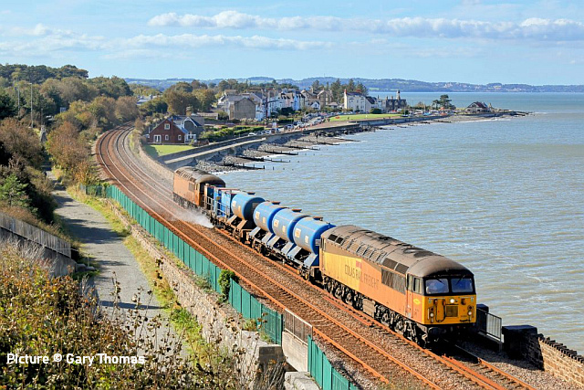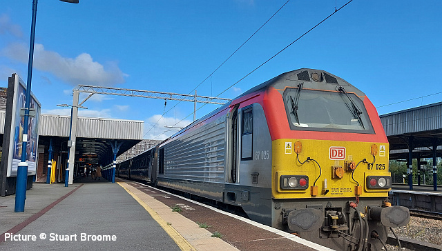 ![]() On 7 October, running later than usual, 66 603 crosses the Weaver Navigation with a load of recycling glass for the the Encirc glass works. Picture by Greg Mape. Some items have been saved for the next issue due to lack of time.- Charlie RHTT time![]() The first RHTT of the season: a rather dirty 56 094 passing Beeches Farm as the train heads for Holyhead on 2 October (Bob Greenhalgh). ![]() On 2 October 56 302, PECO The Railway Modeller 2016 70 Years leads the railhead treatment train running as 3S71, Coleham to Coleham past Bagillt footbridge ... ![]() ... 56 094 at the rear (Stephen Dennett). ![]() Prestatyn (Ivor Bufton). ![]() Llanfairfechan (Gary Thomas). ![]() Talybont on 3 October (Logan Humphreys) ![]() The regular circuit from Coleham was cut short on 5 October due to engineering work on the North Wales coast line, turning back at Mostyn Up Goods Loop. 56 302 Peco is seen here arriving back in the Sutton Bridge Junction headshunt (Graham Breakwell). ![]() 56 094 took over for the move into Coleham depot, to join 97 302, 97 304 and 37 405. 197 mysteryKevin Driscoll writes: 'Riding in 197 120 last week (Premier Plus section of course) I noticed labels on the seat backs, saying that premium fares would apply from "the end of September 2024". 'How this will work is unclear, unless it can be guaranteed that the right units will be allocated to particular services.In practice I frequently find that the allocations on RTT each morning are well adrift to which units actually work.' [Presumably the idea is that the conductor will come along and ask for the supplement. How it will work in practice remains to be seen . TfW might also regret those catering trolley spaces, especially in the 2-car units.] Ownership of 67s - notes by Jack Bowley![]() A bit of info on the Colas 67s 67023 and 67 027 that have recently featured on the RHTT shakedown. (Picture by Greg Mape). I'm not too sure on the full ins and outs, but they were Colas engines for a while in the usual yellow/orange/black colours, then GBRf bought them before being sub-leased back to Colas. One rumour has suggested the locos were in a poor condition and GB weren't in a position to fix them until Colas did. Not sure what the truth is, but it's a typical modern railway fiasco. So as far as I'm concerned, they're GBRf locos on hire to Colas long-term! The names Stella and Charlotte applied by have been lost in the process. 'Not' The New Measurement Train - by Russell Withington![]() Doesn’t seem like four weeks have passed but I went down to see what the regular run of the ’New Measurement Train’ was being powered by, and once again an ex-East Coast Class 43 emerged from the shrubbery, however what followed was very definitely not the usual Mark3 rolling stock. I returned in the early evening to photograph the whole train, and as luck would have it the sun came out. ![]() 43 357 was in the lead on the return journey, which has gained a Colas vinyl since September, followed by ... ![]() ... a Mark 1 Generator Van 6262 ... ![]() ... Plain Line Pattern Recognition Coach 72631 ... ![]() ... Overhead Line Equipment Test Coach 975091, once known as “MENTOR”) ![]() ... and Test Train Brake Force Runner 72612. More NMT scenes![]() Now and then: 43 357 passes Conwy, with the return 1Q18 16-07 Holyhead to Derby test train. 3 October 2024.... ![]() ... and 43 357 passing Copmanthorpe, as the 13.07 Edinburgh to Plymouth service, 29 September 2017. (Garry Stroud) ![]() Rhosneigr (Gary Thomas). Miscellany![]() 66 651 comes under Bannel Lane bridge near Buckley station with the late running 6M76, Margam to Dee Marsh steel train on 27 September. 66 651, formerly 66 221 is one of the DB 66/6s modified and regeared for higher tractive effort. (Stephen Dennett). ![]() 66 140 at Buckley station with 6V75, Dee Marsh to Margam steel. on 2 October (Stephen Dennett). ![]() 43 301 passing Upton Magna, east of Shrewsbury on 4 October, on 1Q55 – a round trip from Derby RTC turning back at Wrexham (Graham Breakwell). ![]() Viewed from Kemps Eye Bridge in Belle Vue, Shrewsbury on a rainy, grey Monday, 66 588 with a train of 30 empty hoppers. Working 7Z36, the 11:08 Merehead Quarry to Crewe Basford Hall Yard. (Graham Breakwell). ![]() The state of Abergele station in October 2024: surely Network Rail shouldn't let this happen? (Stuart Broome). ![]() At Stockport station on 2 October: 67 025 on the 08:49 prepares to propel its train from Platform 3 towards Manchester Piccadilly (Stuart Broome). From David Sallery's archive![]() 508 020 and a 503 in the former Birkenhead steam shed on 7 January 1984. The 508 had just arrived from the Southern Region and still had Strawberry Hill on its destination blind. All class 508 have now been withdrawn. ![]() 56 045 with a train of empty OTA log carriers passes through Penyffordd after a sudden Spring snowfall, 15 April 1998. ![]() Loadhaul livery 60 038 has empty coil wagons for South Wales in tow at Hawarden in October 1999. ![]() 78017 is station pilot at Shrewsbury in 1966. Note the LNWR signals in the background. Looking back: Isle of Man transport 1964 part 2 - by David Pool![]() On 9 July 1964 I was photographing between Ramsey and Laxey on the Manx Electric Railway. At the Ramsey terminus MER Unvestibuled Saloon No.1 was built by Milnes in 1893 for the opening of the railway, and was paired with Open Crossbench trailer No. 46. The van No.16 on the left would be used conveying Mail, being attached to Boat Cars connecting with the sailings from Douglas. A similar van is behind the trailer. ![]() Moving on to Laxey, I experienced one of those very rare occasions where all the components of the picture were in exactly the right place. I intended to photograph Snaefell Mountain Railway car No.4 as it left the station and started the climb on the first section with the Fell centre rail, the right hand running being normal on the SMR. An IOM Road Services bus stopped to drop off some passengers, and restar