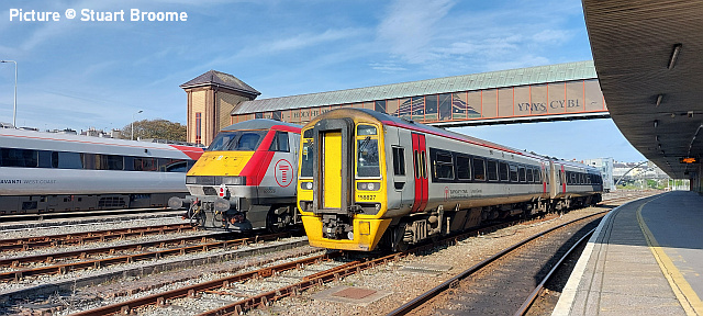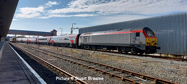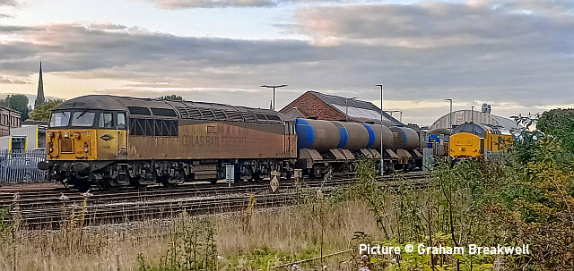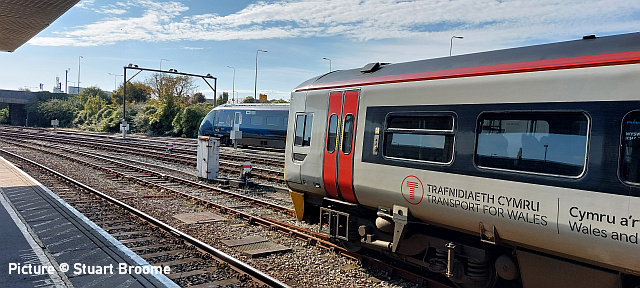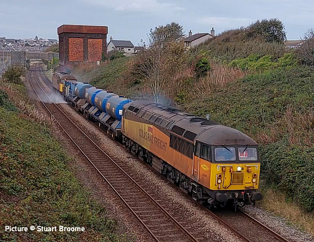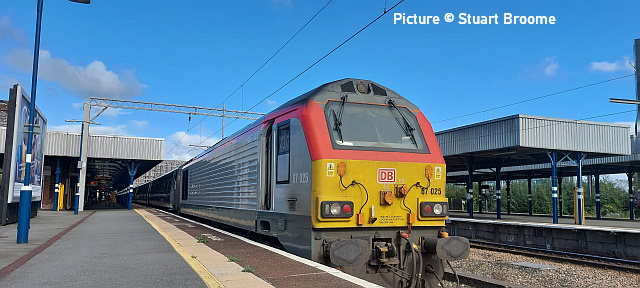 ![]() Rail Head Treatment Train passing Conwy Castle, 11 October. PIcture by Gary Thomas. Scene at Holyhead - report by Stuart Broome![]() Saturday 5 October saw trains terminating at Llandudno Junction from Holyhead, it was then a two-hour bus ride to Chester! With the sun shining I popped up to Holyhead just to see what was about. I assume that there was track relaying somewhere with nothing running from Chester to The Junction. Above, 158 827 at rest with 805 009. ![]() 82229 with 158 827. both getting long in the tooth now, Both class 158 and Mk4 coaches were built between 1989 and 1992. ![]() 805 009 sitting in the sun. ![]() 67 017, once named Arrow , sits silently in the yard. ![]() Coach 12304 indentified the coach set HD02. however it lacks any TfW branding. ![]() Restaurant/buffet car coach still lacks a number. Miscellany![]() The 197s destined for the Cambrian lines continue to make test runs on the Coast: the return 3Q71 11:20 Holyhead to Crewe, 7 October. Picture by Garry Stroud. ![]() An interesting move, 6U41, on the morning of 11 October: starting out from Shrewsbury station’s platform 4A at 10:00 was a Network Rail 'Harsco Track Technologies Switch & Crossing Stoneblower'. DR 80302 was heading off to Chipping Sodbury following the engineering work in the Rhyl area. Seen here passing the Golf Course in Meole Brace, south of Shrewsbury. ![]() D345 being taken from the East Lancashire Railway to Carnforth by West Coast Railways 37 685 on 8 October. Picture taken at Mills Hill station (Greg Mape). The owners say that D345 'has been withdrawn from the mainline temporarily due to a "recurring power fault". ![]() 66 588 working 4Z36, the 14:20 from Wentloog Freightliners to Crewe Basford Hall, with a lengthy train of empty container wagons passing Belle Vue, Shrewsbury on 11 October (Graham Breakwell). ![]() 70 814 approaches Penmaenmawr with the 4D61 06:12 Bradwell up sidings to Penmaenmawr stone empties on 14 October (Garry Stroud). ![]() Loading in progress as the RHTT passes ... ![]() ... and out on the road (Logan Humphreys) ![]() 67 025 on the 08:49 Cardiff to Manchester Piccadilly waits on Platform 3 at Stockport for the right-away to Manchester (Stuart Broome). ![]() On 11 October 67 015 basks in the sunshine at Manchester Piccadilly ... ![]() ... and pulls away with the 12:30 to Cardiff. RHTT: a random selection![]() Spraying out of Holyhead, 4 October: 56 302 Peco leading 56 094 (Stuart Broome) ![]() Talybont, 10 October (Logan Humphreys) ![]() Conwy, 11 October (Geraint Williams) ![]() PECO enlarged (Stuart Broome). Colas Rail Freight Class 56 locomotive 56 302 was named "PECO The Railway Modeller 2016 - 70 Years" during the West Somerset Railway Mixed Traffic weekend in June 2016. The naming ceremony was attended by Peco Directors Cherry Sargent and Hilary Arnold, and Colas Rail Freight Director Simon Ball and HR Director Smita Patel. (Text by AI) ![]() A rather clean looking 56 113, as opposed to 56-302 on the front, are seen departing Llandudno Junction, at Pabo Lane, with the return 3S71 Holyhead to Crewe RHTT service. (Garry Stroud) Graham Breakwell writes ' There seems to have been change in the working of the Cambrian leg of the train The first leg from the depot is working with one 97 and two tankers, running round at Machynlleth to return the Coleham where a second 97 couples onto the rear, the front loco is detached and the set waits in the depot to form the next evening’s run. A second set of tankers with 56’s at both ends then works the rest of the circuit. ' ![]() 56 302 is seen here on 11 October after completion of its circuit with 56 113 on the other end and 97 304 with 97 302 on the adjacent line. Narrow Gauge Scenes - report by Jim Ikin![]() The changing Welsh weather! The Super Power weekend at Dinas The previous day was glorious but Sunday 15 September wasnt! -high winds and horizontal rain. Rebuilt 134 was moving up and down the yard (Above). ![]() A view of 134 showing part of the redesigned tender to allow better sighting when running in reverse. ![]() The Corris Railway on 28 September with new(ish)-build number 10 on the traverser. ![]() Also on 28 September, on the Talyllyn Railway Edward Thomas runs round at Nant Gwernol. ![]() 29 September, and Owain Glyndwr runs round its train after water filling at Devils Bridge. ![]() Back at Aberystwyth and the superb museum. Standard gauge Earl Berkeley, a regular at Aberystwyth in steam days, is on loan from the Bluebell Railway. ![]() Sabero No.1, built in 1895 by Couillet, and worked on the Hulleras de Sabero in Spain. ![]() At the Ffestiniog Bygones weekend on October on the Festiniog with bright blue skies. Above, 190 leaving Porthmadog. ![]() Linda leaves Porthmadog. ![]() Hunslet Velinheli arrives with a goods train. ![]() James Spooner waits at Tan y Bwlch for an upcoming slate gravity train. HST correctionIn an early version of last issue we said that 43 301, now in use by Colas, was one of the prototype HST cars. In fact, this loco was 43 101, which entered service in October 1978, and was renumbered as 43 301 in July 2008 when it was rebuilt for Cross-Country. Prototype power car 43 001 was scrapped at Booths in Rotherham in December 1990, having originally entered service numbered 41002 (in August 1972) and then renumbered to 43 001 in May 1974. Thanks to the early-risers who explained this! News from the Vale of Rheidol Railway (press release, abridged) The Vale of Rheidol Railway recently played host to a special reunion of locomotive crews who had once worked on steam engines along the historic Cambrian Lines. Many of these railwaymen, some of whom had not seen each other for years, gathered to reminisce and share fond memories of their time on the rails. ![]() A highlight of the day was a tour of the Vale of Rheidol Railway’s newly opened Engine Shed museum. The group enjoyed a buffet lunch next to the legendary "Dukedog" locomotive No. 9017, which is on a short loan from the