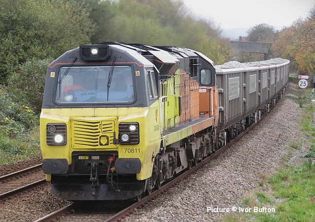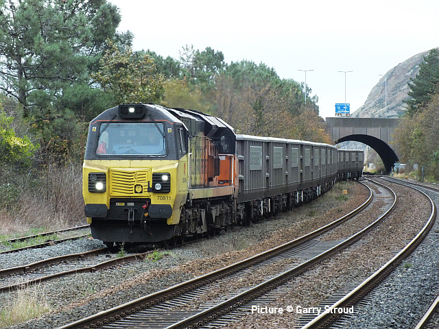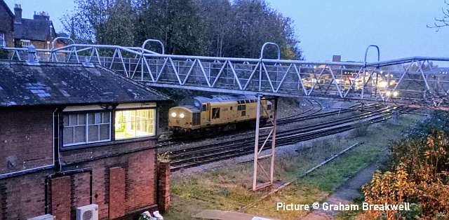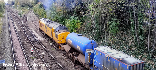 37 073 brings a heavy loaded up ballast through Rhyl,